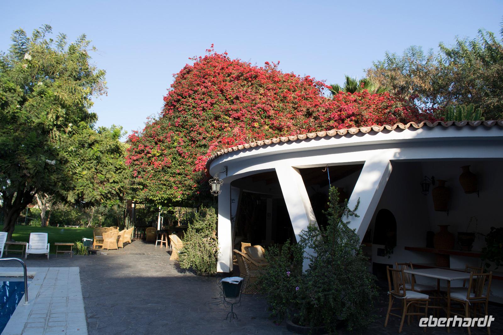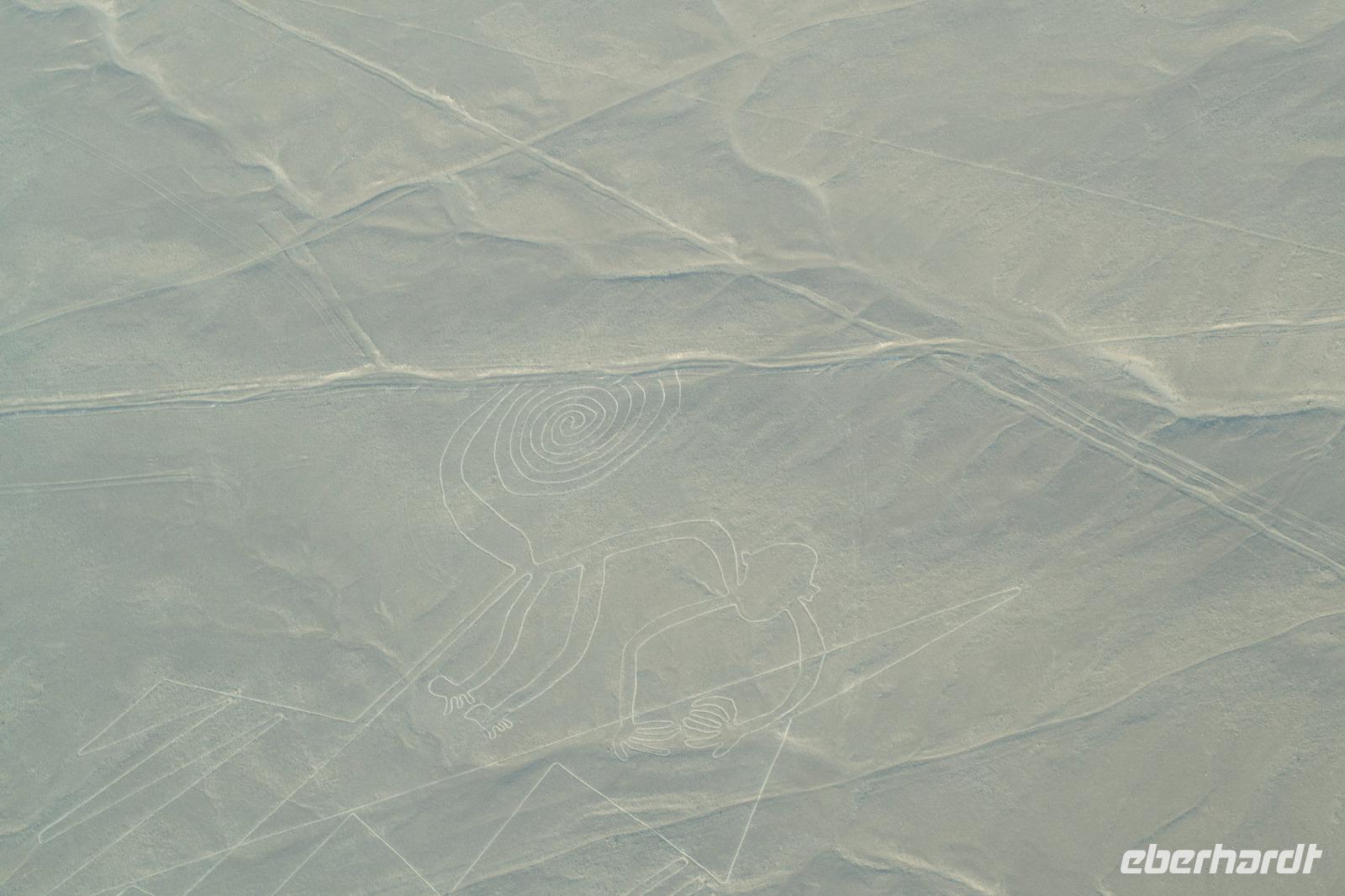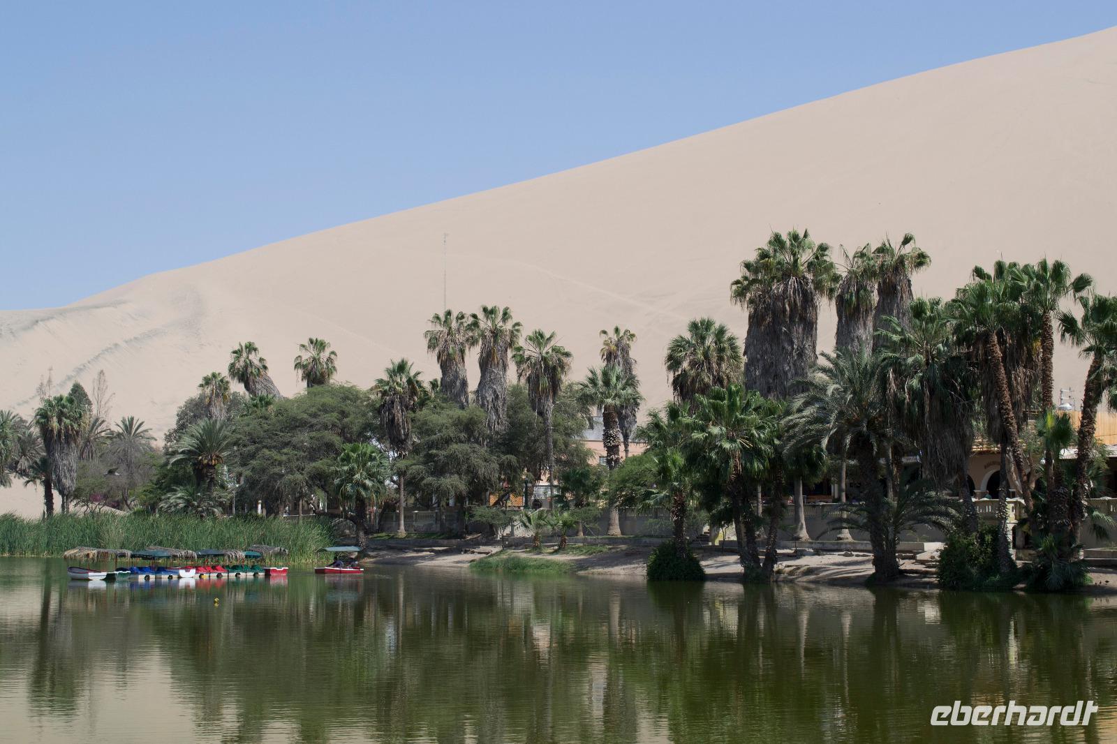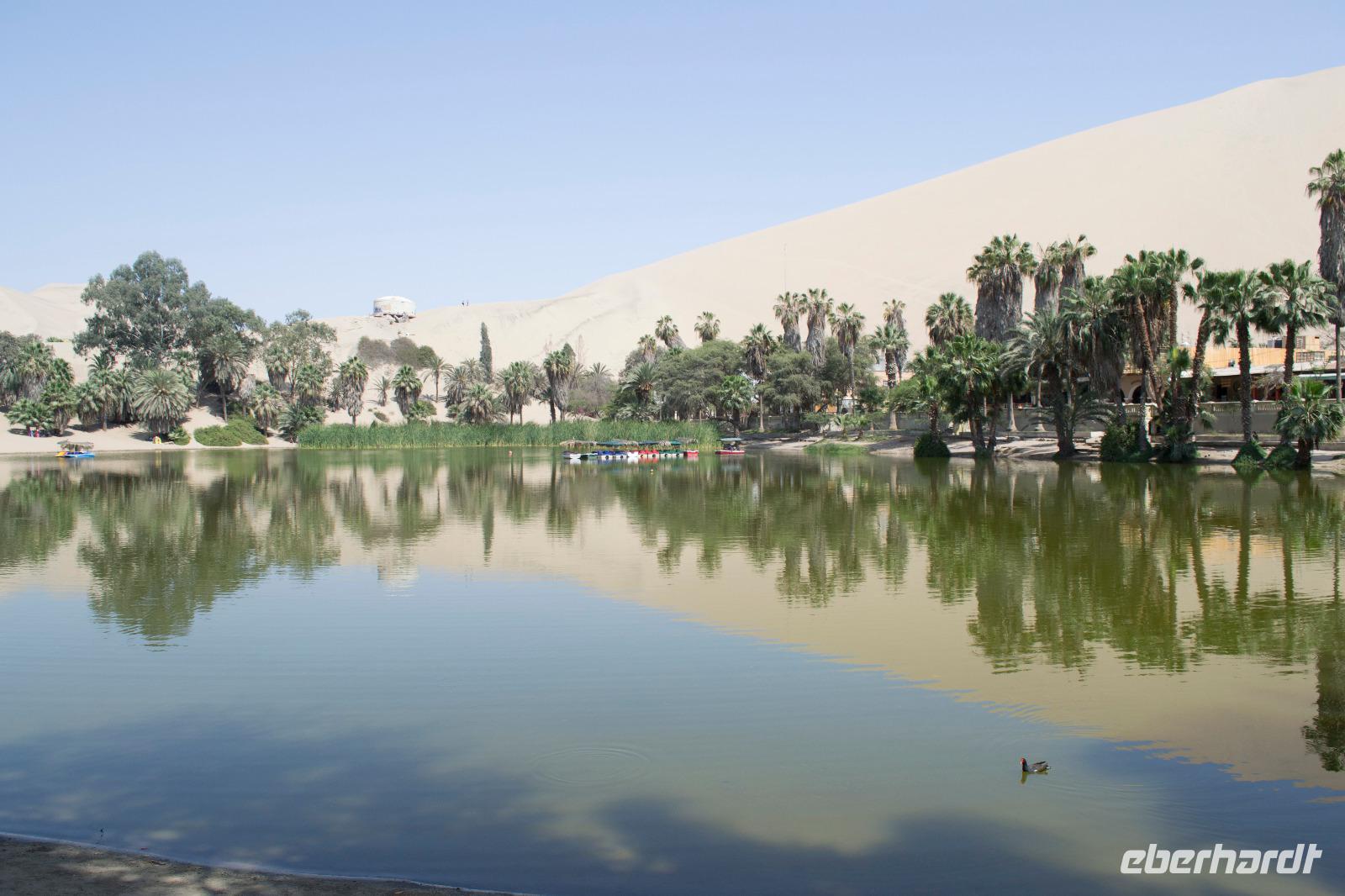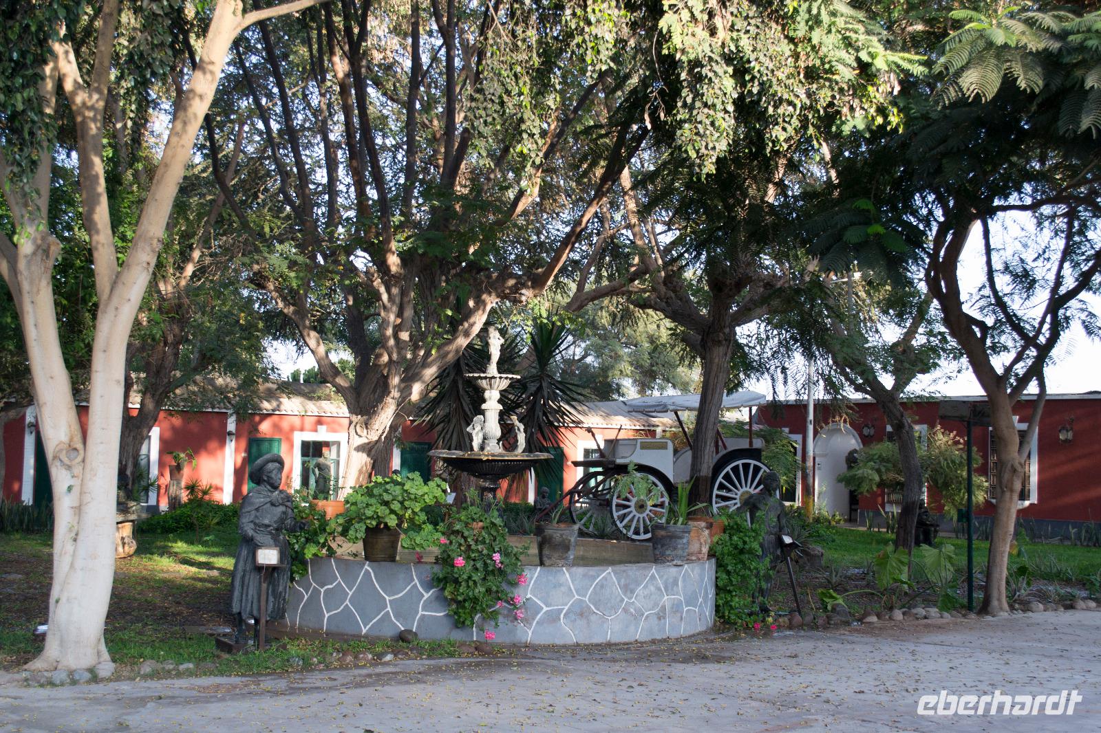 Als erstes stand heute ein Stopp an der Oase "Huacachina" an. Der Name hat seinen Ursprung aus dem Quechua, wobei "huaca" mit "Heiliger Ort" und "china" mit "Frau" übersetzt werden kann. Weiter ging es in den nur sechs Kilometer entfernten Ort Ica. Dieser liegt rund 406 Meter hoch und gehört zur gleichnamigen Provinz. Wir besuchten das "Museo Regional de Ica", wo wir peruanische Überreste bestaunen und teilweise vor gut erhaltenen Mumien und bizarren Menschenschädeln erschrocken. Bevor wir die Nazca Linien erreichten deckten wir uns bei einem großen Supermarkt mit Lebensmitteln und Getränken für die Fahrt ein. Wir sollten eigentlich 14 Uhr die Flugstation der Nazca Linien erreichen, doch der Transport von Windmühlteilen kam uns in die Quere. Wir konnten also mit an sehen wie die LKWs sich die Serpentinen entlang nach unten Richtung Tal quälten. Dadurch verloren wir sehr viel kostbare Zeit, denn die Flüge für die ankommenden Reisegruppen werden nach Ankunftszeit sofort verteilt. Doch durch die Hilfe unseres Reiseleiter Ernesto und der guten Vorarbeit im Bus und Einteilung in zwei Gruppen kamen alle Reisegäste noch an demselben Tag in den Genuss des Rundfluges über die berühmten Linien. Sie sind riesige Geoglyphen in der Wüste bei Nazca und Palpa. Die Nazca-Ebene zeigt auf einer Fläche von 500 km² schnurgerade, bis zu 20 km lange Linien, Dreiecke und trapezförmige Flächen sowie Figuren mit einer Größe von zehn bis mehreren hundert Metern. Diese können nur bei einem 30 minütigen Rundflug in Kleinflugzeugen erlebt werden. Nach diesem Höhepunkt waren wir alle überglücklich und freuten uns zunächst auf ein tolles Abendessen in dem lokalen Restaurant „El Porton" mit tollem Flair und einem köstlichen Pisco Sour. Die Nacht verbrachten wir auf dem Gut „Majoro" mit einer romantischen Hotelanlage und den ersten Lamas zwischen den Sonnenliegen und der Poolbar.
