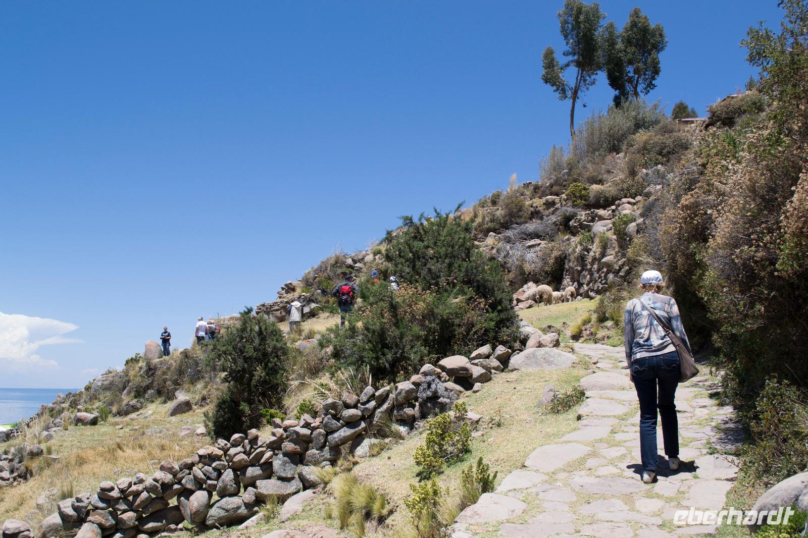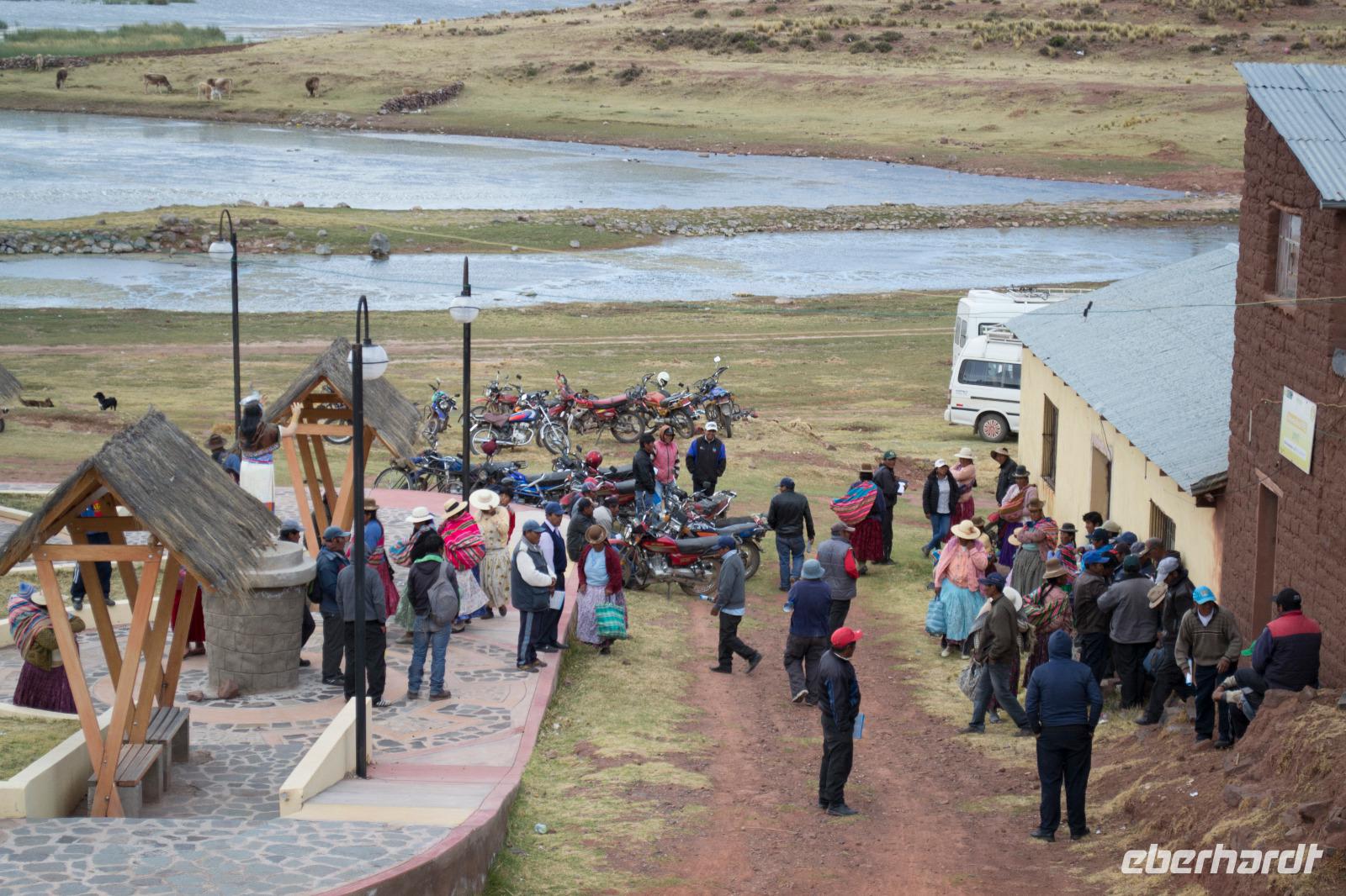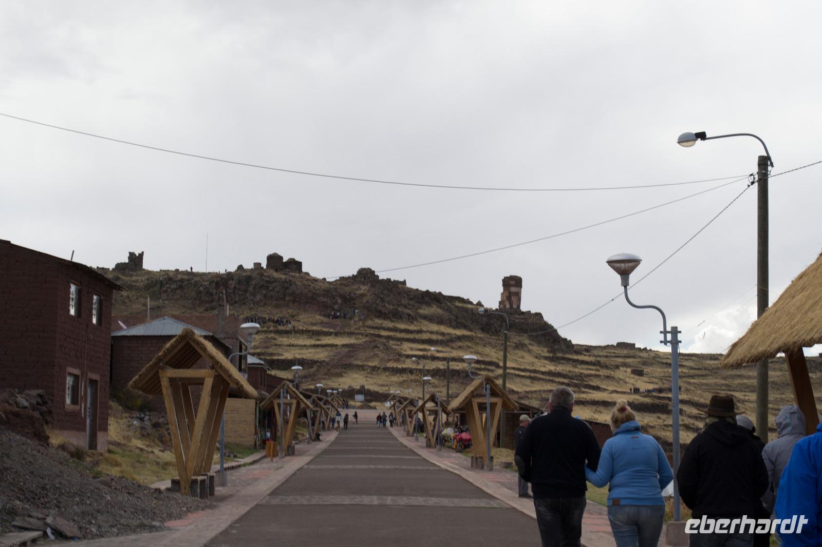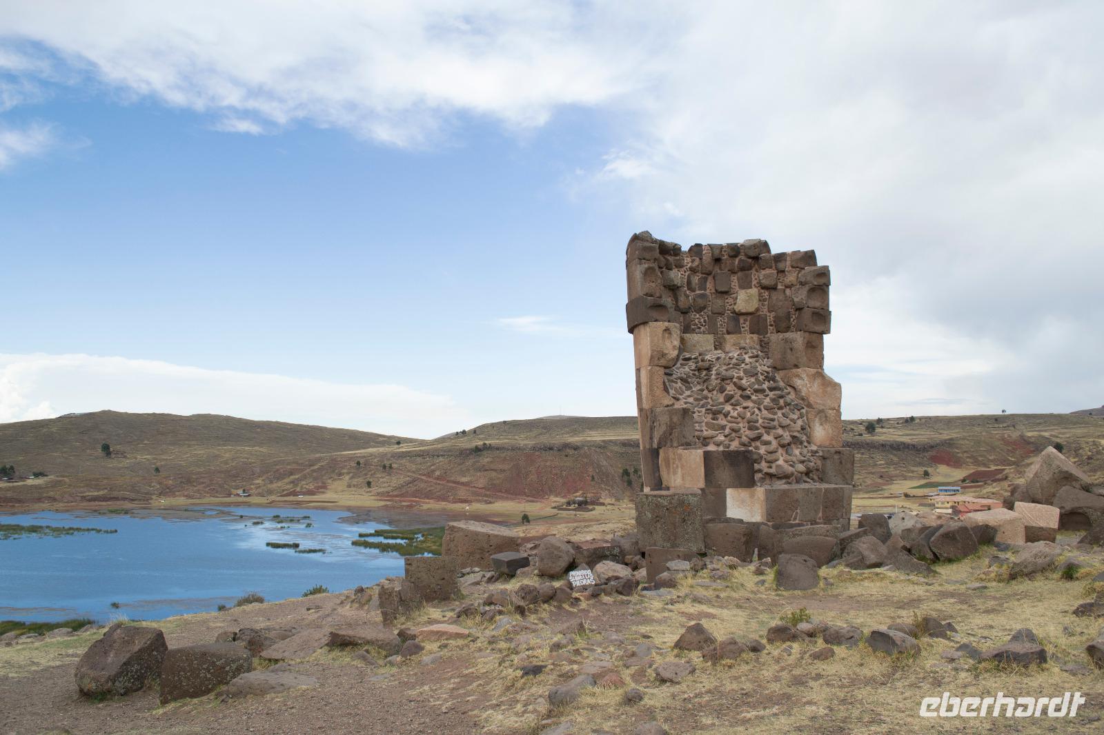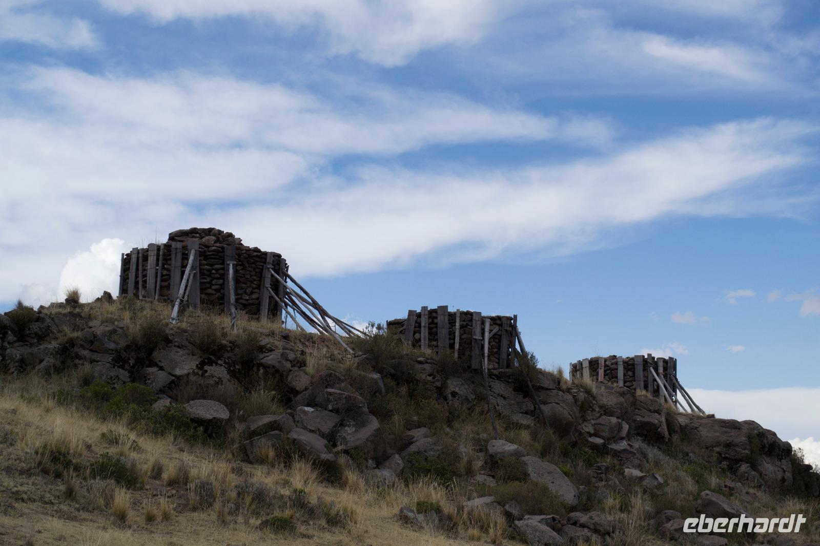 Heute sagten wir der „weißen Stadt" auf Wiedersehen und fuhren in Richtung Titicacasee, nach Puno. Heute erreichen wir eine Höhe von über 4000 Meter, welche sich auf unseren Körper bemerkbar machte. Wir wandten unser gestrig erlangtes Wissen über die verschieden Lama Sorten an und benannten die am Straßenrand stehenden Vierbeiner nach Ihrer Rasse. Am ersten Stopp des Tages tranken wir alle gemeinsam einen Tee aus den drei wichtigen Kräuter gegen die Höhe - dem Coca, der Minze und dem Munja. Weiter ging es vorbei an wunderschönen Seen mit Flamigons und Lama- und Alpacaherden in Richtung der Grabtürme. In Sillustani, am Ufer des Sees Umayo, sind die um 1.000 vor Christus errichteten Grabtürme auch Chullpas genannt zu besichtigen. Die runden Türme, bis zu zwölf Meter hoch bestehen aus quadratischen großen Blöcken, die ohne Mörtel aufgesetzt wurden. In den Chullpas wurden bedeutende Persönlichkeiten von 15 Generationen der Vorinkazeit beigesetzt. Leider wurden die Grabtürme alle geplündert und teilweise durch die spanischen Truppen beschädigt. Nach der Führung durch unseren heutigen Reiseleiter Ciro, welcher aus der Stadt Puno kam fuhren wir weiter in seine Heimatstadt. Unterwegs legten wir noch einen kurzen Fotostopp in einer aus Lehm erbauten Stadt ein und erhielten Einblick in eine traditionelle Wohnung mit Küche und Köstlichkeiten. Am späten Nachmittag bezogen wir unser Hotel nahe dem Titicacasee und genossen ein 3-Gänge-Menü im Restaurant „La Casona" auf der Hauptstraße Lima in Puno.