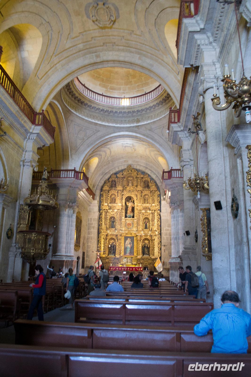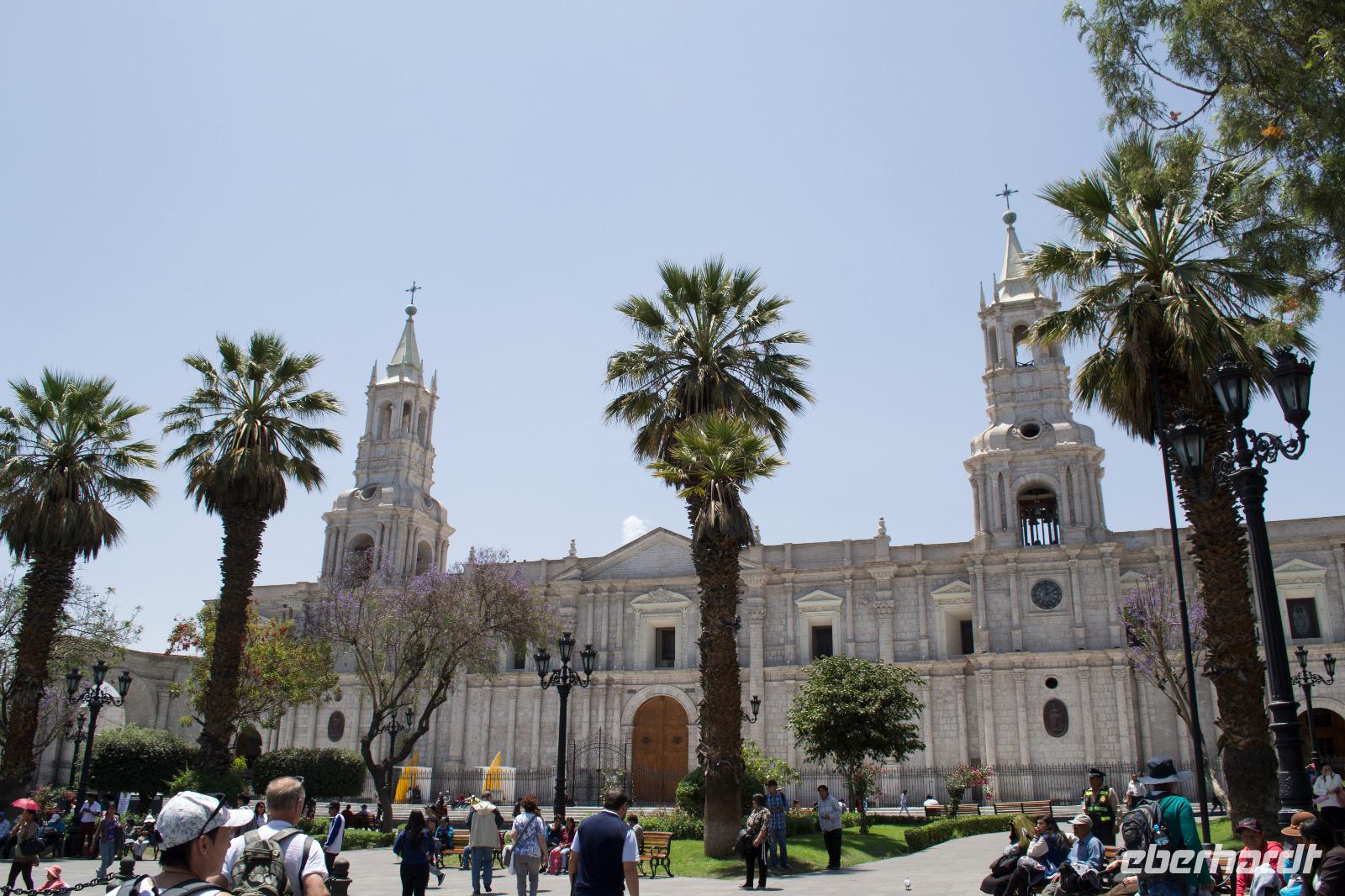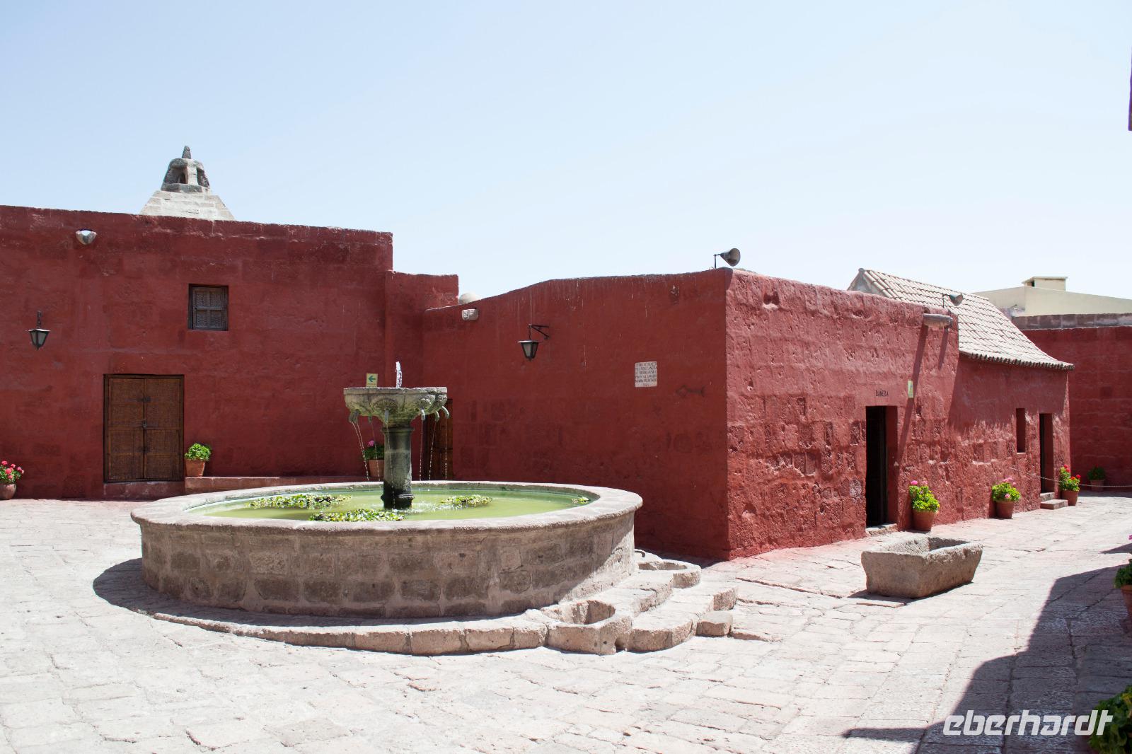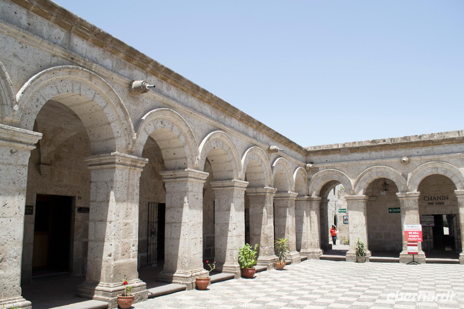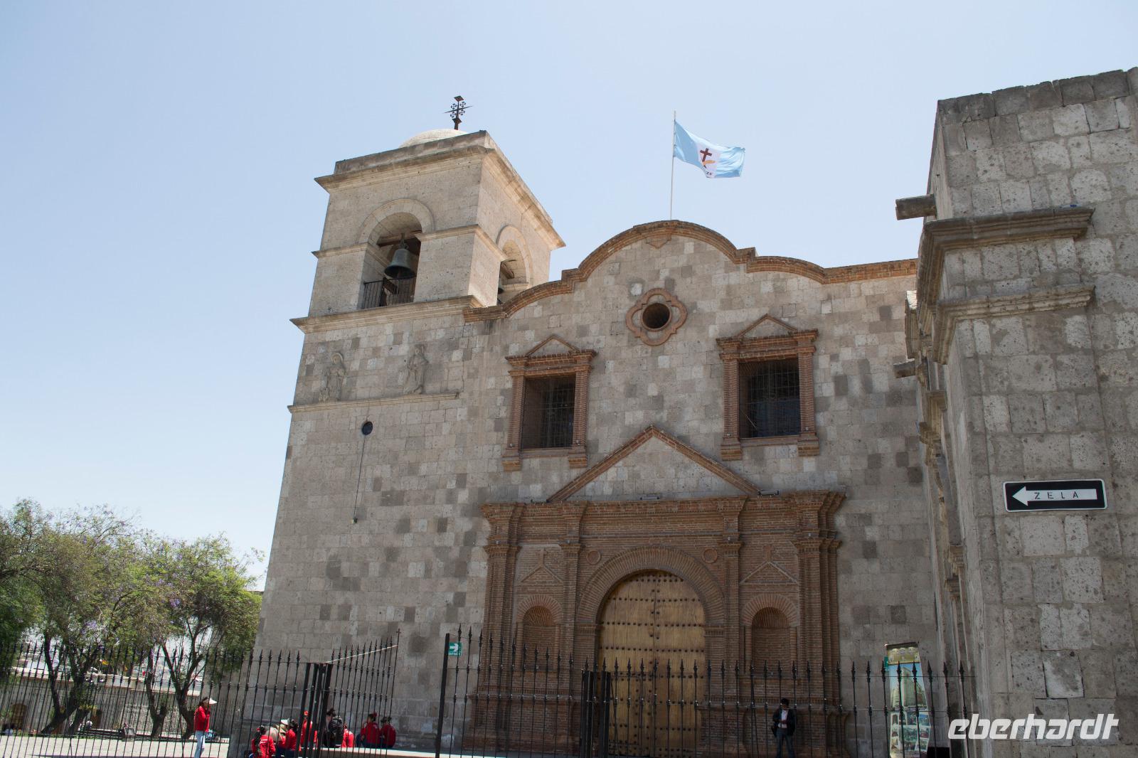 Bei strahlendem Sonnenschein begrüßten wir am Morgen unsere Reiseleiterin Paola für den heutigen Tag durch die „weiße Stadt" Arequipa. Unsere heutige Stadtrundfahrt beginnt mit einem fantastischen Ausblick auf die Vulkane "El Misti" /5.822 Meter, "Chachani" /6.075 Meter und "Pichu Pichu" /5.571 Meter vom Aussichtspunkt im Stadtteil Yanahuara. Paola erklärte uns von dort die zahlreichen Anbauten. Zum Abschluss servierte Sie uns eine Kostprobe des leckeren „Maca Schnaps" und erläuterte uns die verschiedene Kräuter und Coca Sorten in Form von Blättern, Bonbons und Pulver. Danach ging es mit dem Bus weiter zu einem niedriger gelegenen Aussichtspunkt, wo wir noch eine Kostprobe von dem typisch peruanischen Vanille Eis nehmen konnten. Im Anschluss daran setzte uns der Bus in der Nähe unseres Hotels an der „San Franzisco" Kirche ab und wir liefen zu Fuß zu dem nur 5 Minuten entfernten Plaza de Armas. Paola erklärte uns die Kirche "La Compania" aus fast weißem Vulkanstein von außen und später auch kurz von innen, bis wir diese auf Grund eines anstehenden Gottesdienstes verlassen sollten. Ein Stück oberhalb der Kirche besuchten wir einen kleinen ruhigen Innenhof mir vielen Alpaca Geschäften. Zu Fuß über den Hauptplatz entlang der Kolonialgebäude ging es weiter zu dem Kloster Santa Catalina. Der im 16. Jahrhundert erschaffenen Gebäudekomplex erstrahlte in den Farben blau und orange. Dort wurde uns durch eine lokale Reiseleitung das Leben der Nonnen und Anwohner spürbar gezeigt und nahe gebracht. Von den Schlafräumen, über das Krankenhaus bis hin zu dem Wäscheplatz. Wir verabschiedeten unsere äußerst lustige Reiseleitung Paola und genossen den freien Nachmittag in der wunschschönen Stadt. Am Abend reservierte Reisebegleitung Laura für uns in einem nur wenige Gehminuten entfernten Restaurant „Zingaro" einen Tisch, wo wir Essen der gehobenen Klasse serviert bekamen.