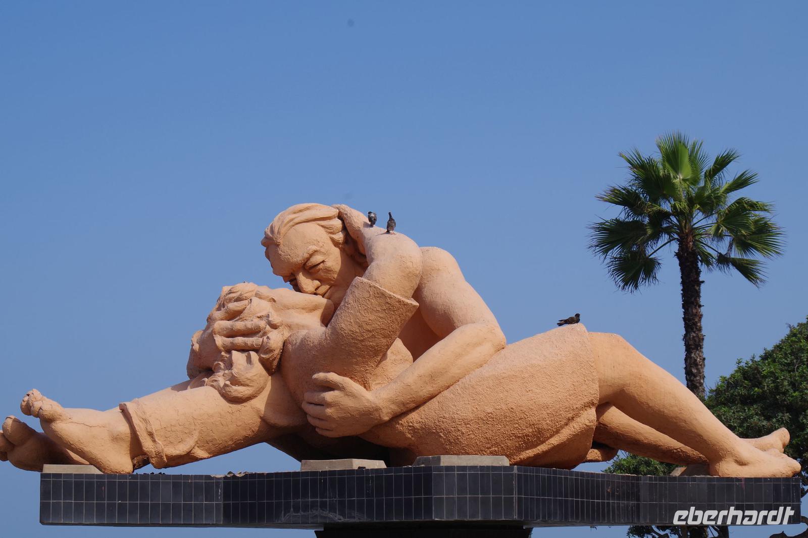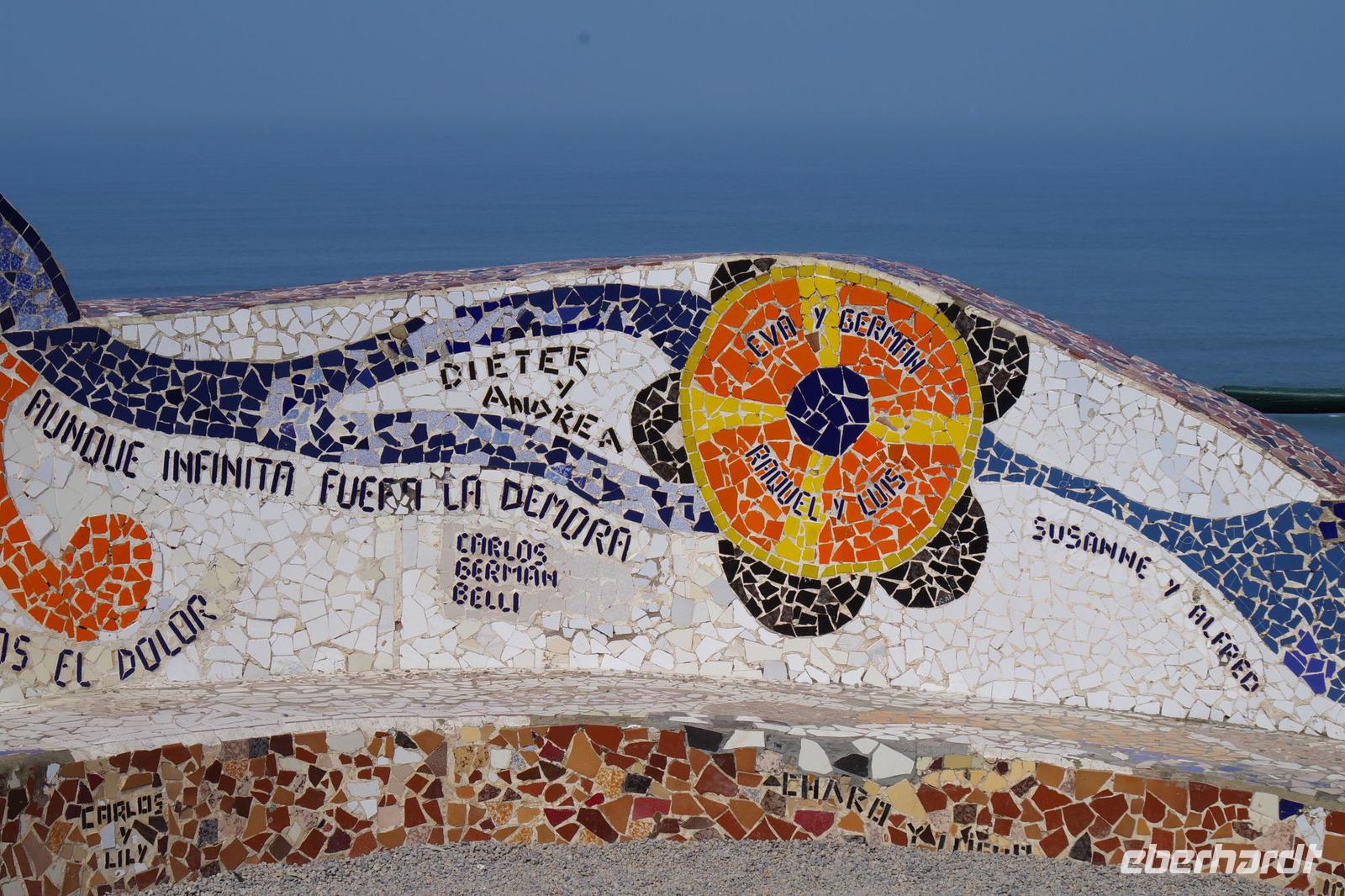 Wir fuhren zunächst durch das Stadtviertel Miraflores, in dem sich auch unser Hotel befand und stoppten dann an der Küste an dem Parque de Amor. Inmitten dessen ist eine große Statue zu sehen, welche „El Beso" (=der Kuss) heißt. Die vielen bunten Mosaike, auf denen sich Liebesbotschaften befinden, erinnern an den Parque Güell in Barcelona.