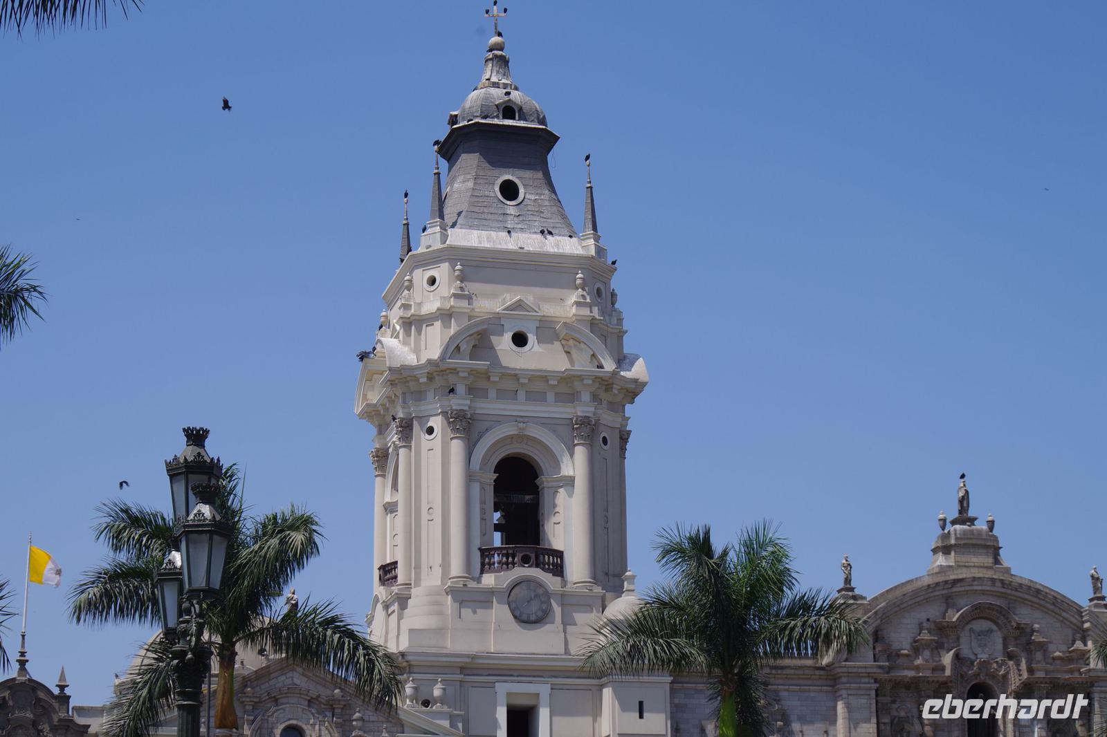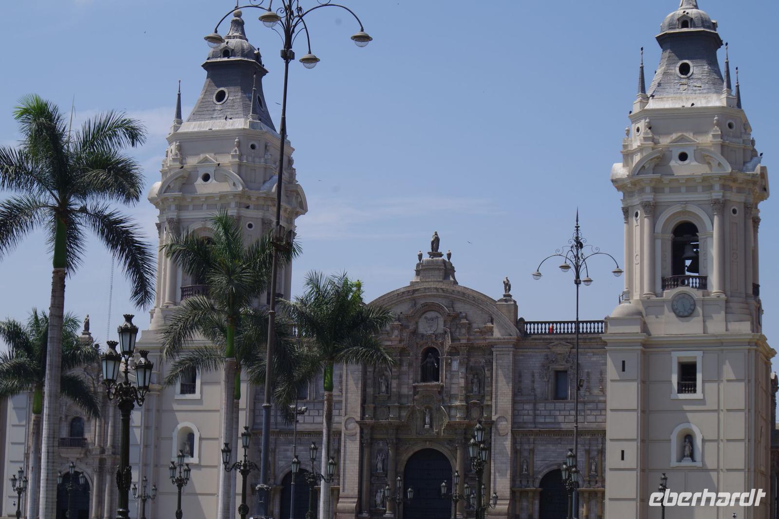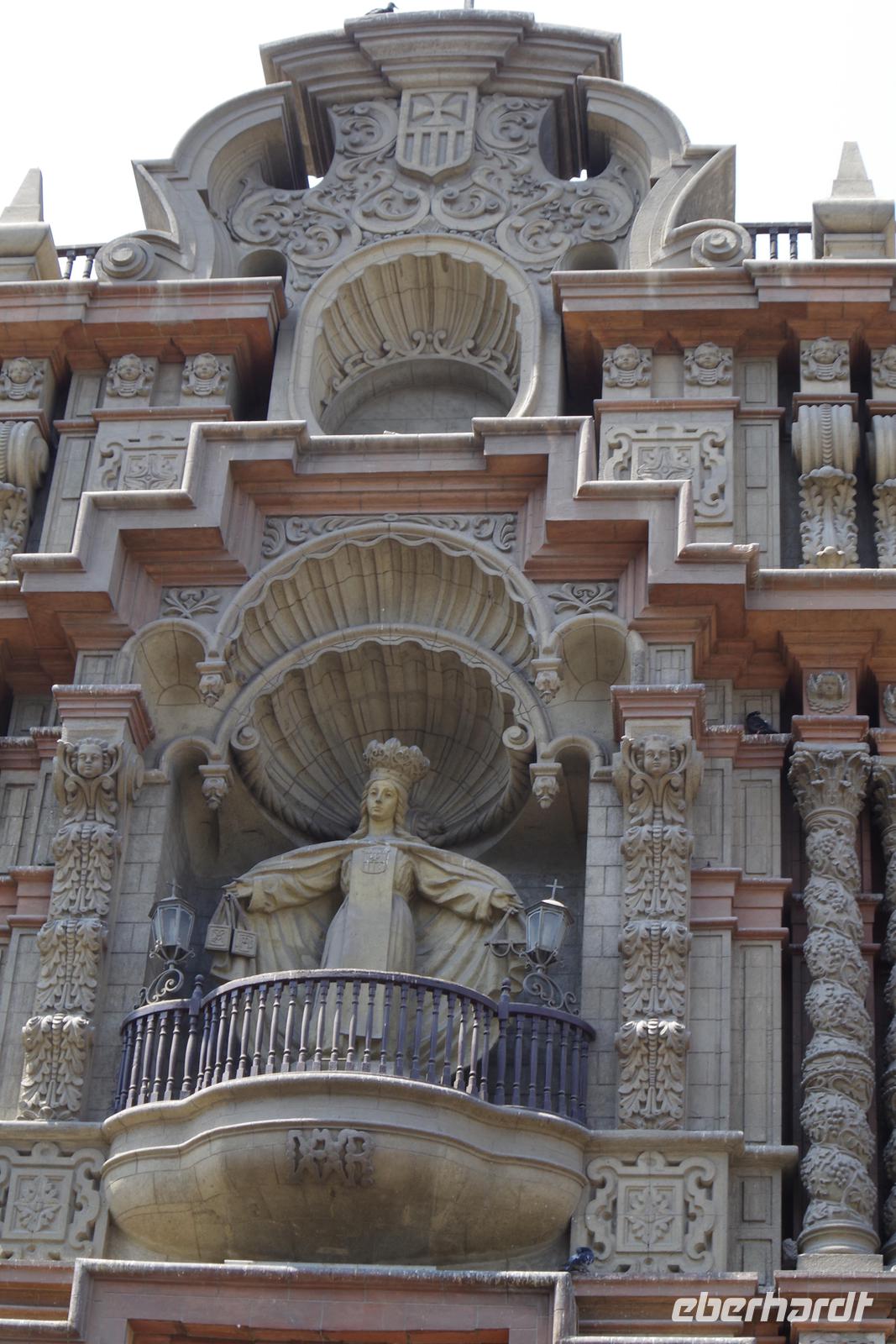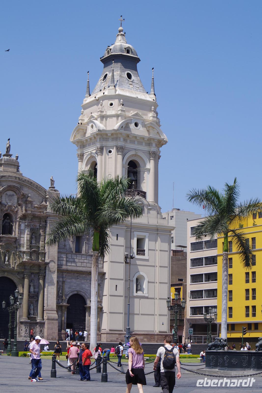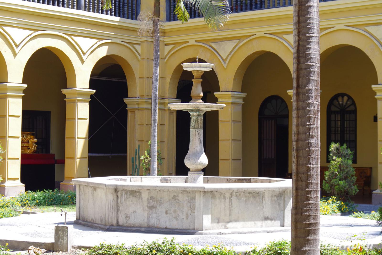 Wir fuhren dann weiter Richtung Plaza de Armas, dem eindrucksvollen und bekannten Platz der peruanischen Hauptstadt. Die Kathedrale Limas konnte man auch kurz vom innen betrachten, in der beispielsweise der mumifizierte Leichnam Pizarros zu sehen ist. Anschließend besuchten wir das Kloster Santo Domingo, eine wirklich schöne Anlage. Besonders bekannt ist es wegen des ersten peruanischen Heiligen, der dort einen Großteil seines Lebens verbrachte, San Martin de Porres. Wir erhielten von Franz viele Informationen über ihn, aber auch über Santa Rosa de Lima, deren Schädel im Kloster zu sehen war.