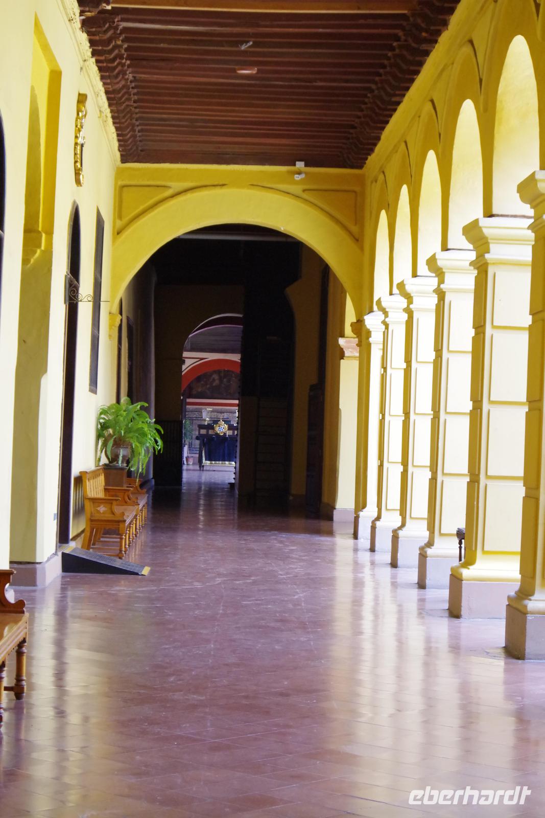 Weiter ging es dann zur Kathedrale der Stadt. Diese wurde von 1560 bis 1664 von verschiedenen Architekten erbaut. Sie ist wirklich sehr groß und besteht aus 24 Gewölben sowie 11 Kapellen. Am Altar einer der Seitenkapellen ist Jesus zu sehen, der jedoch schwarz gefärbt ist. Die Ursache dafür ist der Rauch der Kerzen, deshalb dürfen heutzutage auch nur noch elektrische Kerzen angezündet werden. Er erinnert an ein schlimmes Erdbeben im Jahr 1650 und wird jedes Jahr in der Semana Santa durch die Stadt getragen.