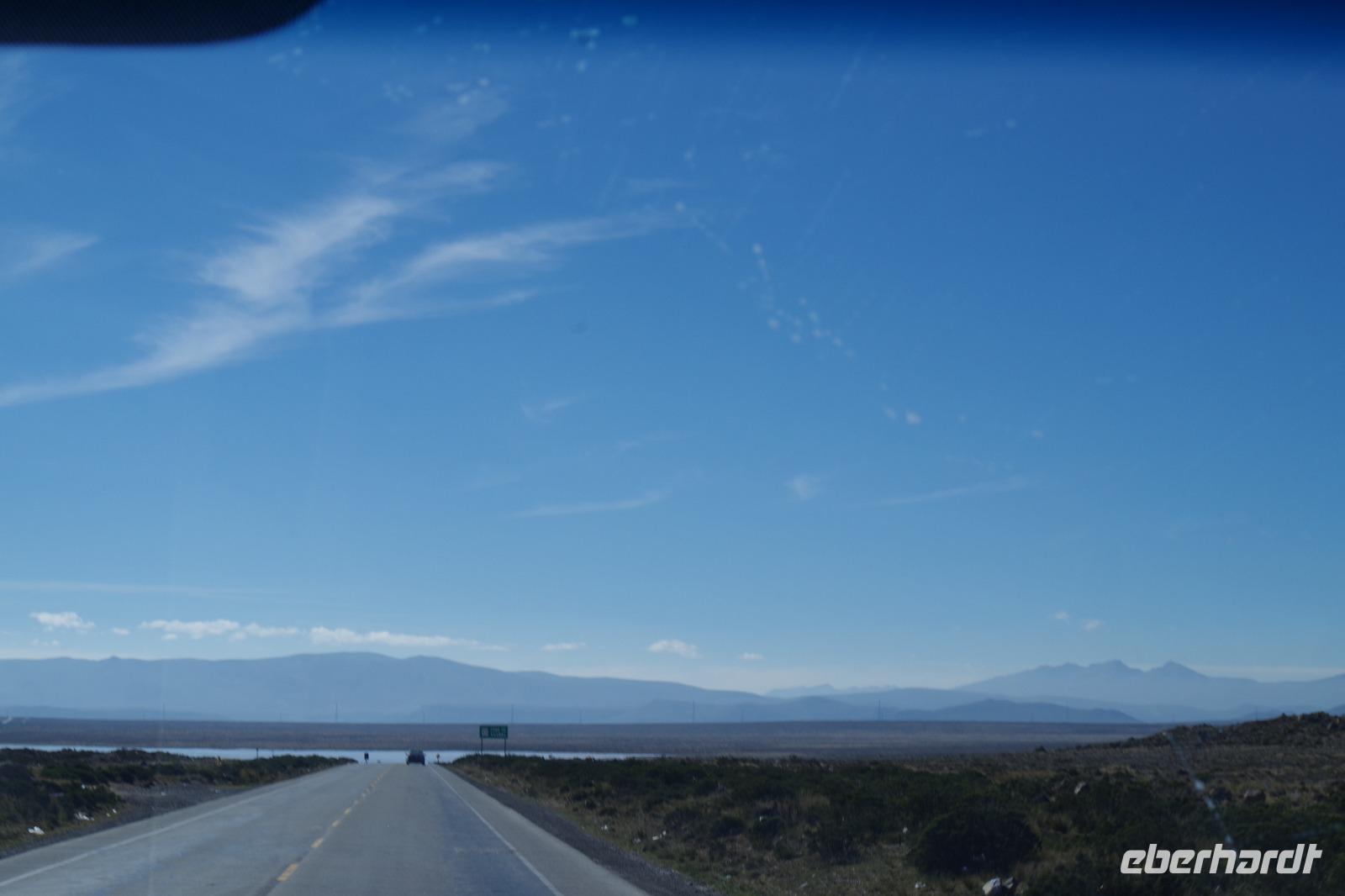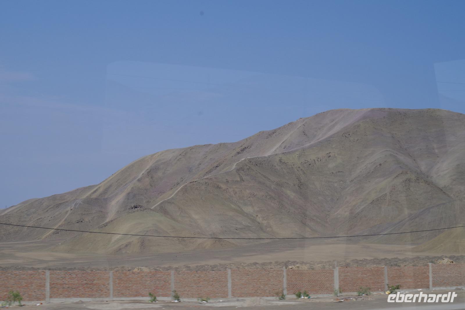 Anschließend starteten wir mit unserer 11-stündigen Fahrt nach Arequipa. Wir fuhren entlang der Panamerica, lange Zeit war auf der linken Seite die Wüste zu sehen und rechts der Pazifik. Wir fuhren sowohl durch die Sandwüste, als auch durch die Felswüste.
