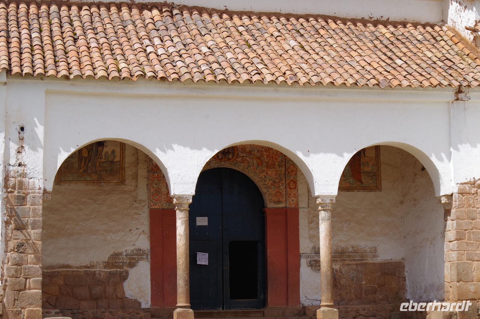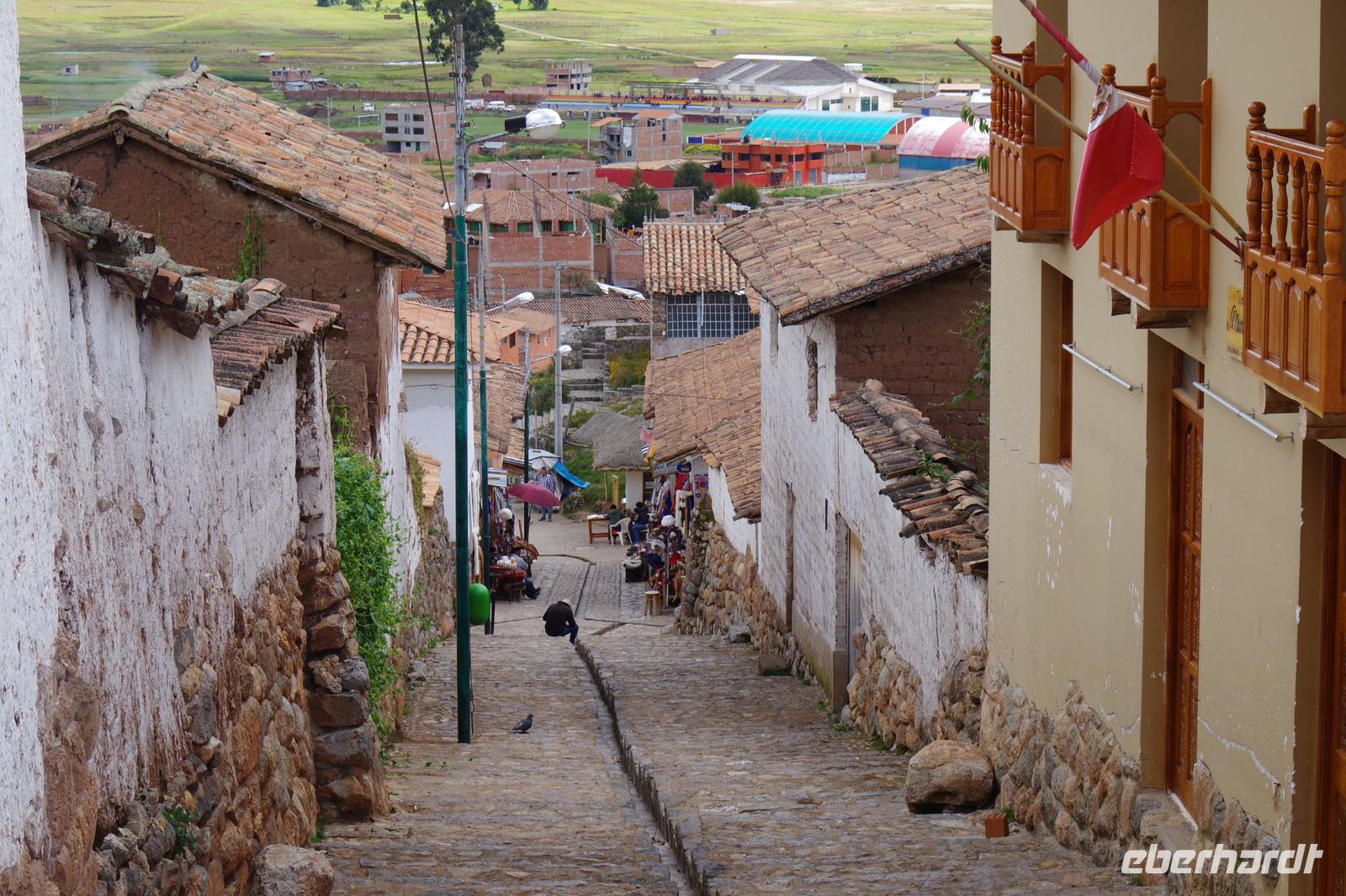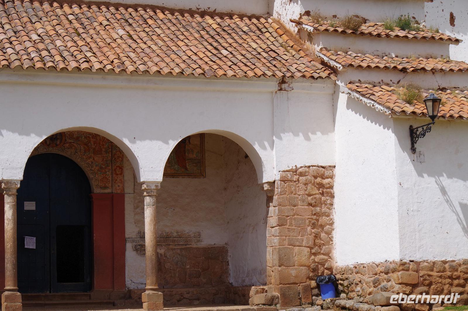 Nach wenigen Minuten erreichten wir die Kirche von Chinchero. Diese wurde extra für uns geöffnet und erinnerte mit den Deckenfresken ein wenig an die St. Peter Kirche, welche wir zwei Tage zuvor in Andahuayillas besichtigten. Sie stammt aus der Kolonialzeit, dennoch ist zu erkennen, dass die Fundamente rings herum von den Inkas errichtet wurden. Die Messe findet jeden Sonntag noch immer in der Sprache Quechua statt.