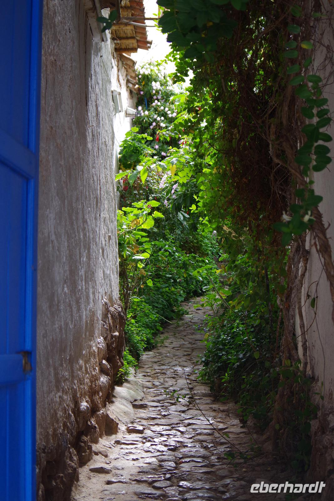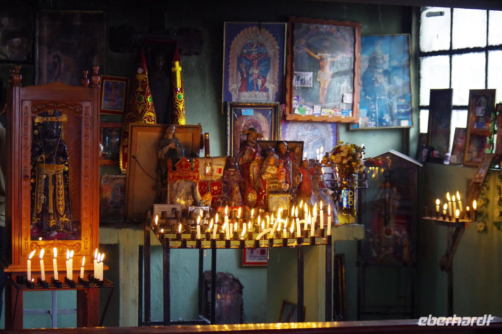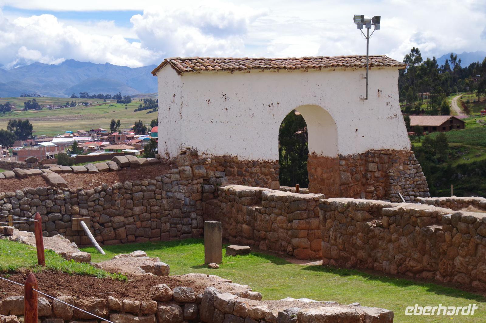 Nach wenigen Minuten erreichten wir die Kirche von Chinchero. Diese wurde extra für uns geöffnet und erinnerte mit den Deckenfresken ein wenig an die St. Peter Kirche, welche wir zwei Tage zuvor in Andahuayillas besichtigten. Sie stammt aus der Kolonialzeit, dennoch ist zu erkennen, dass die Fundamente rings herum von den Inkas errichtet wurden. Die Messe findet jeden Sonntag noch immer in der Sprache Quechua statt.