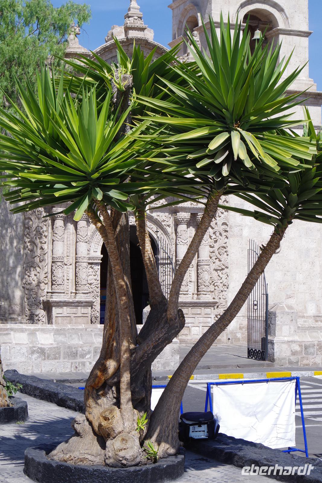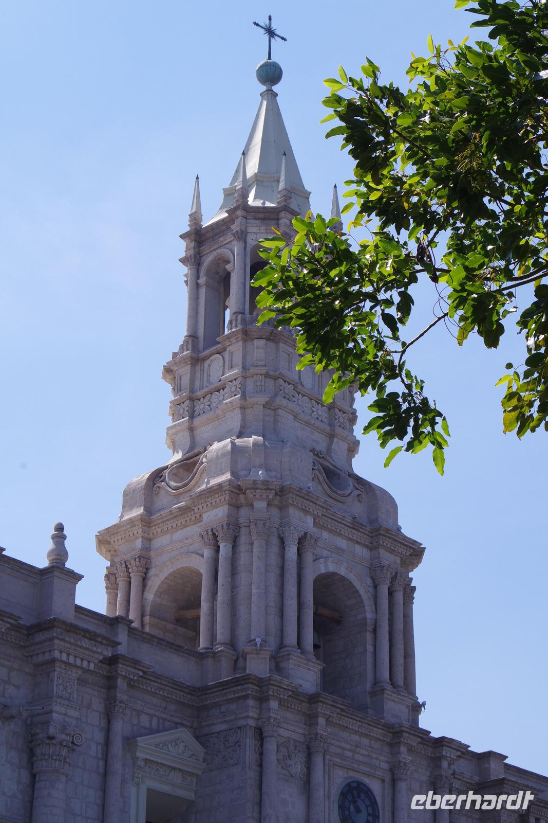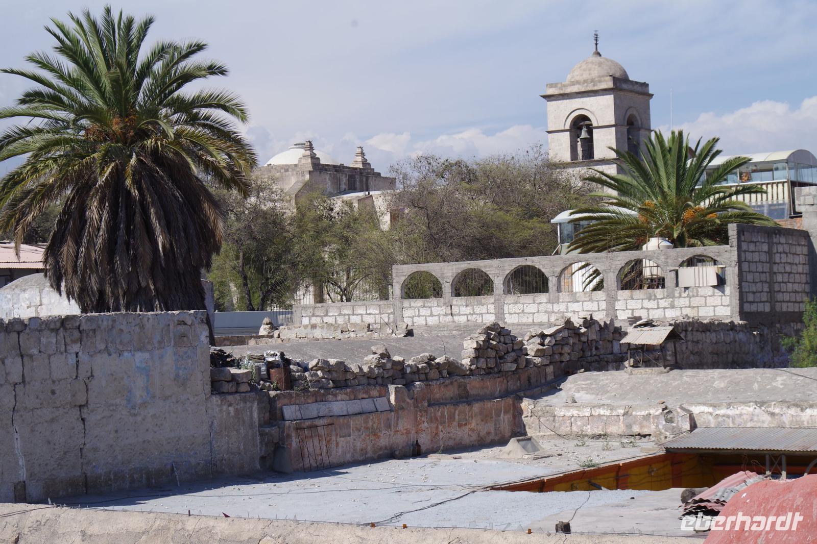 Von dort aus war es nicht weit bis das Stadtzentrum. Wir sahen uns dann die Kathedrale am Plaza de Armas an, welche durch Erdbeben schon mehrmals eingestürzt war, jedoch immer wieder aufgebaut wurde. Sie erstreckt sich über die gesamte Länge des Plaza de Armas und besteht aus weißem Gestein, welches vulkanischen Ursprung hat. Des Weiteren ist die Kathedrale der Sitz des Erzbischofs.