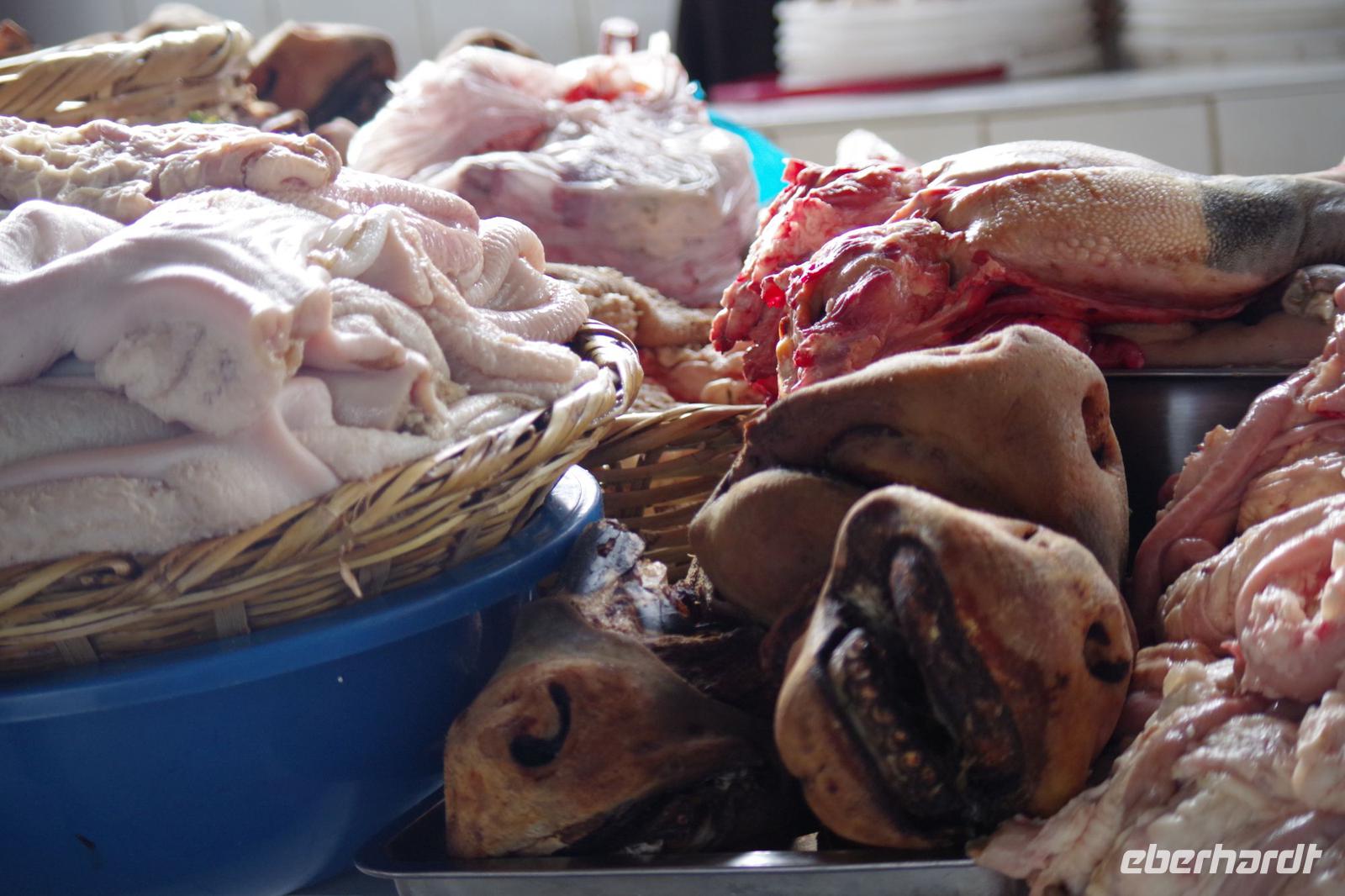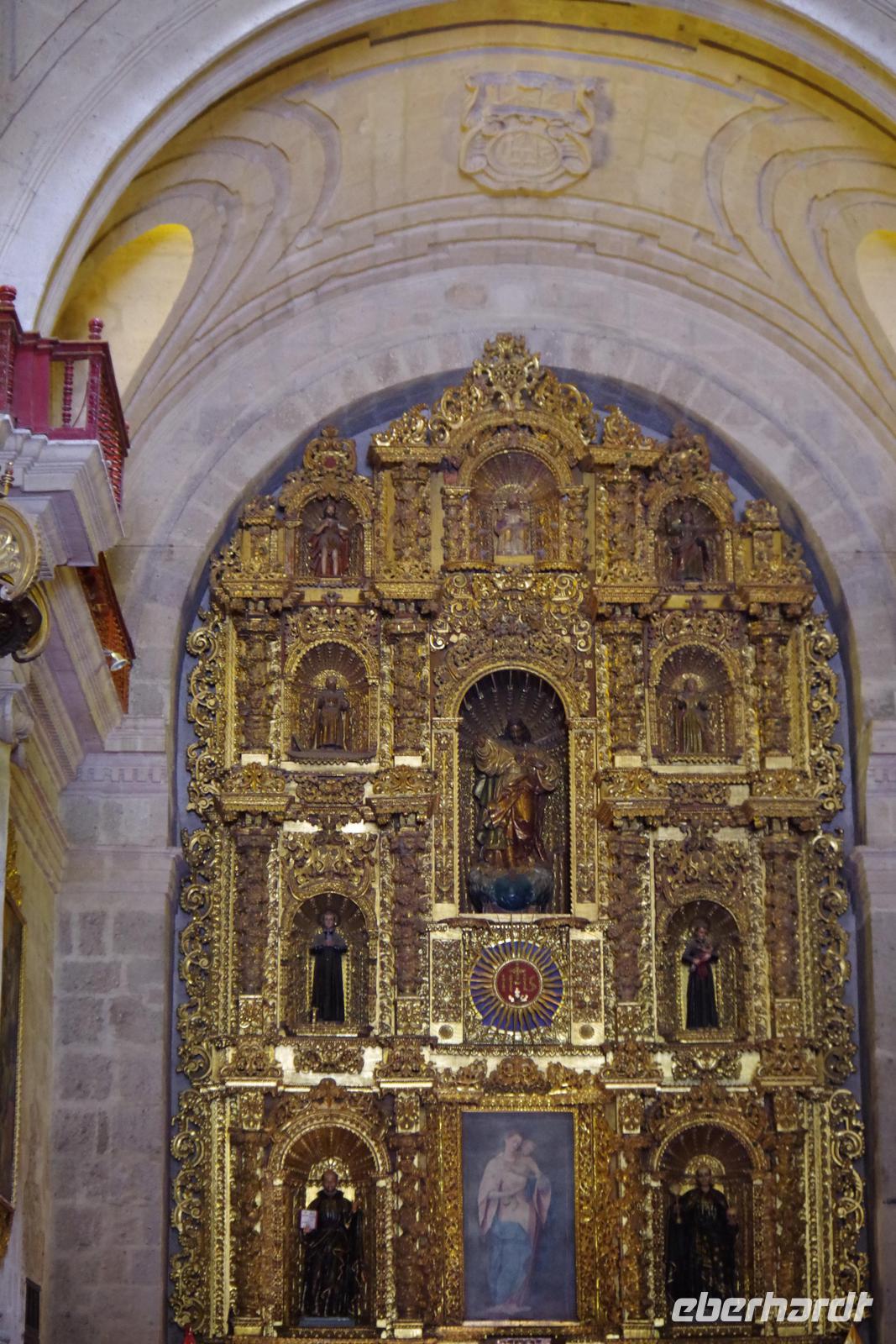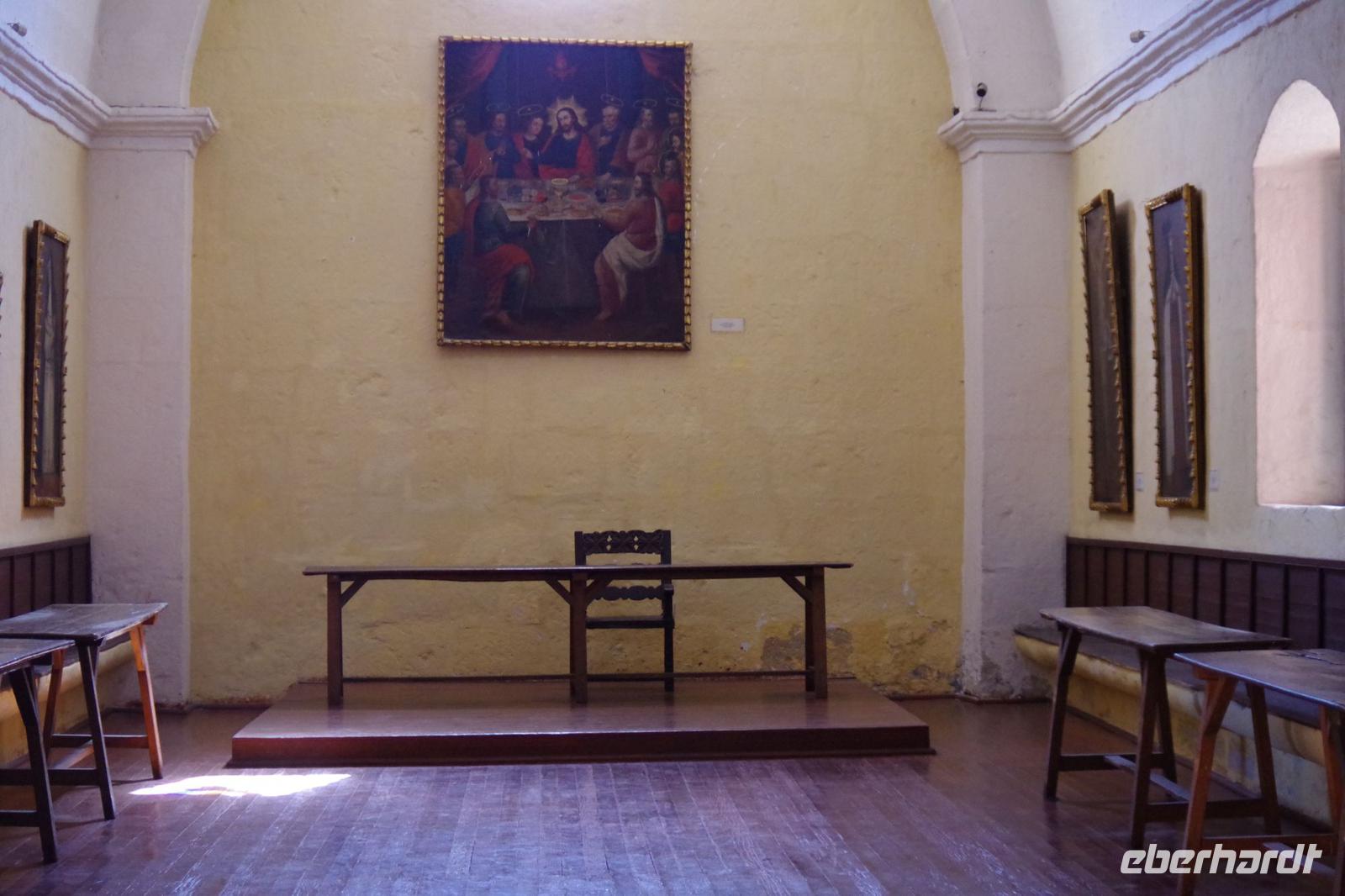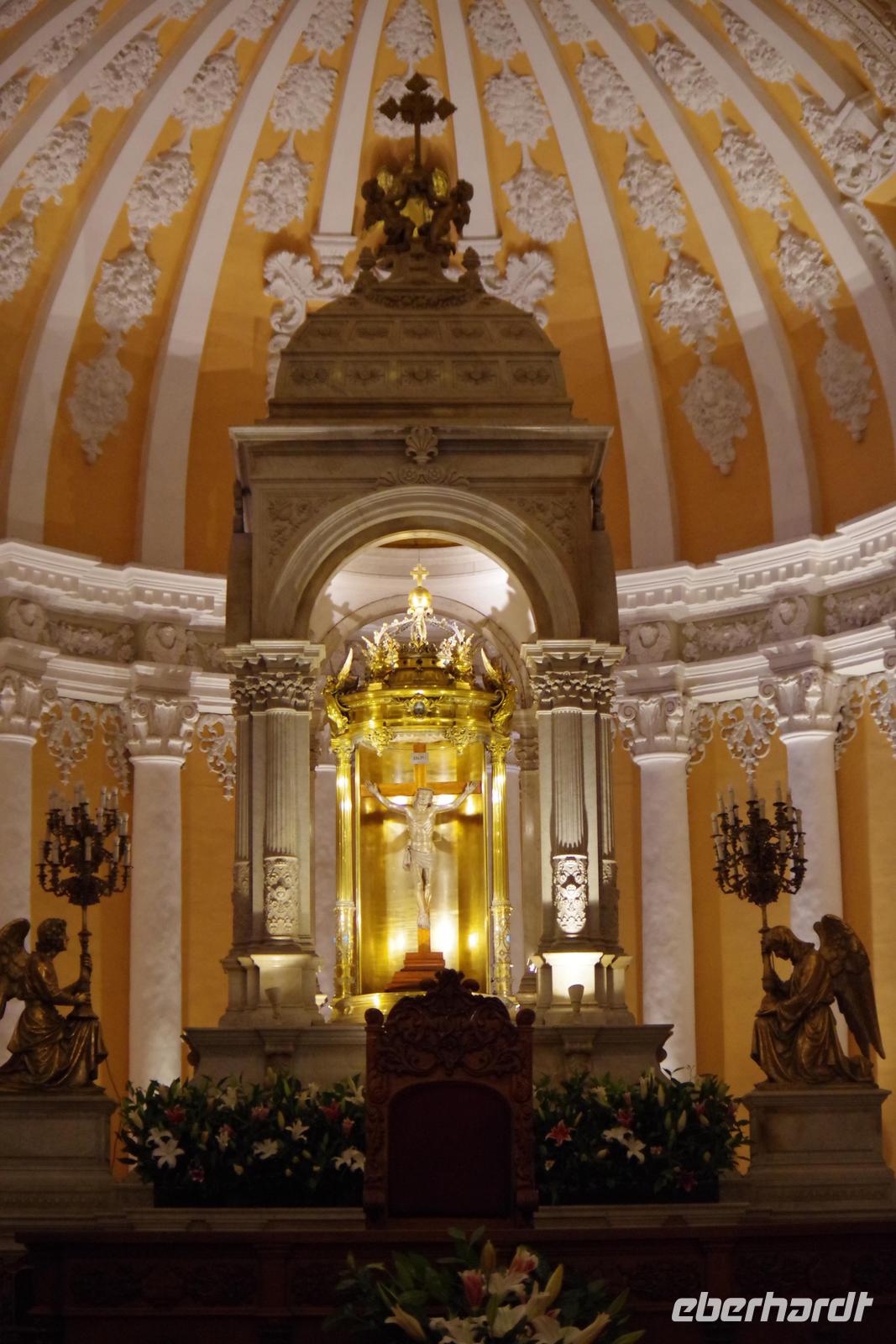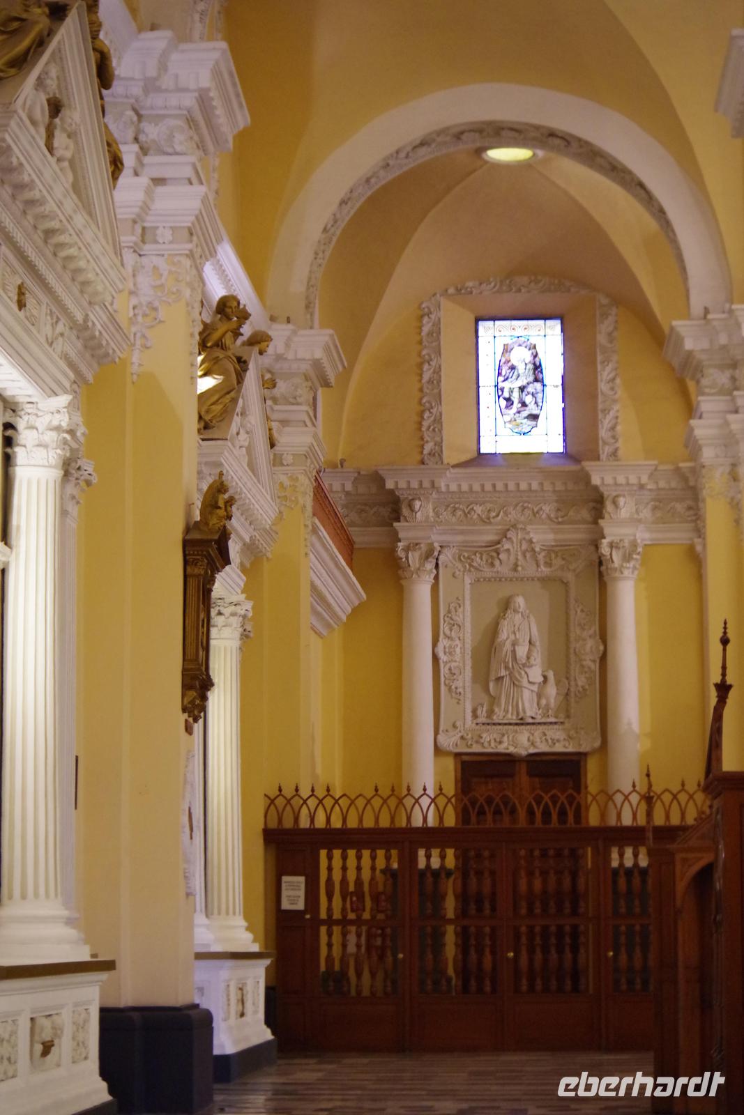 Der Hauptaltar besteht aus unglaublich viel Silber und auch das große Chorgestühl ist mit den 40 heiligen Figuren ebenfalls beeindruckend. In der Kathedrale sind sehr viele Gemälde zu sehen. Auch hier sahen wir wieder das Gemälde des Abendmahls, auf dem Cuy (Meerschweinchen) serviert wird.