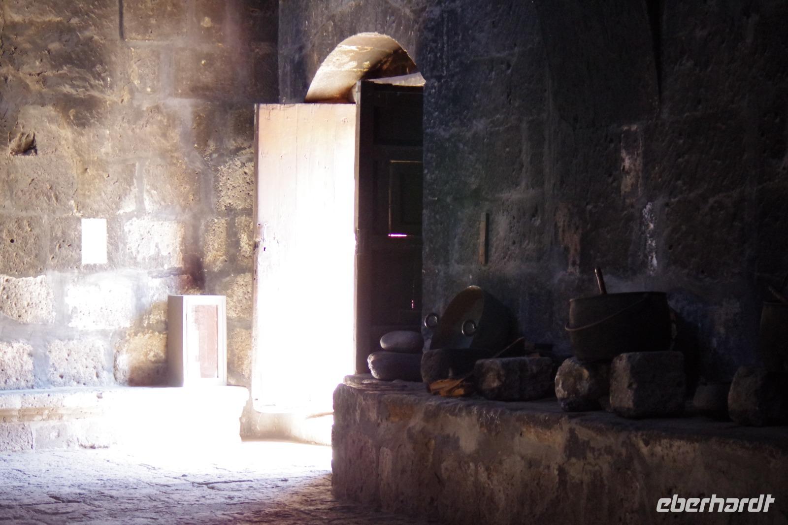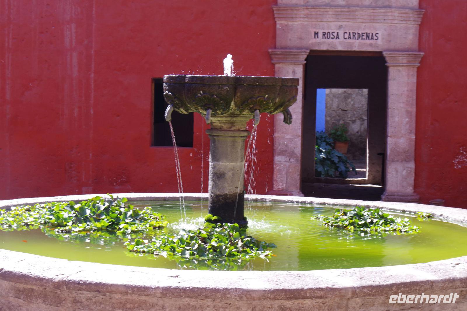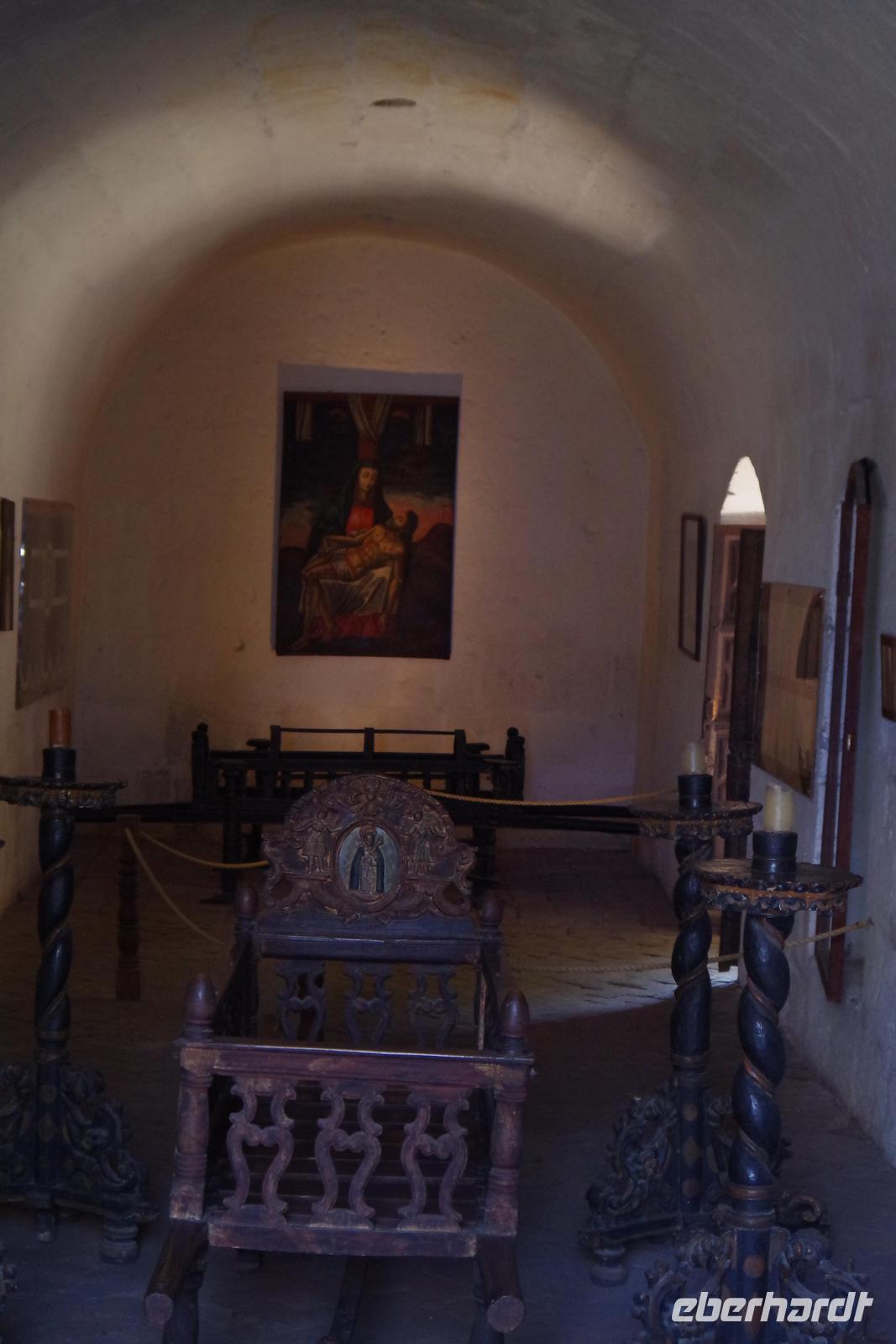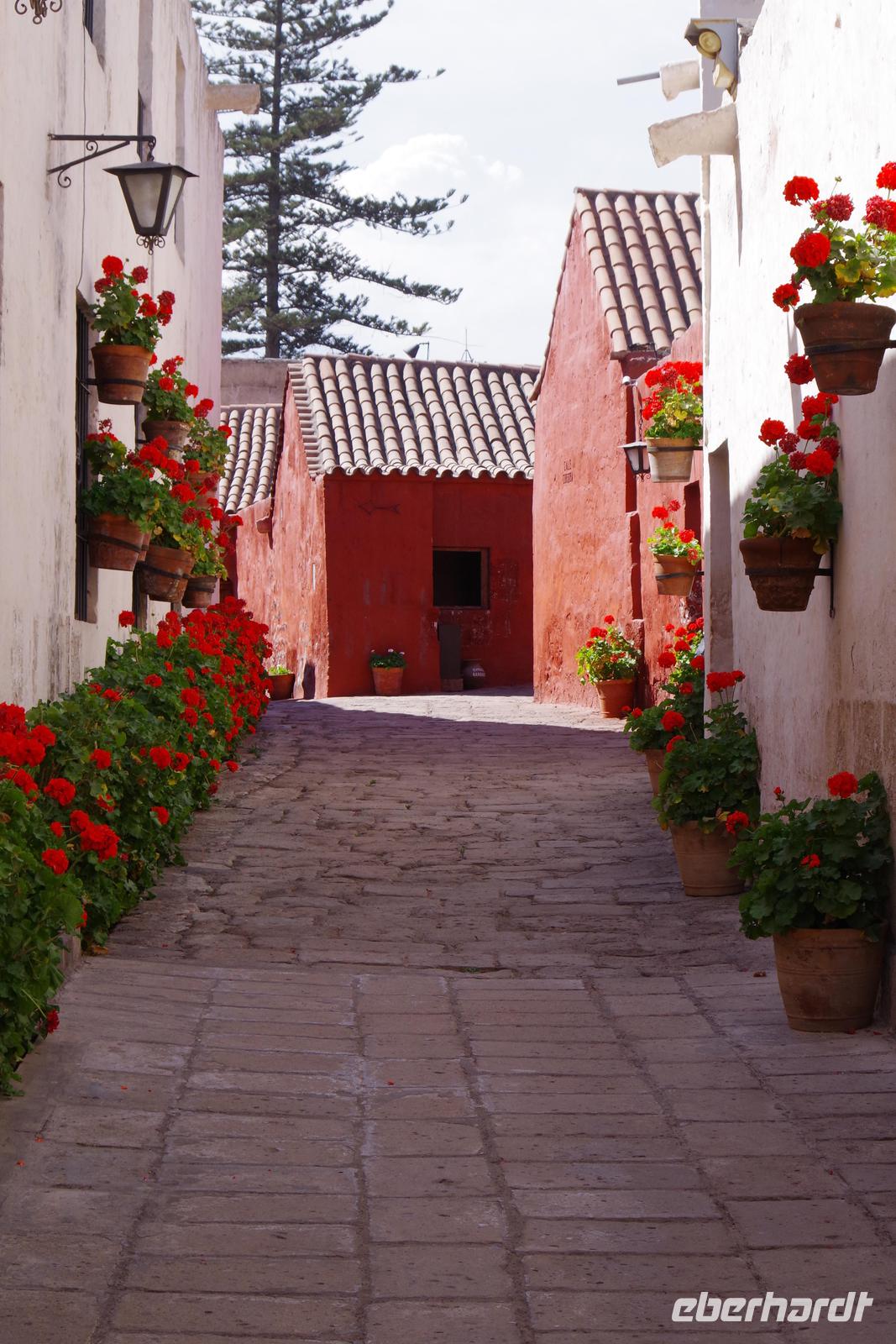 Im Anschluss verabschiedeten wir uns schon wieder von Paula und besuchten das Kloster Santa Catalina. Dort erhielten wir eine interessante Führung durch das wirklich große Kloster. Es hat eine sehr schöne Anlage, fast wie eine kleine Stadt, dennoch ist die Behandlung der Frauen dort schrecklich gewesen. Sie waren regelrecht eingesperrt, konnten mit ihrer Familie nur durch ein Gitter sprechen, wobei sie natürlich auch nicht unbeobachtet waren. Durch Dienerinnen konnten Informationen außerhalb des Klosters befördert werden, beziehungsweise erhielten die Nonnen auch so Nachrichten aus Arequipa. Das Kloster wurde nur von Spanierinnen genutzt und der Aufenthalt war mit einer Menge Geld verbunden. Somit war es nur den wohlhabenden Familien möglich, ihre Kinder in das Kloster zu schicken. Dementsprechend war es gut angesehen, wenn man sein Kind in diesem Kloster hatte.
