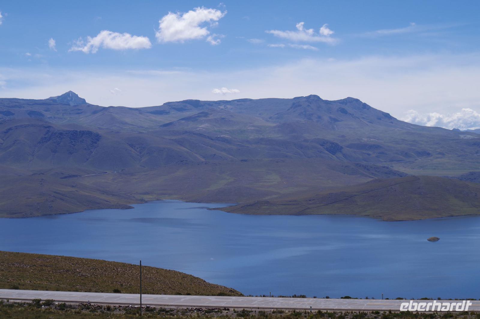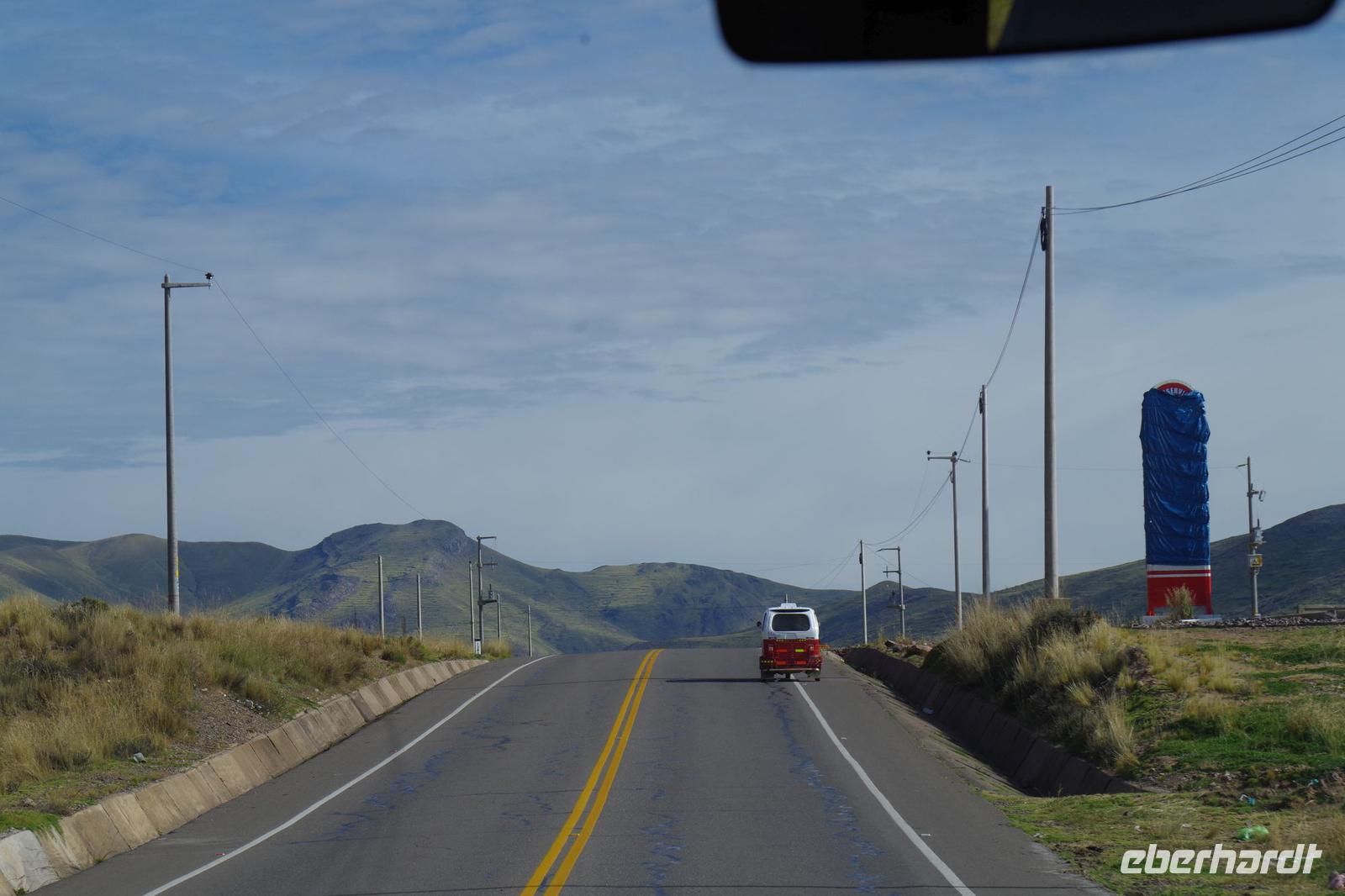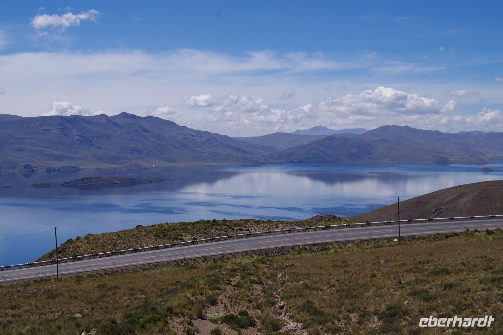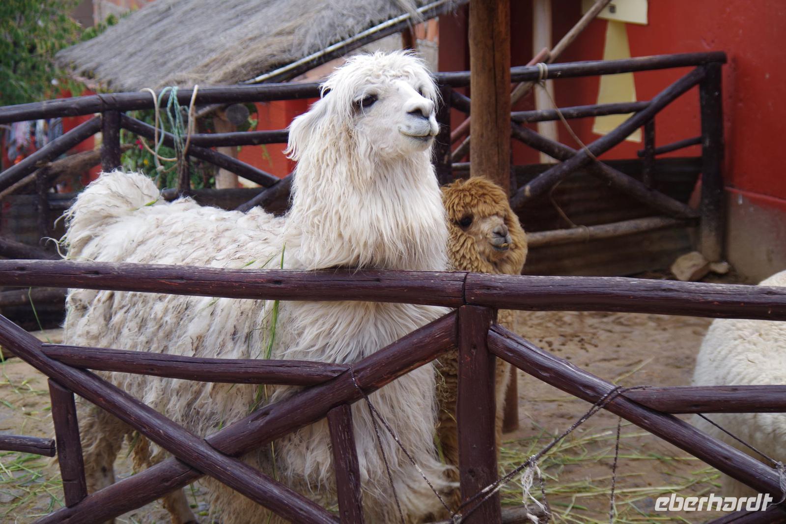 Wir stoppten dann am „La Raya" Pass, auf 4.335 m Höhe. Dort hatten wir einen tollen Blick auf die verschneiten Anden und auch die Möglichkeit, verschiedene Alpaka Produkte bei den Einheimischen zu erwerben.