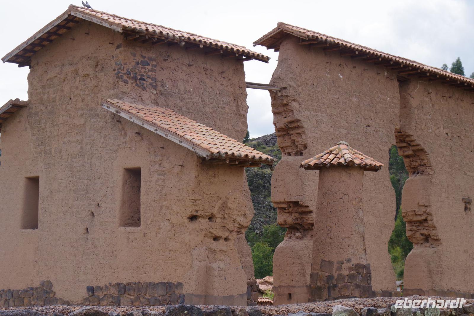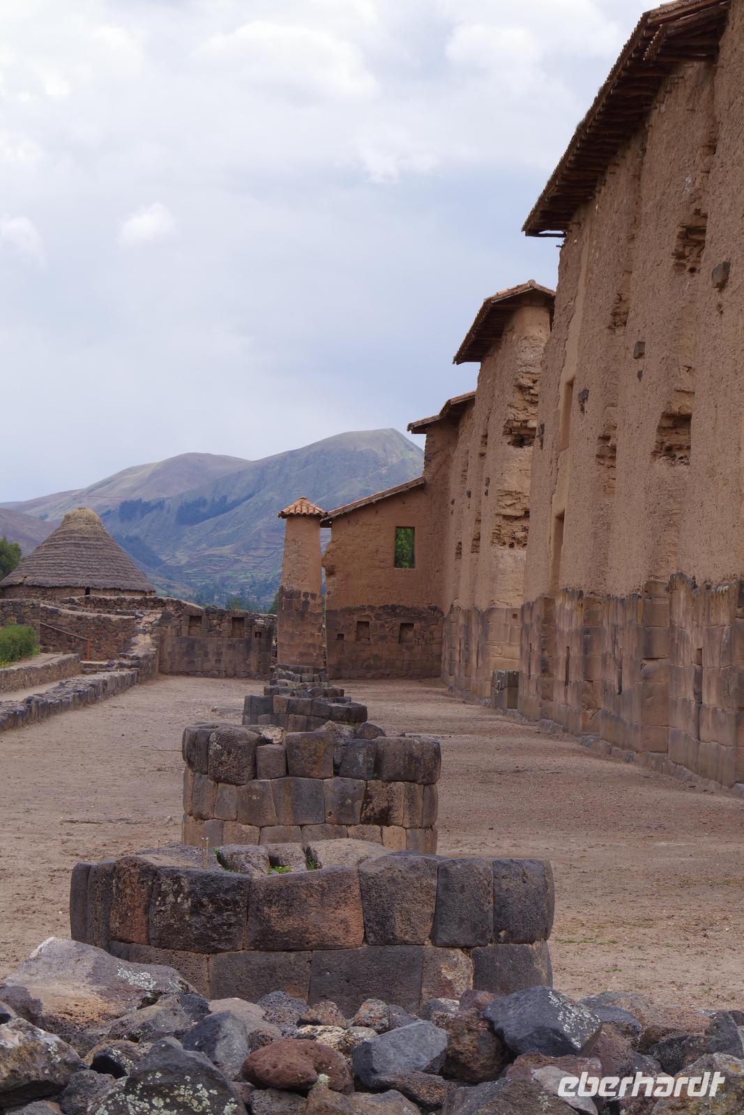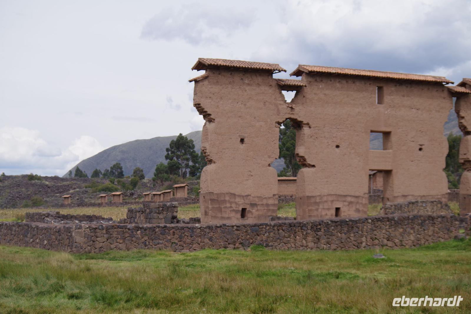 Es dauerte nicht lange und wir erreichten den Viracocha Tempel in Raqui. Dieser wurde einst zu Ehren des Inka Gottes Viracocha gebaut. Die Anlage ist sehr groß, weiter entfernt konnten wir die Mauern sehen. Es ist der einzige Inka-Tempel, bei dessen Bau auch Lehm eingesetzt wurde. Zugeordnet wird er jedoch der preinkaischen Kultur, der Tiwanka. Der Komplex besteht aus mehreren Bereichen, die vermutlich verschiedenen Funktionen, wie Verwaltung oder Lagerung, zugeordnet werden konnten.