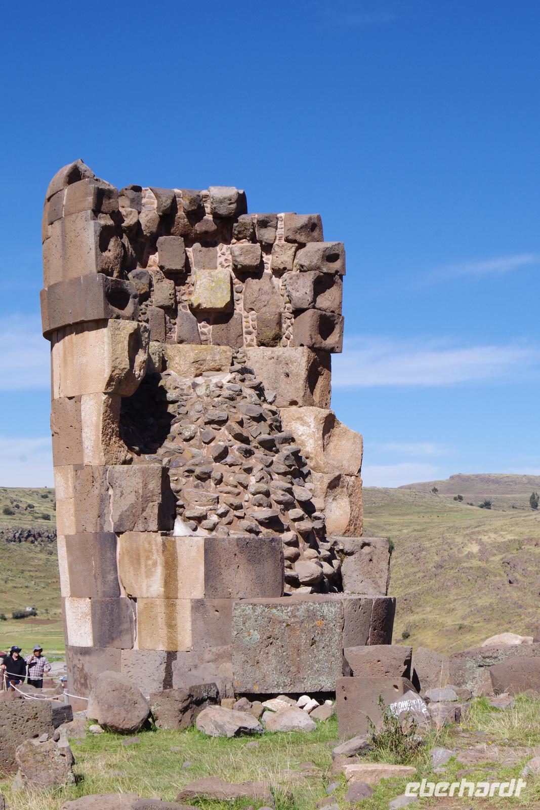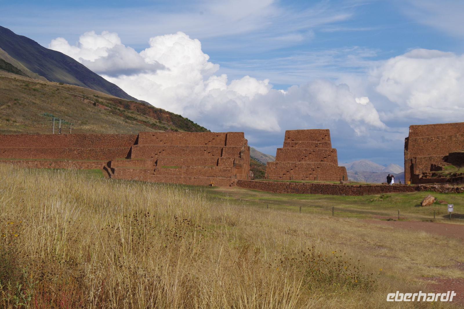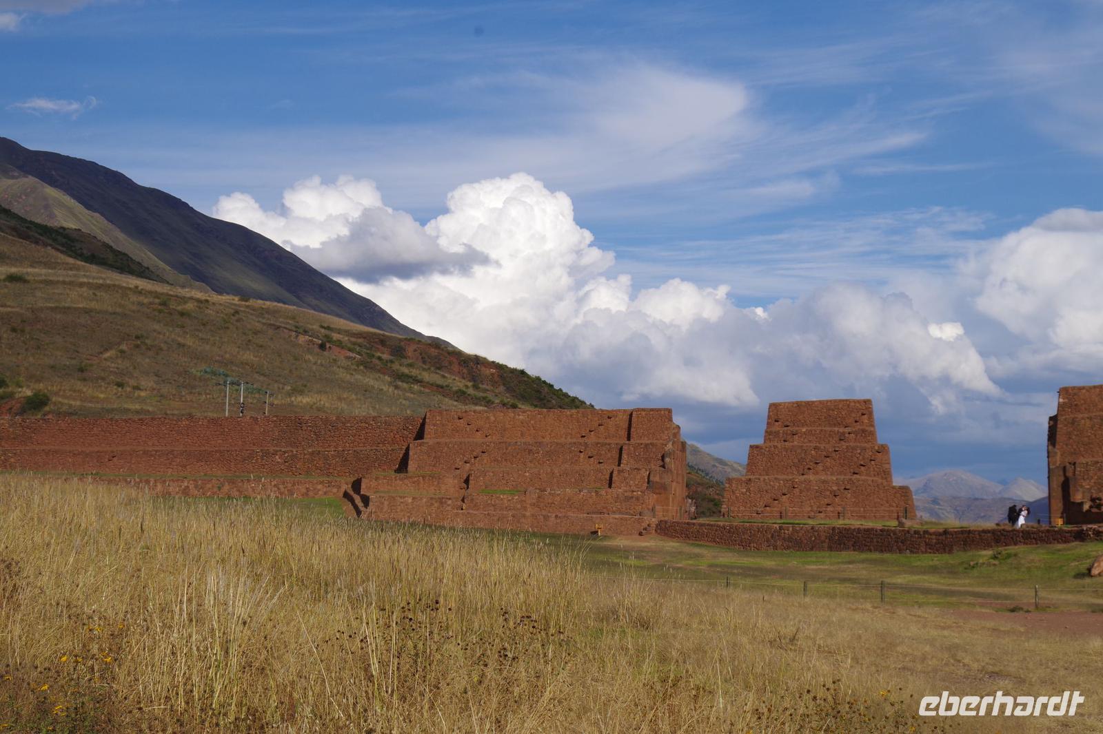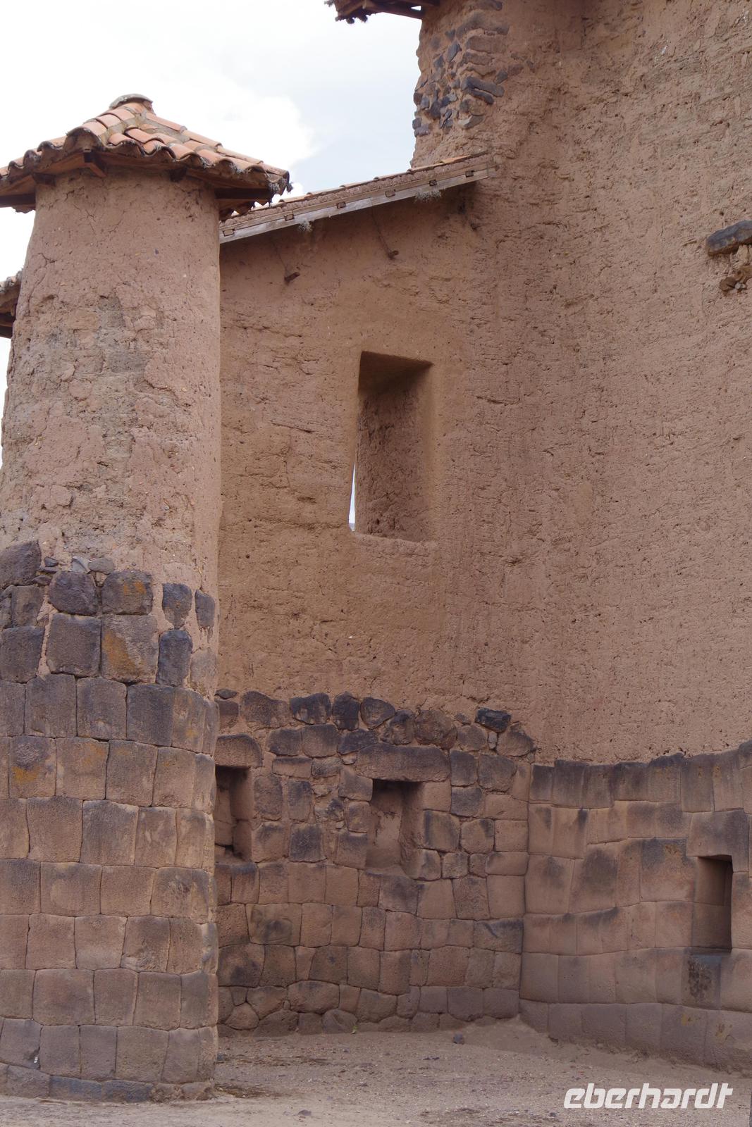 Es dauerte nicht lange und wir erreichten den Viracocha Tempel in Raqui. Dieser wurde einst zu Ehren des Inka Gottes Viracocha gebaut. Die Anlage ist sehr groß, weiter entfernt konnten wir die Mauern sehen. Es ist der einzige Inka-Tempel, bei dessen Bau auch Lehm eingesetzt wurde. Zugeordnet wird er jedoch der preinkaischen Kultur, der Tiwanka. Der Komplex besteht aus mehreren Bereichen, die vermutlich verschiedenen Funktionen, wie Verwaltung oder Lagerung, zugeordnet werden konnten.