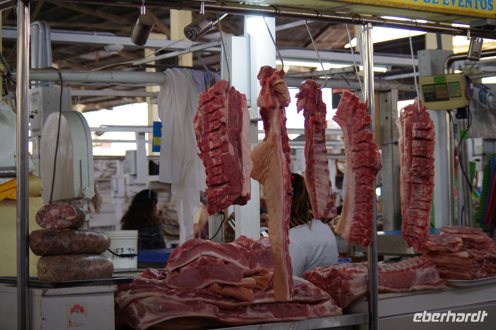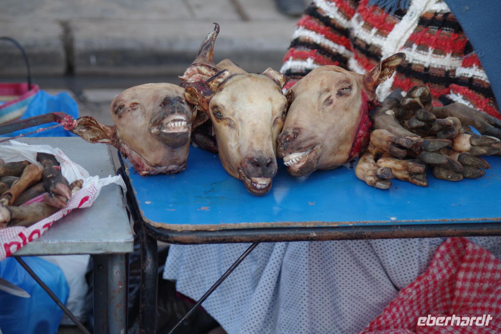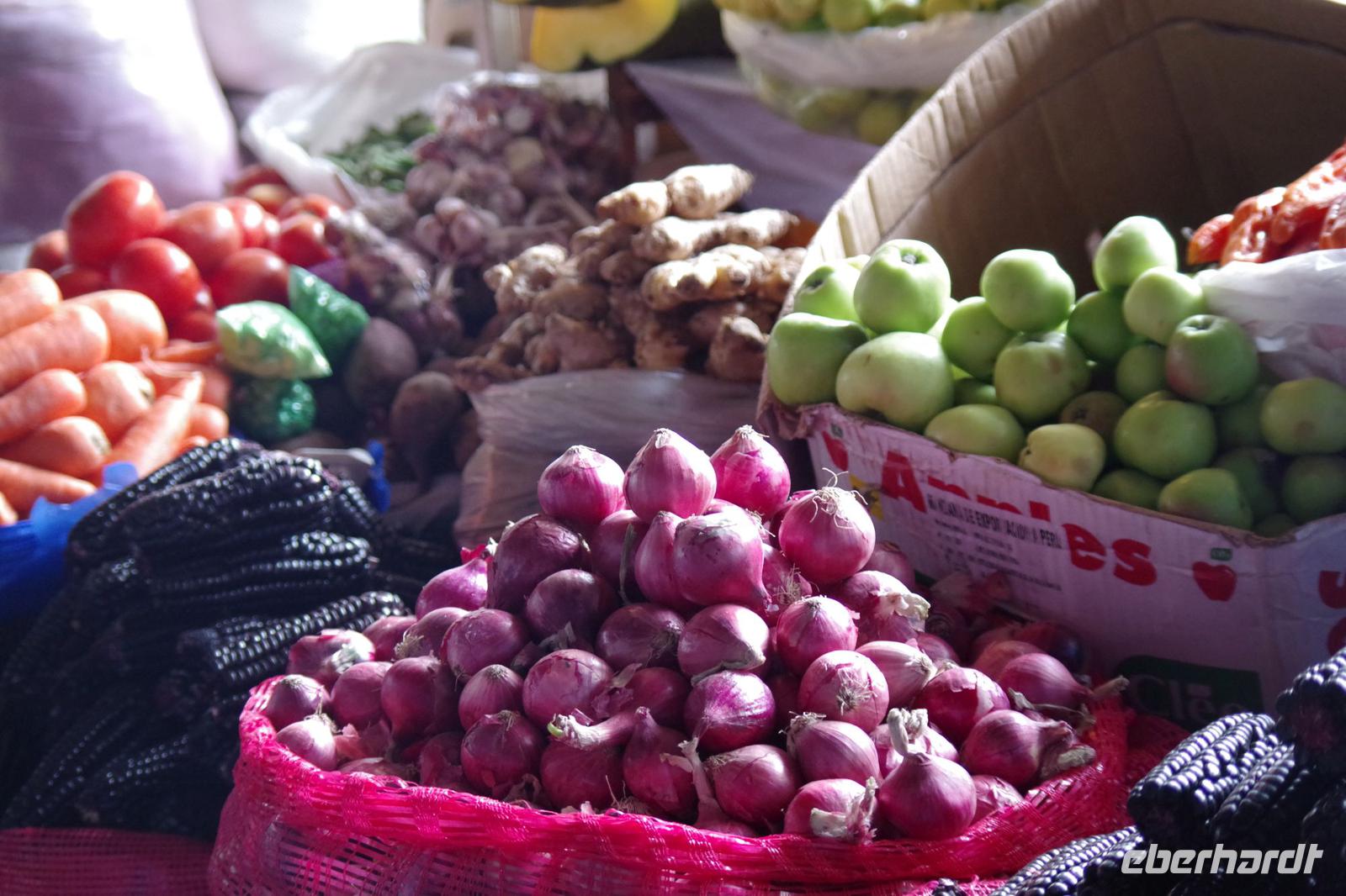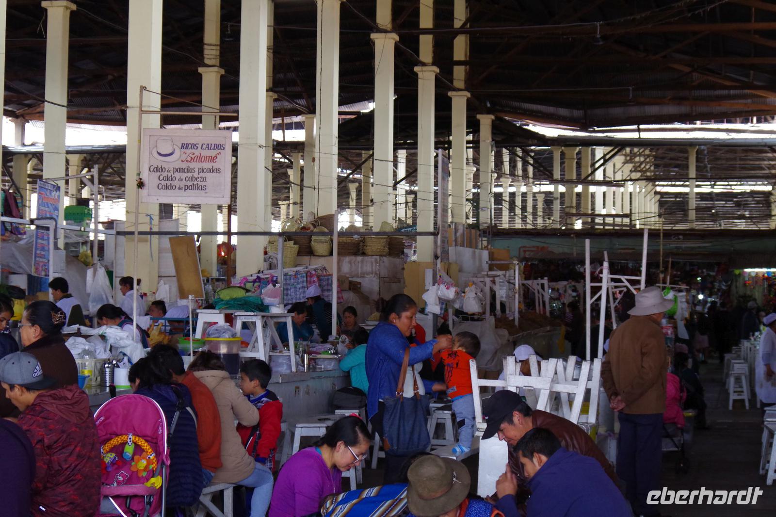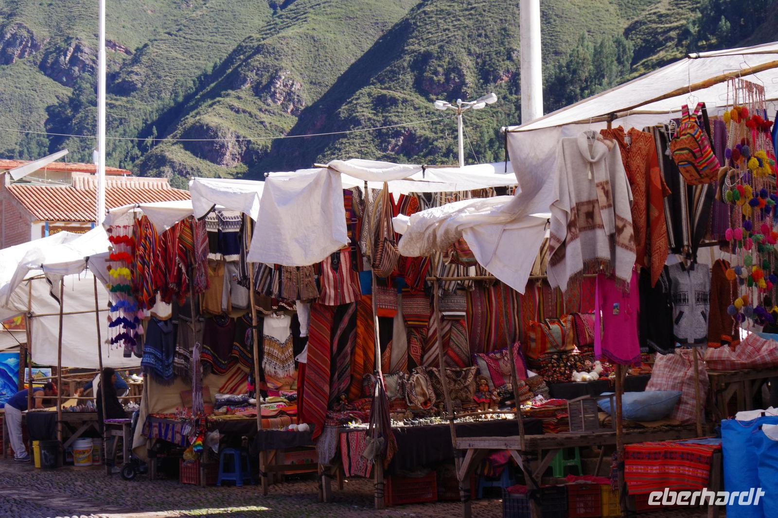 In Pisaq besuchten wir den Markt, über den uns Marco zunächst führte. Wie überall, gab es dort Schals, Pullover und Decken aus Alpakawolle sowie Ledermäppchen, Armbänder und vieles mehr. Die Markthalle dort, war natürlich etwas kleiner, als die in Cusco und nicht mit dem wilden Treiben dort zu vergleichen, dennoch interessant.