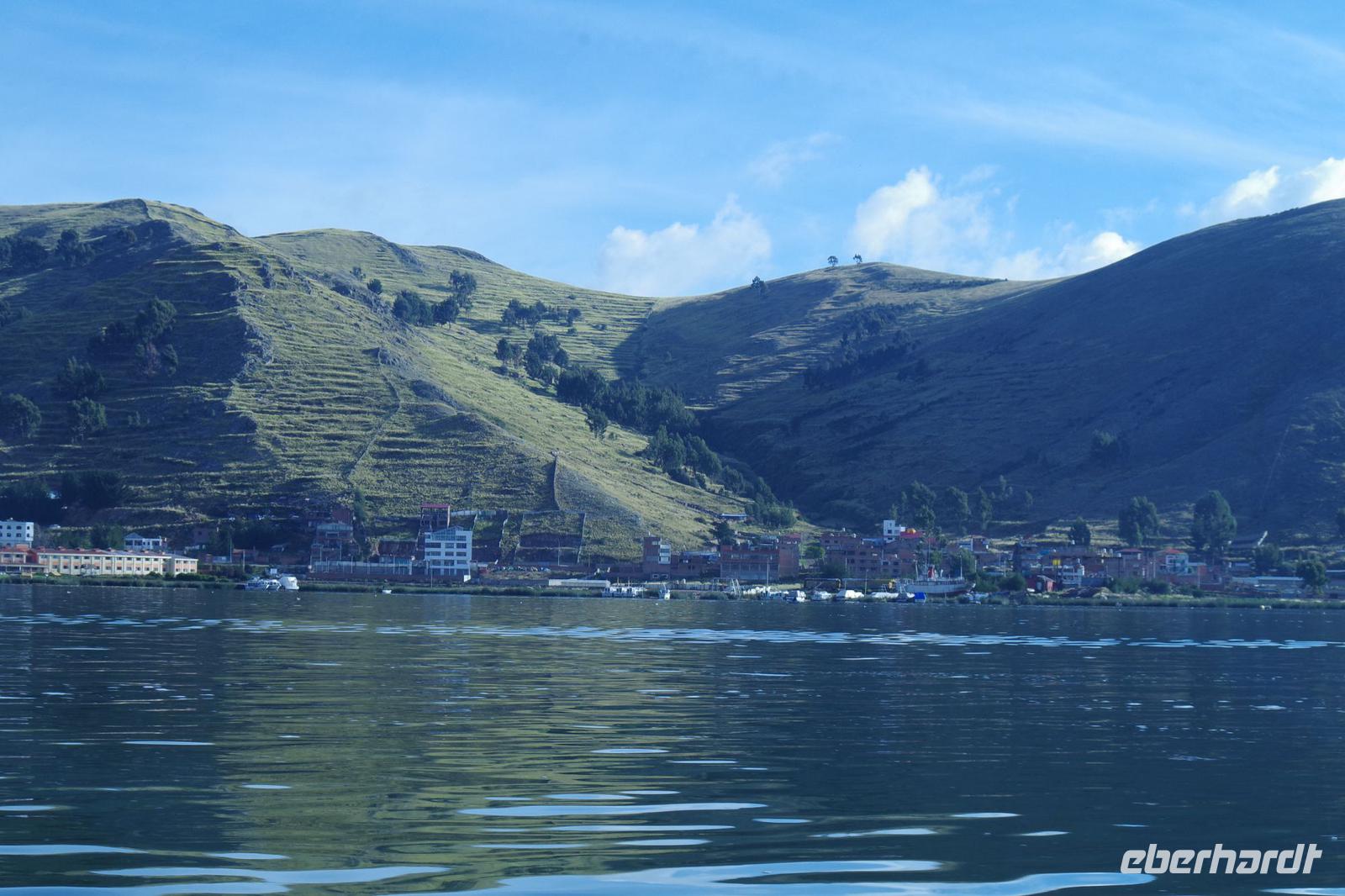 Wir erhielten zum Mittagessen ein frisch zubereitetes 3-Gänge-Menü und genossen dabei einen wunderbaren Blick auf den Titicacasee. Wir hatten einen Ausblick bis nach Bolivien.