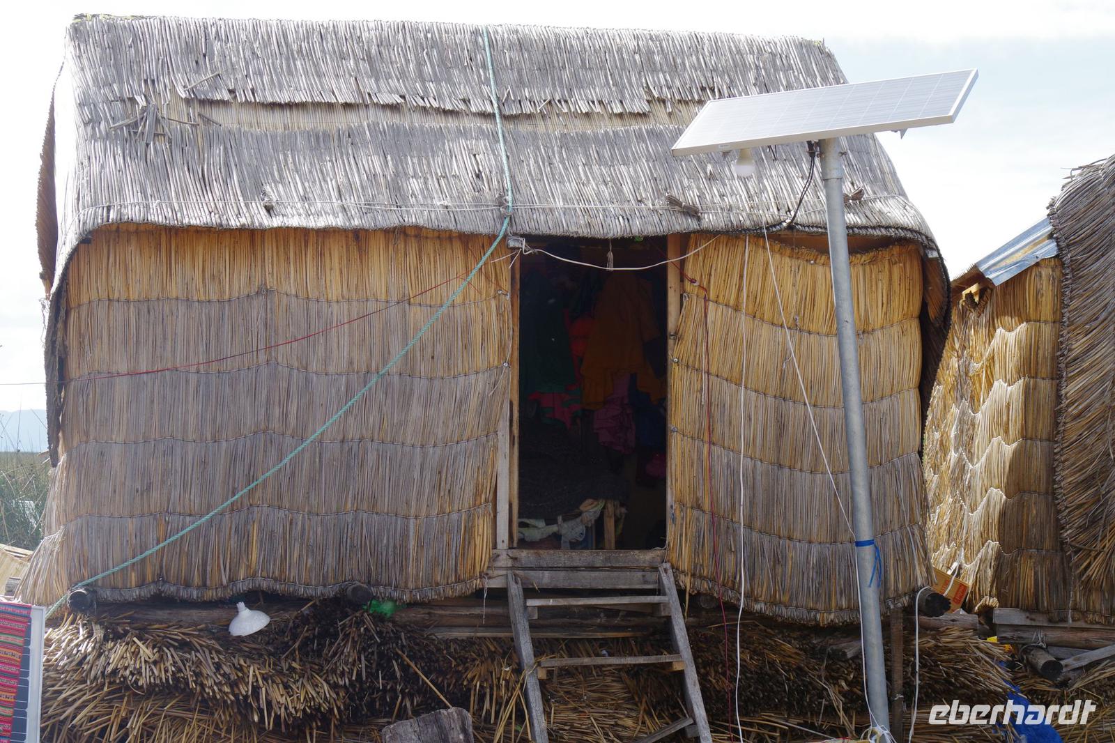 Auch heute begann unser Tag wieder früh. Um 7.00 Uhr machten wir uns auf den Weg zur Bootsanlegestelle und fuhren zunächst zu den Schilfinseln der Uros. Die Uros gibt es seit dem Jahr 1.500 vor Christus. Die Inseln wurden ursprünglich zum Schutz vor Feinden gebaut. Wir legten an einer Insel an und lernten deren Bewohner und ihre Lebensweise kennen. Marta, die Präsidentin der Insel, begrüßte uns herzlich. Wir saßen im "Wohnzimmer", welches sich natürlich im Freien befindet und Inka erklärt uns, gemeinsam mit Martas Unterstützung, wie die Inseln gebaut wurden. Es ist ein unglaublicher Aufwand, heute natürlich mit einigen Werkzeugen etwas geringer, aber dennoch sehr aufwendig. Einmal im Monat muss auch neues Schilf auf die komplette Insel aufgetragen werden. Wir durften uns auch die Häuser der Uros von innen anschauen. Seit vier Monaten verfügen sie sogar über ein Sanitärsystem. Es lebt immer eine Familie auf einer Insel und die Kinder gehen auch ganz normal zur Schule. Diese befindet sich auf einer anderen Insel. Auf einer Nachbarinsel konnten wir uns auch einen Stempel für den Reisepass abholen.