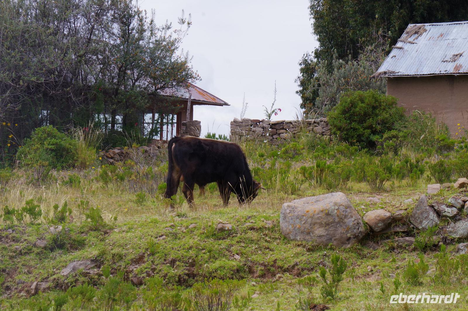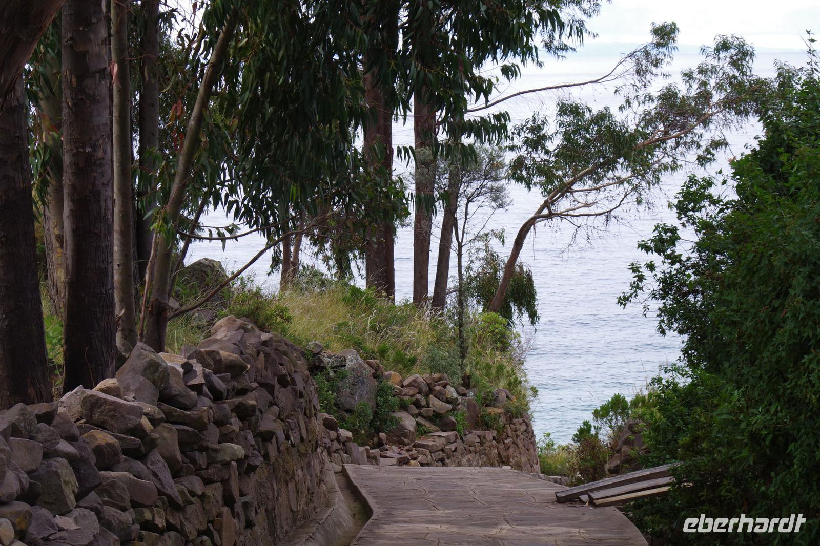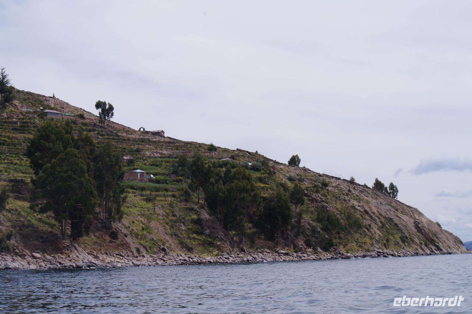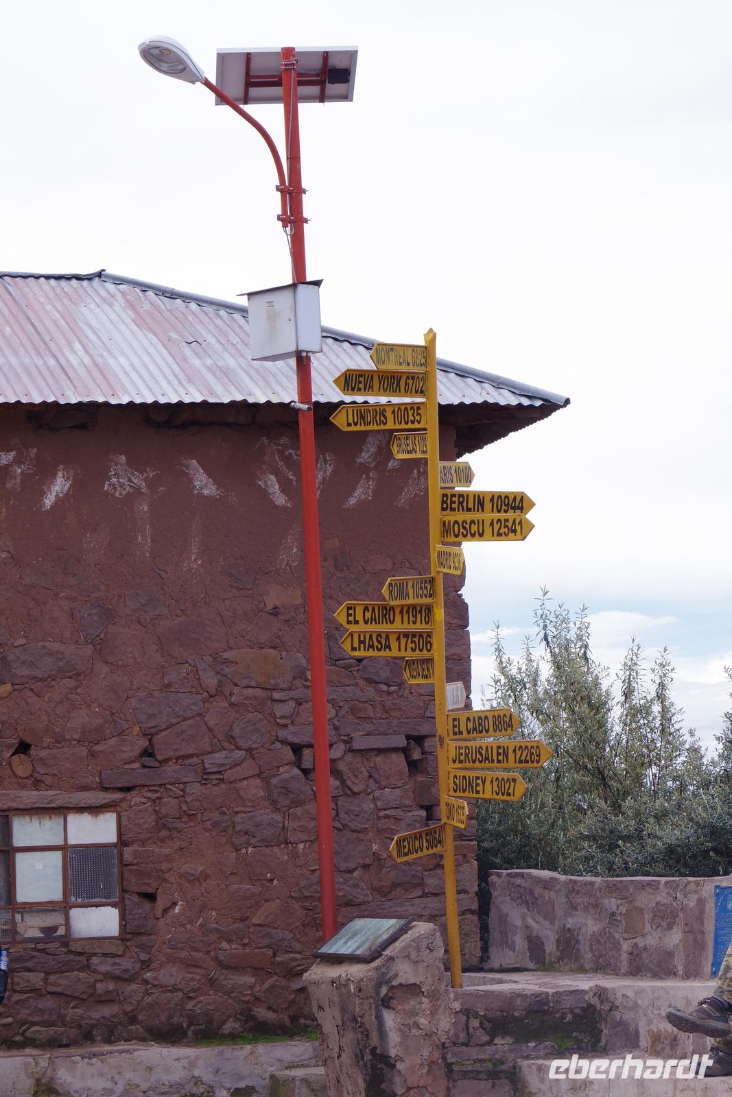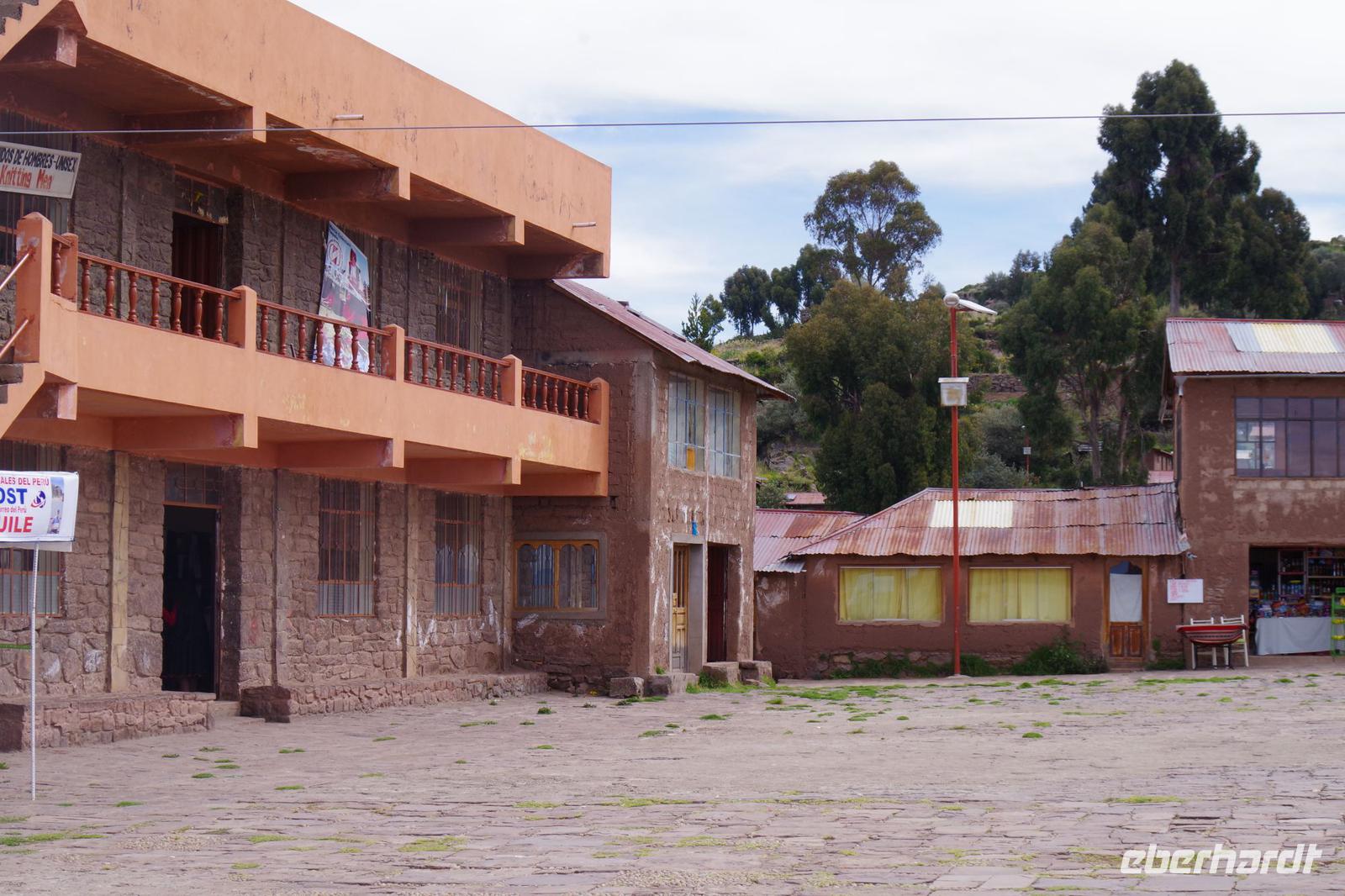 Wir fuhren dann etwas über zwei Stunden zur Taquile Insel. Dort lebt ein indigenes Volk in einer Kommune. Alles gehört allen und alle Bewohner haben etwa gleichviel Besitz. Jeder Bewohner ist auch verpflichtet, eine Arbeit auszuüben, dazu zählt hauptsächlich die Feldarbeit, aber auch die Web- oder Strickarbeit. In allen Restaurants werden die gleichen Speisen zu gleichen Preisen angeboten. Die quechuasprachigen Bewohner leben hauptsächlich vegetarisch. Sie bauen Quinoa, Mais, Kartoffeln und vieles mehr an. Es wirkt etwas, als wäre die Zeit stehen geblieben, denn auf der Insel gibt es keine Fahrzeuge, keine Lasttiere und auch keinen Strom.