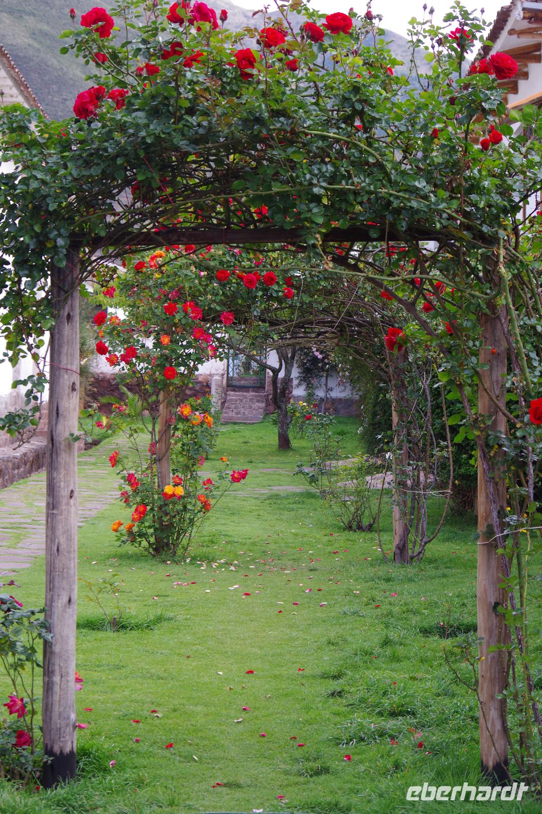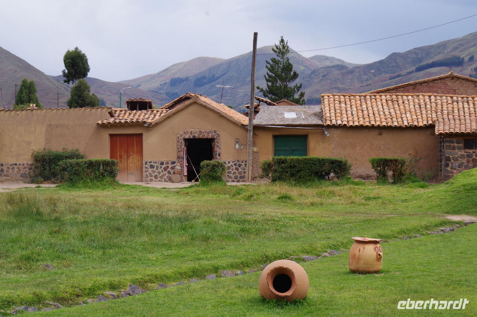 Mit unserem Bus fuhren wir dann nach Urubamba. Dort erwartete uns im Innenhof des Hauses einer einheimischen Familie ein frisch zubereitetes Mittagessen. Nach Vorspeisen, wie Guacamole, warmen Maiskolben und Andenkäse servierte man uns eine Quinoa Suppe, Lomo Saltado und süß eingelegte Tomate Pepino. Sehr gesättigt machten wir uns auf den Weg zu unserem Hotel. Der restliche Nachmittag konnte individuell auf der schönen Anlage zum Lesen oder Ausruhen genutzt. Zu Abend aßen wir im Restaurant unsers Hotels.