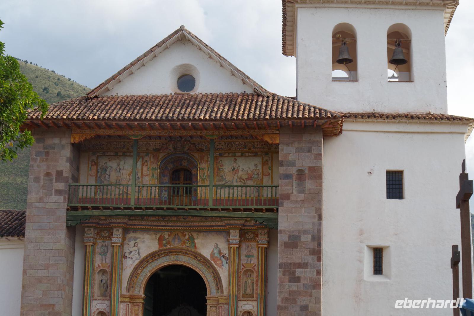 Nach einer beeindruckenden Fahrt durch die nun grünen Anden erreichten wir die St. Peter Kirche in Andahuaylillas. Diese wird auch als sixtinsche Kapelle der Anden bezeichnet, zu Recht. Wir waren sehr beeindruckt, wie prunkvoll sie gestaltet ist und natürlich auch von den Wand- und Deckenfresken. Die großen Bilderrahmen sind ebenfalls unglaublich prunkvoll.