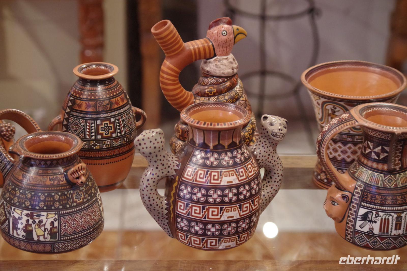 Angekommen in dem Museum, erfuhren wir eine Menge über die Paracas- und Nazcakultur. Wir sahen sehr viele Tücher und Keramikgefäße. Diese wurden damals mit in die Gräber gelegt, um sie den Göttern zukommen zu lassen. Durch die Hitze, Trockenheit und das Salz im Boden wurde alles so unglaublich gut erhalten gefunden. Außerdem konnten wir verschiedene Mumien, aber auch das interessante Knotensystem, die Schriftart der Inka, betrachten.