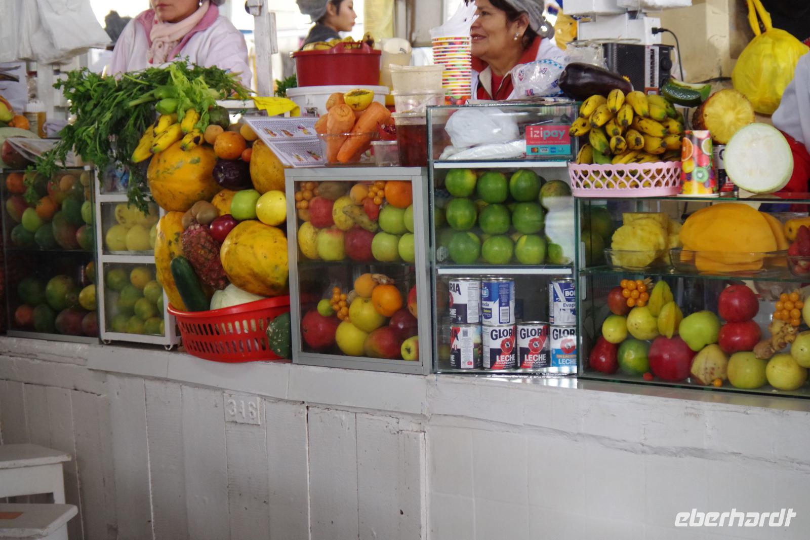 Paula erklärte uns viel zu den verschiedenen Früchten, wie zum Beispiel die Arequipa Papaya, die anders als eine normale Papaya aussieht. Zum Verhalten in der Höhe erhielten wir auch Informationen und deckten und gleich mit verschiedenen Coca Produkten ein.