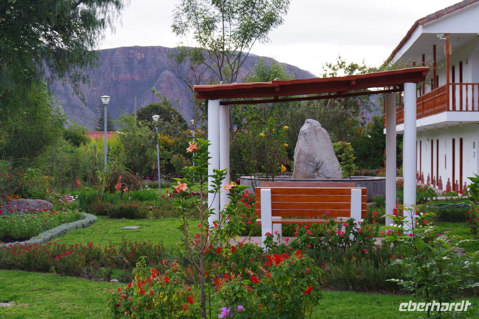 Am Abend erreichten wir dann unser Hotel in Nasca. Eine sehr schöne Anlage, in der zu unserer Überraschung ein Lama, ein Pferd und zwei Pfaue frei herumlaufen.