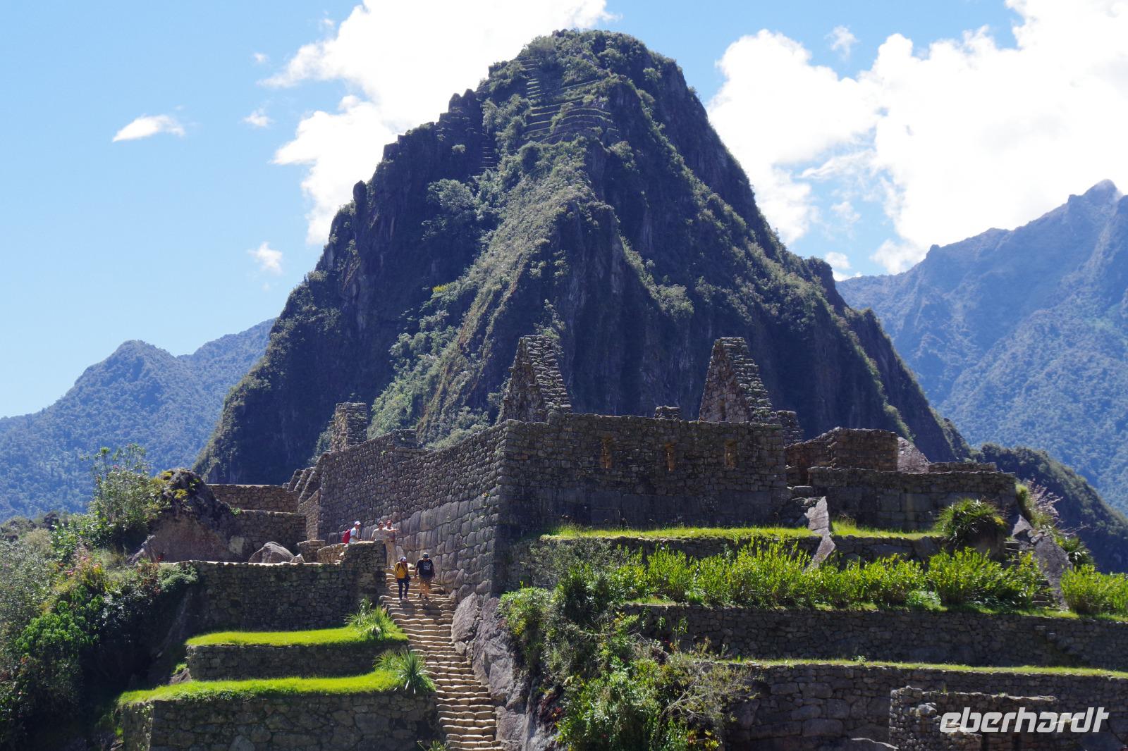 Dort angekommen, fuhren wir mit einem öffentlichen Bus zum Machu Picchu. Wir hatten großes Glück mit dem Wetter, bei strahlendem Sonnenschein war kaum eine Wolke am Himmel zu entdecken.