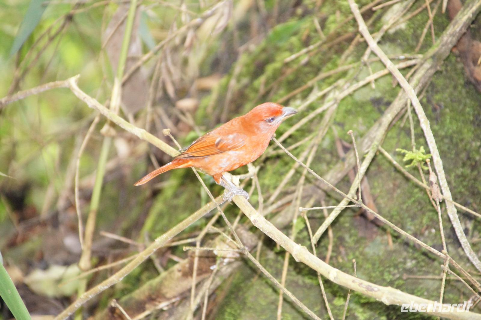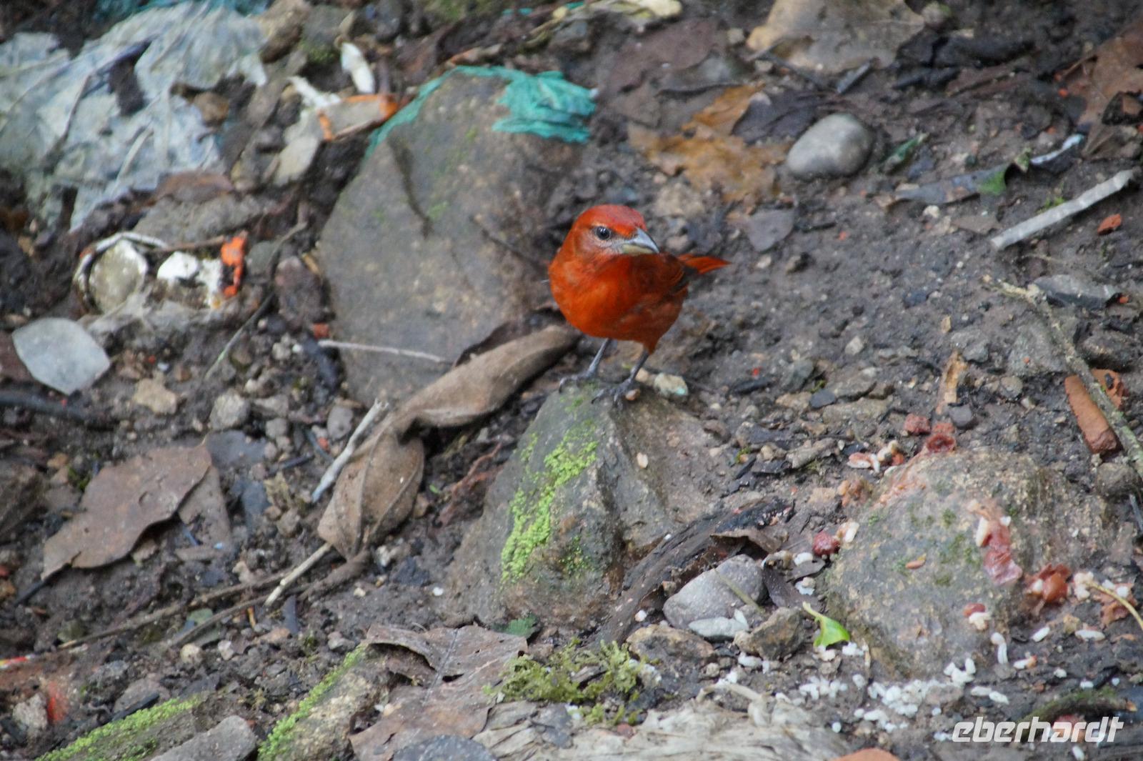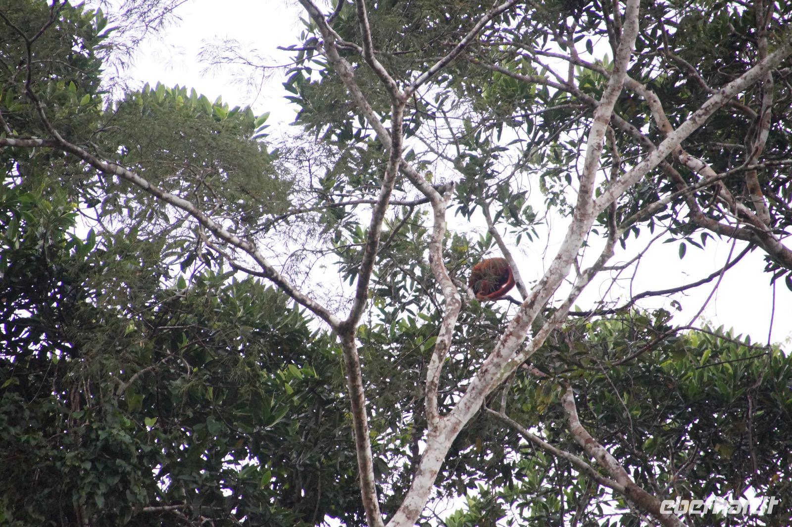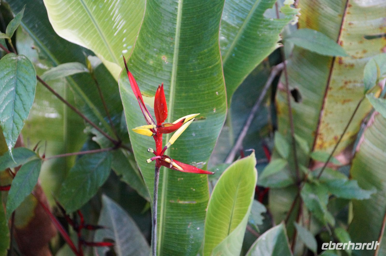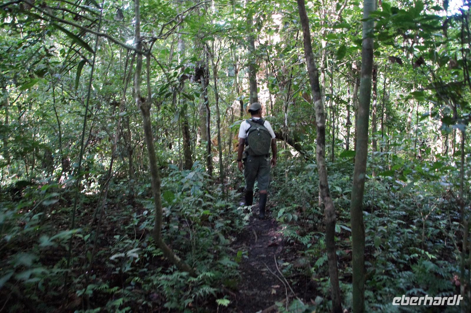 Wir bewegen uns erst einmal nur auf dem hacienda-eigenen Gelände, da gibt es bereits genug zu sehen. So ziemlich als erstes begegnet uns eine Horde roter Brüllaffen, da sind wir noch nicht einmal vom Hauptweg runter in einen der Trampelpfade abgebogen, die man nur begleitet gehen darf. Die Affen sind aber ganz friedlich und brüllen nicht. Das machen sie nur morgens, wenn man sich am liebsten die Decke über den Kopf ziehen will.