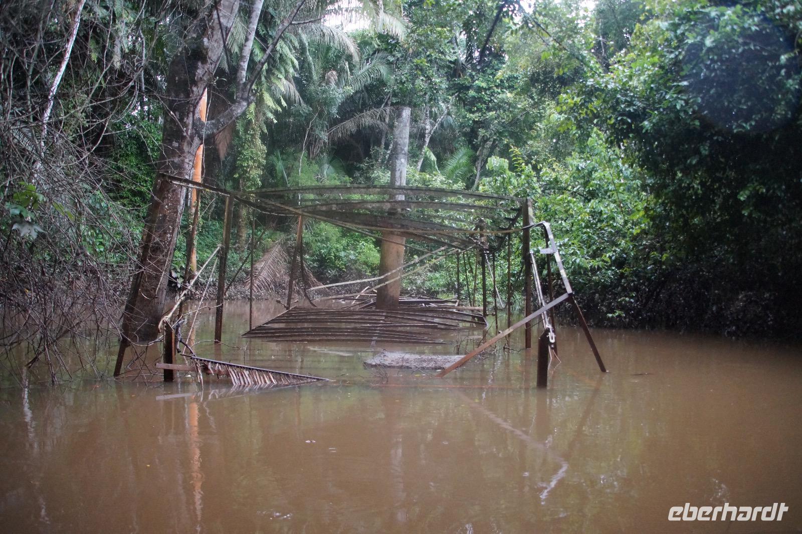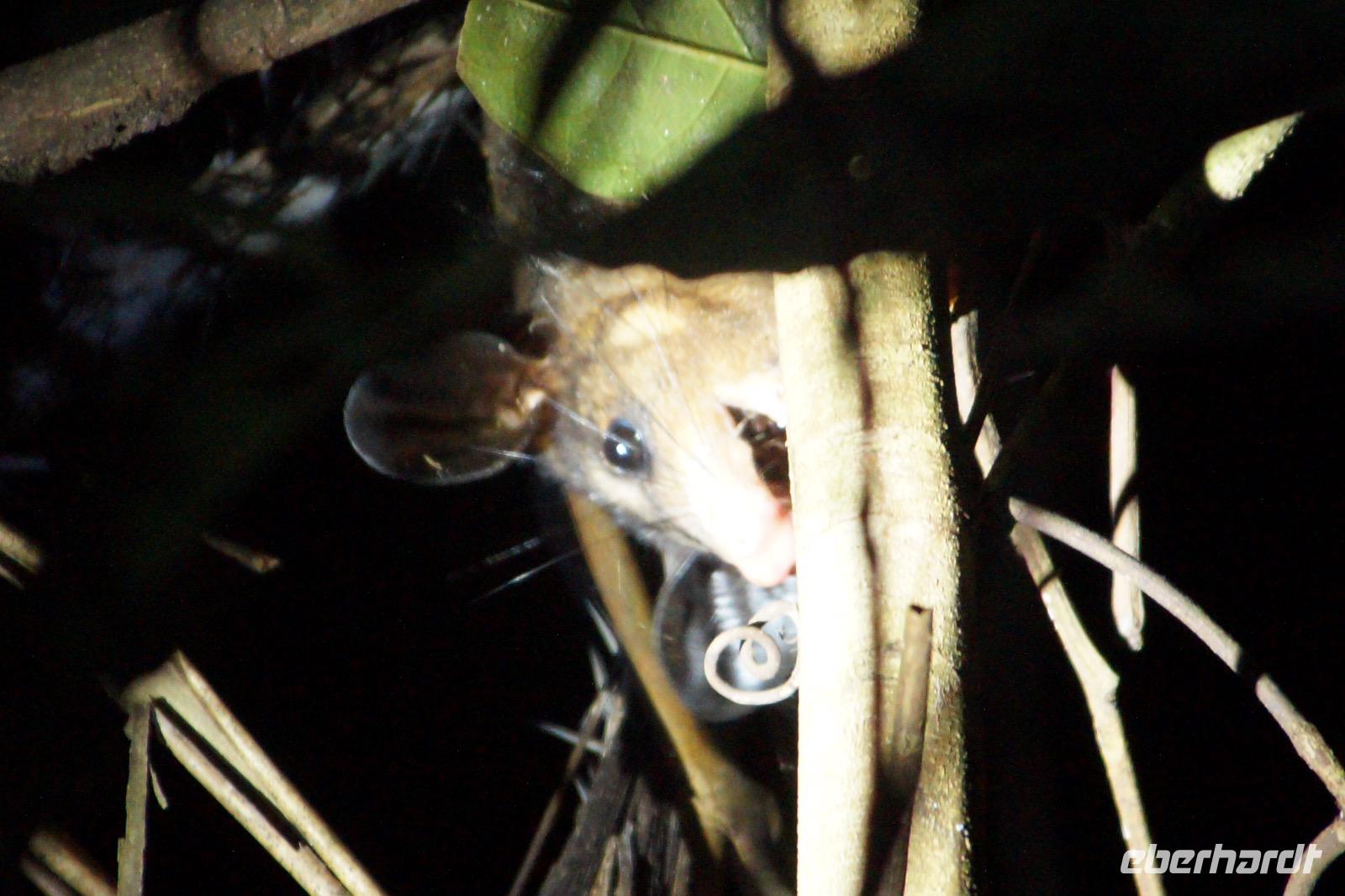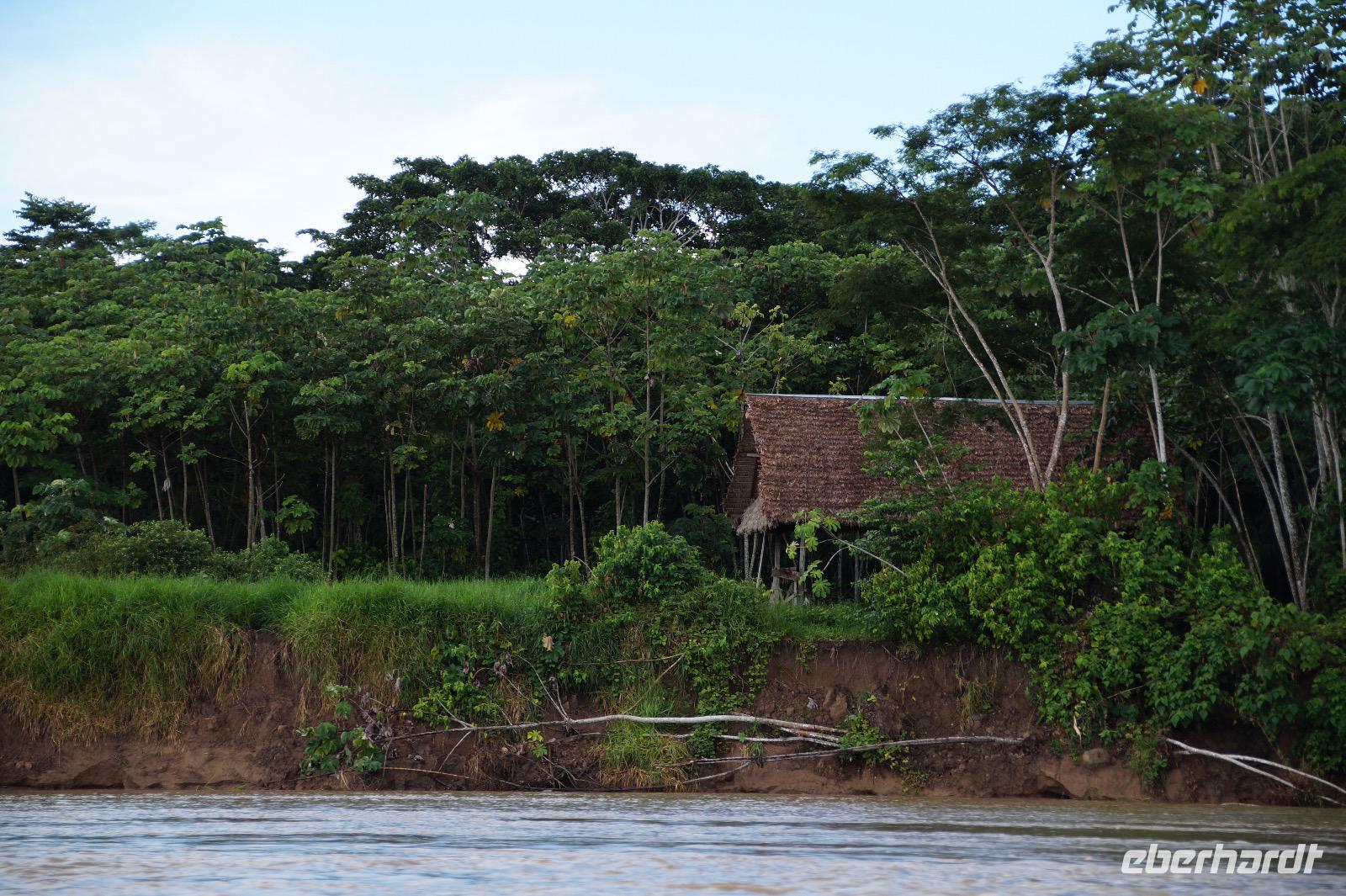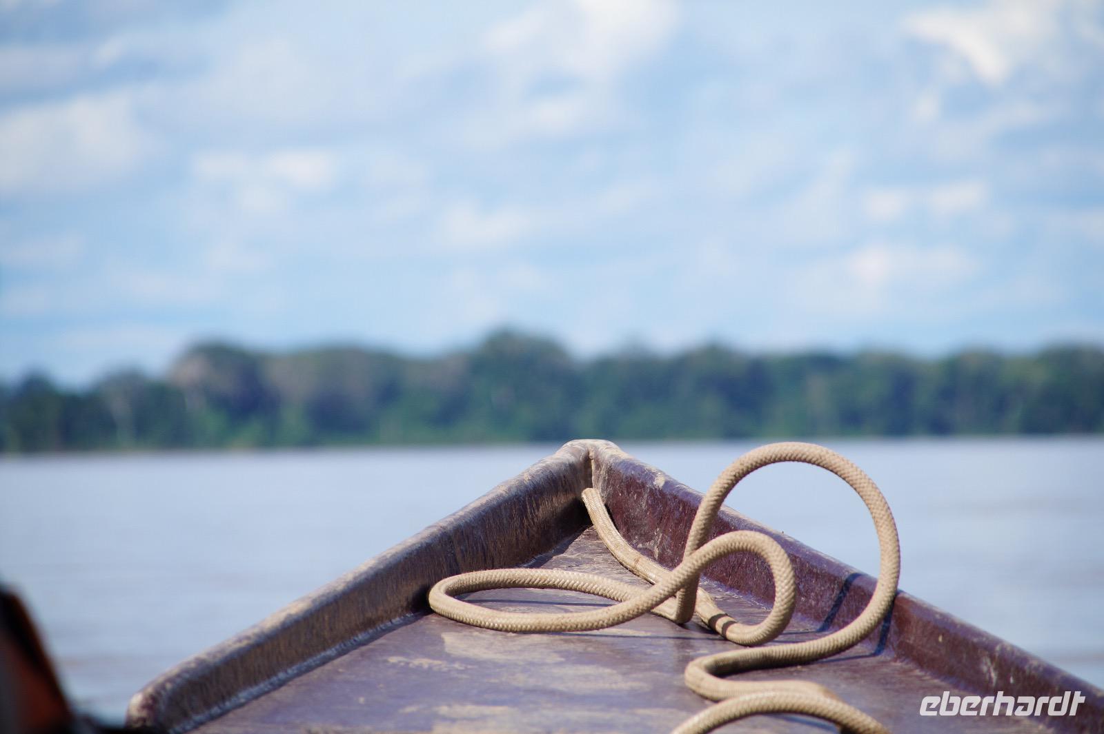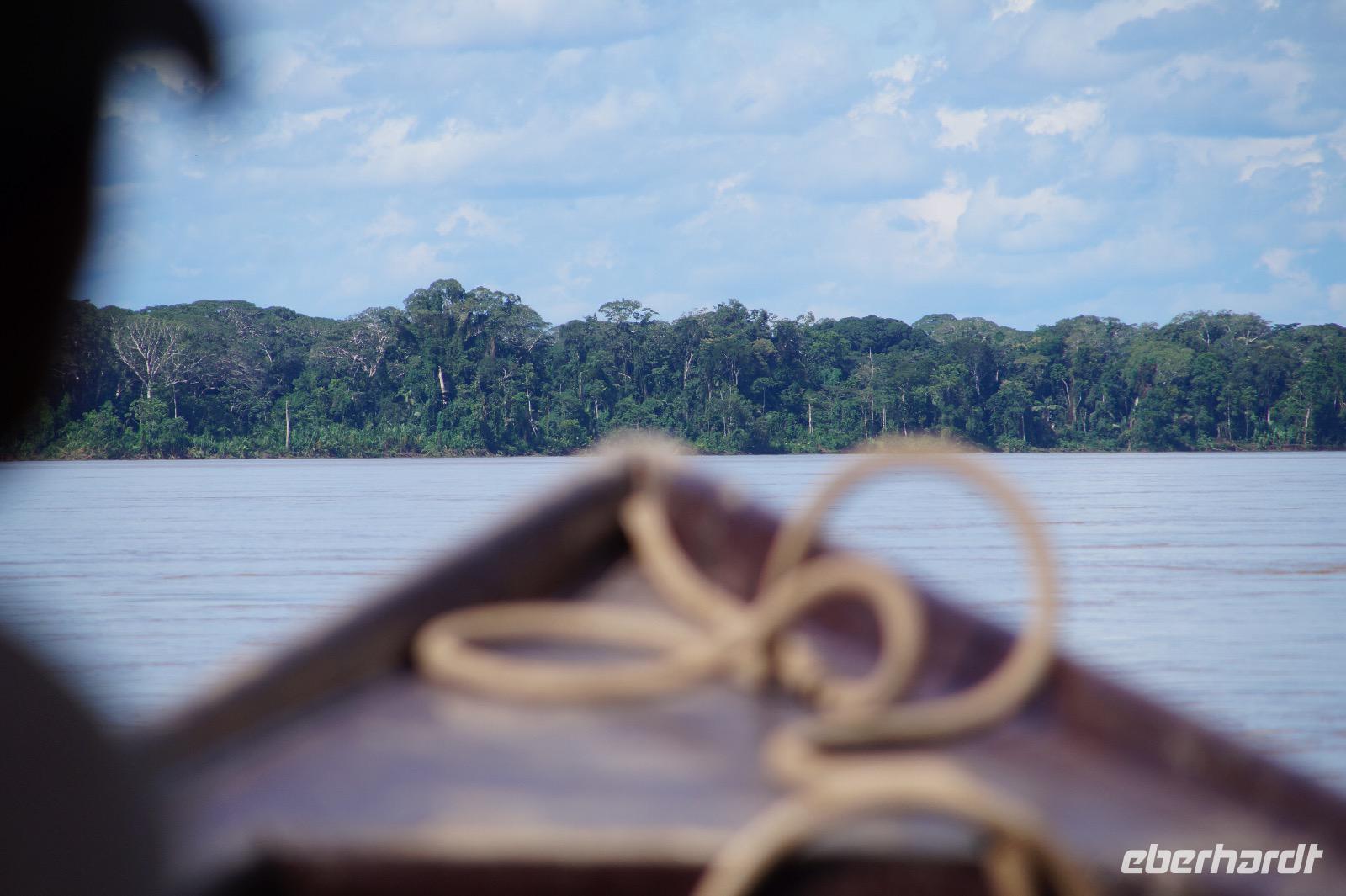 Nach Sonnenuntergang treffen wir uns wieder, um auf dem Madre de Dios nach Tieren Ausschau zu halten. Viel Glück haben wir nicht, wir sehen lediglich ein Wasserschwein und ein Flughund fliegt kurz durch den Schein von Mirkos Taschenlampe. Als dann auch noch der Motor Probleme macht - der Madre de Dios führt viel Treibholz mit sich, davon ist etwas in den Motor geraten - müssen wir am Ufer festmachen und uns abholen lassen.