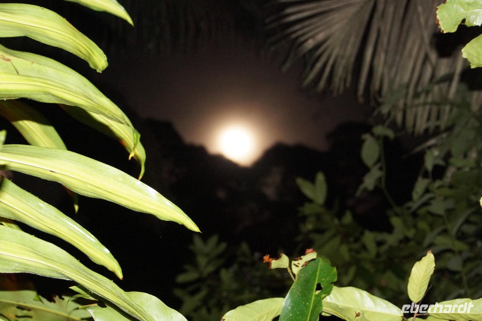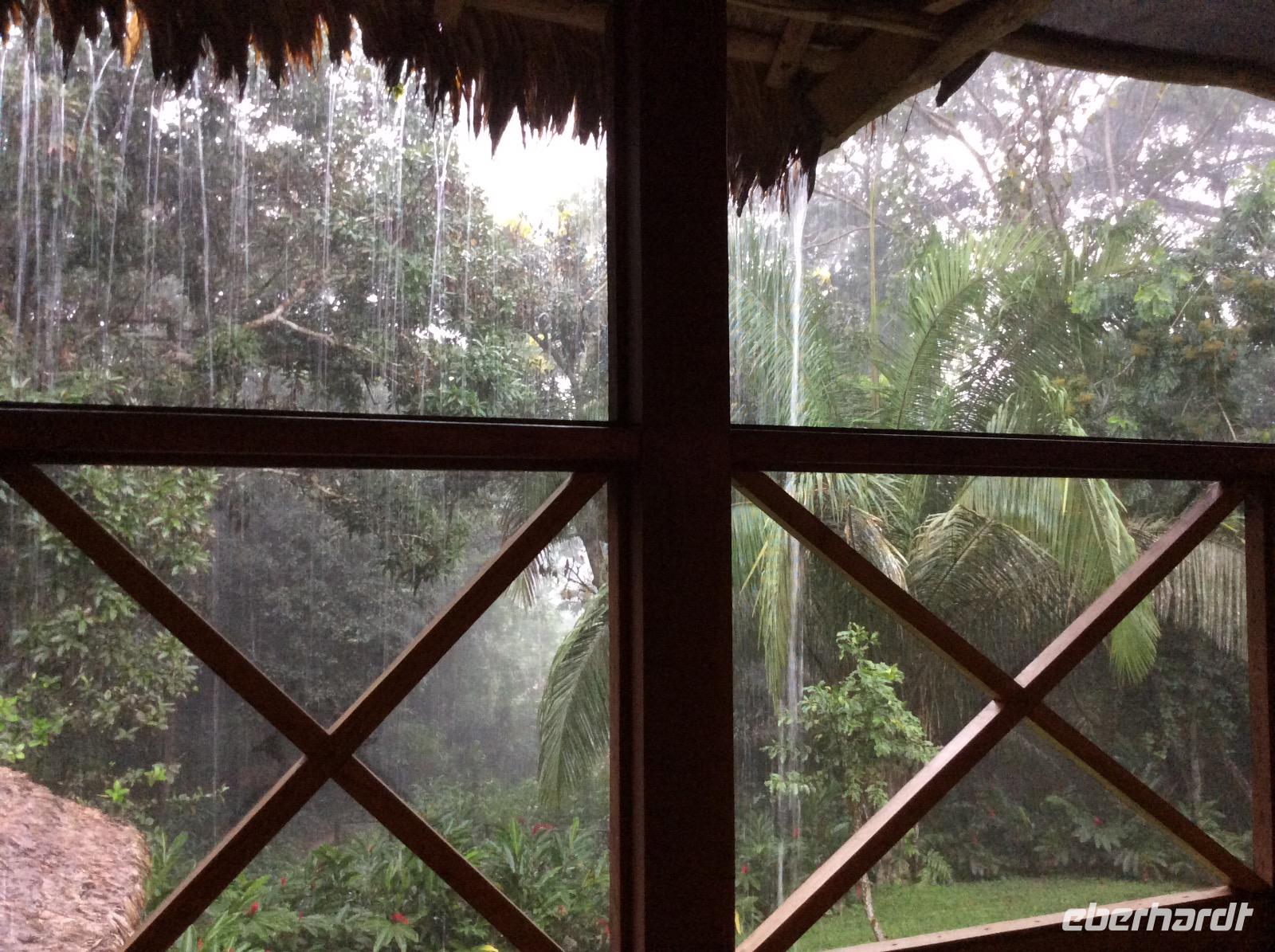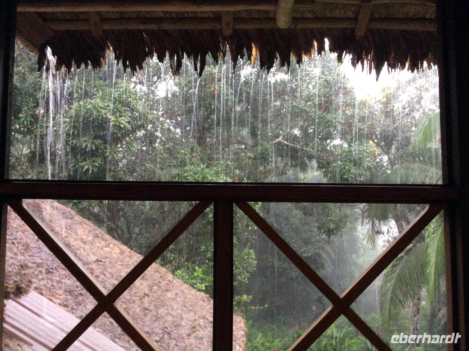 Als wir in unsere Betten steigen, bemerken wir alle, dass diese etwas Klamm sind. Wen wundert das bei 80 - 100 % Luftfeuchtigkeit? Interessanterweise empfindet das aber niemand als besonders unangenehm. Es hat sogar einen angenehmen, weil leicht kühlenden Effekt.