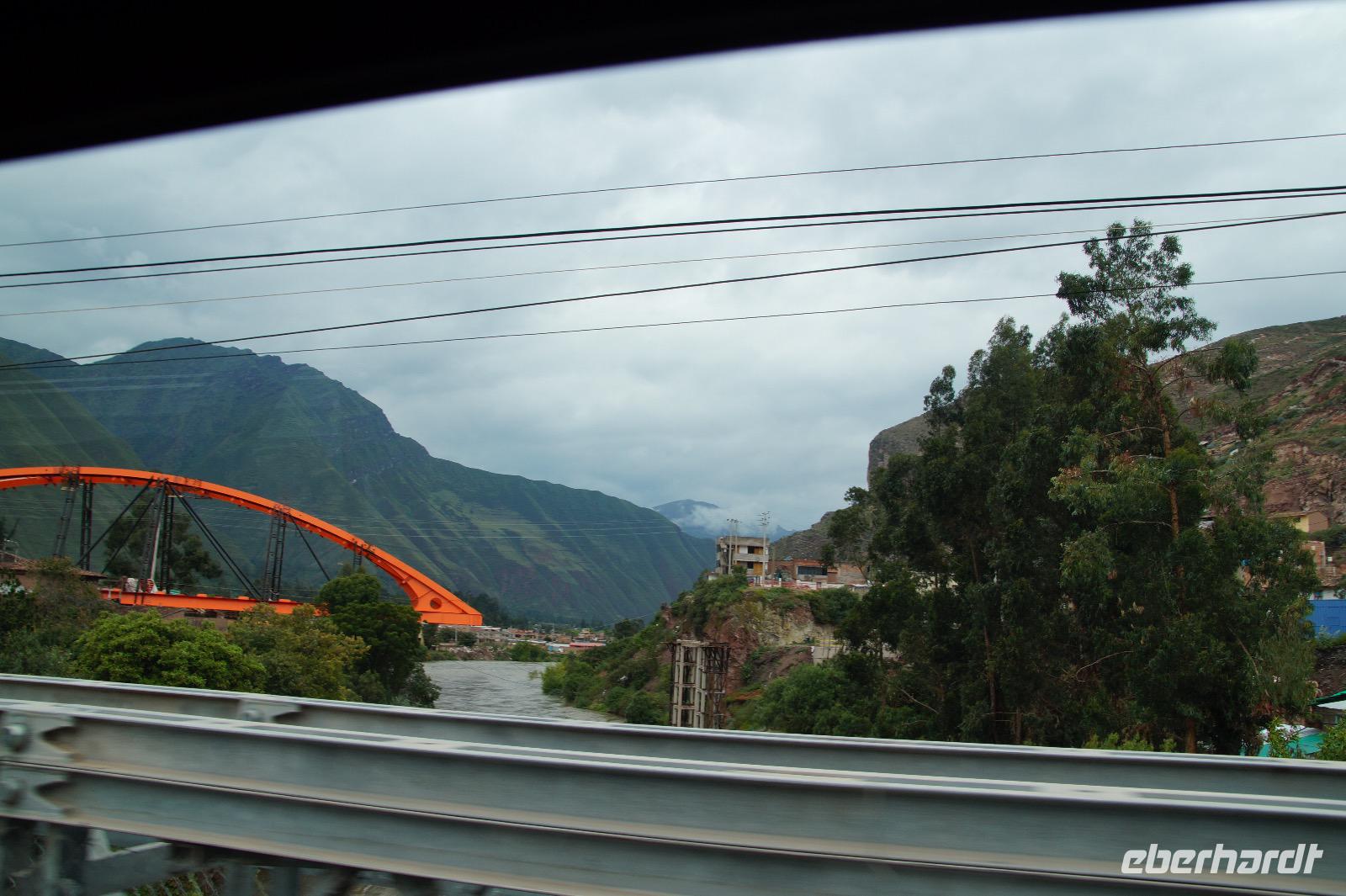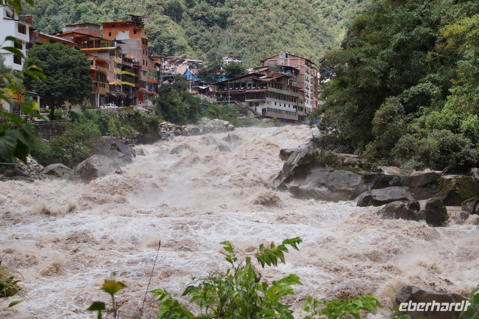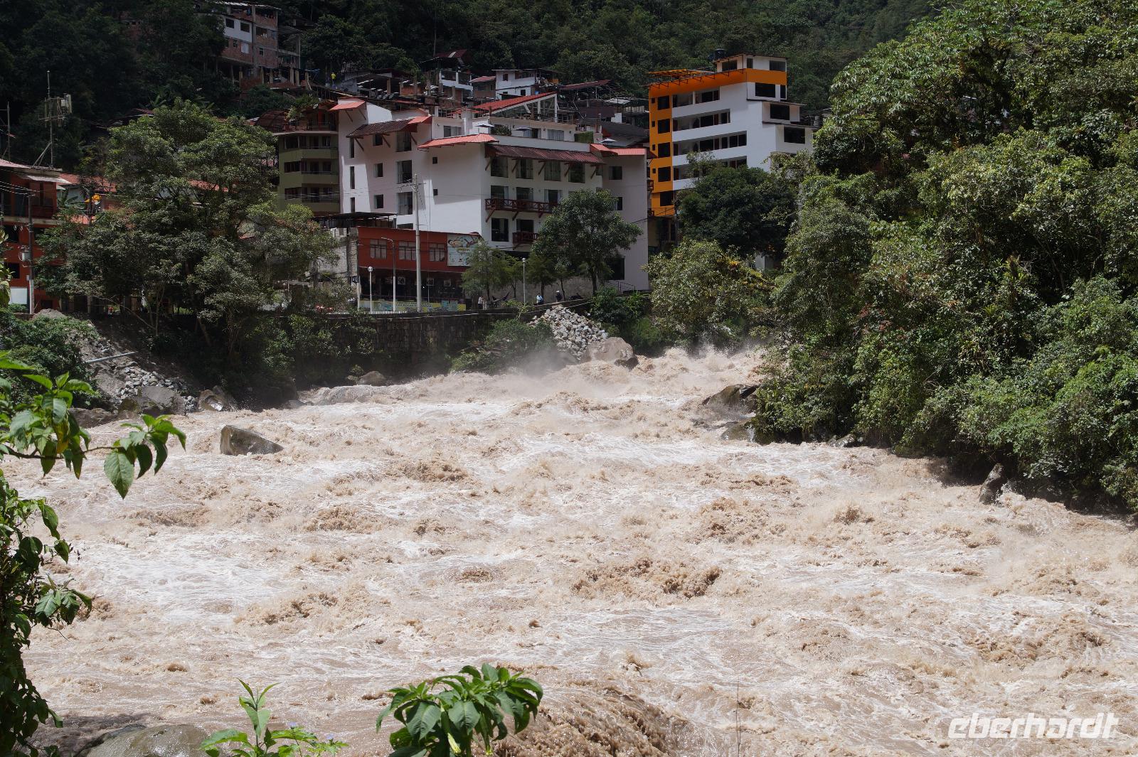 Im Anschluss sehen wir das Handwerkerviertel, dann gehen wir durch die "Kühlschränke", Lagerhäuser, die am Berghang gebaut sind und in denen es kühler als außen ist, Richtung Ausgang. Mijaíl bringt uns noch in unser Hotel unten am rauschenden Urubamba-Fluss der hier wirklich mit Macht durch das enge Tal drängt, er kocht geradezu, bevor sie mit dem Zug zurück nach Ollantaytambo fährt.