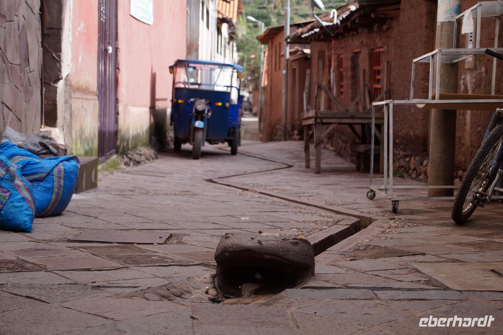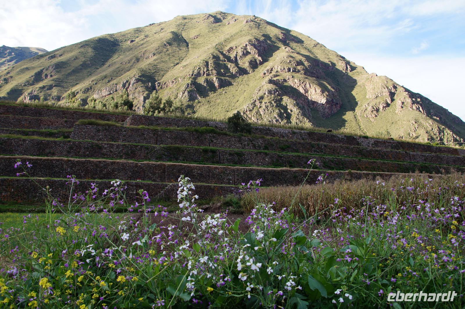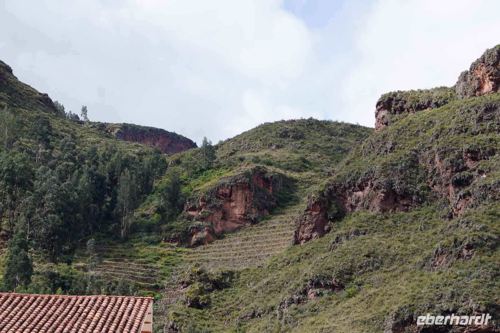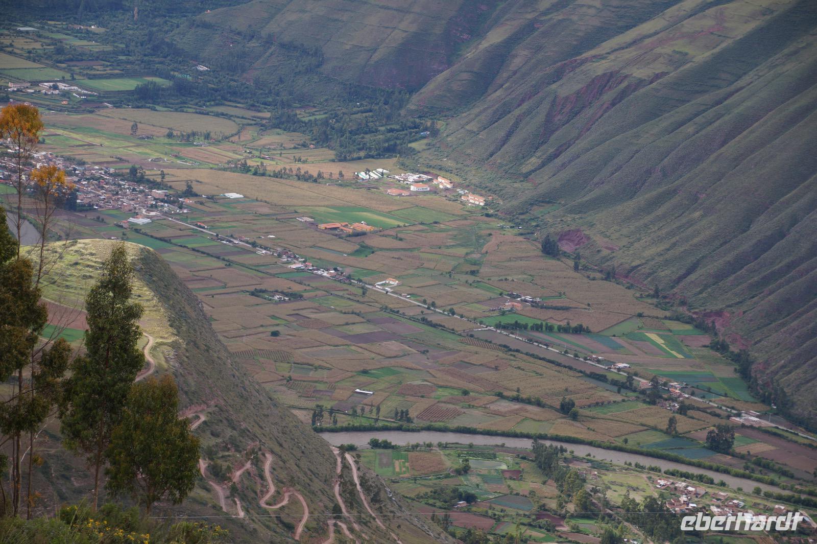 Im Anschluss sehen wir das Handwerkerviertel, dann gehen wir durch die "Kühlschränke", Lagerhäuser, die am Berghang gebaut sind und in denen es kühler als außen ist, Richtung Ausgang. Mijaíl bringt uns noch in unser Hotel unten am rauschenden Urubamba-Fluss der hier wirklich mit Macht durch das enge Tal drängt, er kocht geradezu, bevor sie mit dem Zug zurück nach Ollantaytambo fährt.