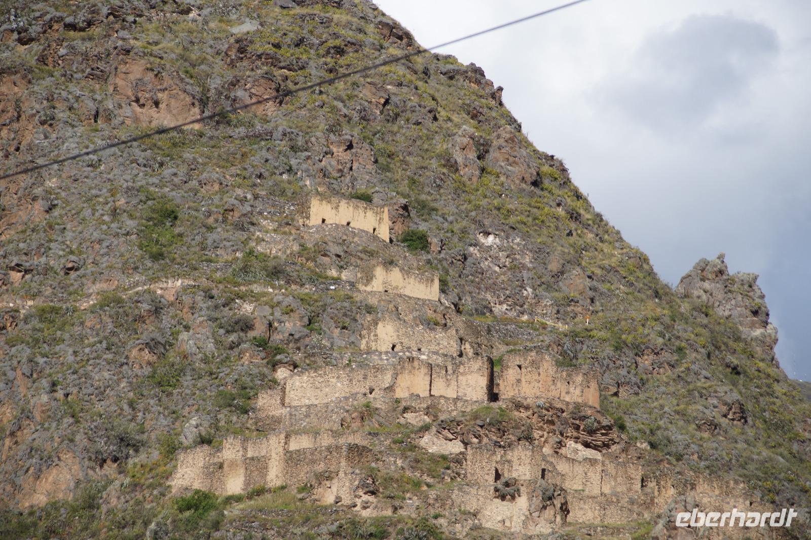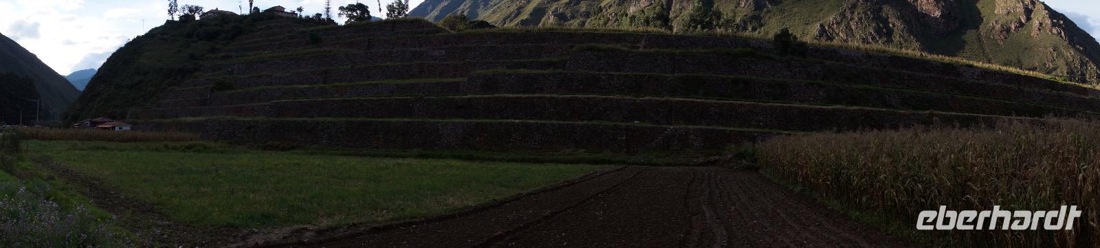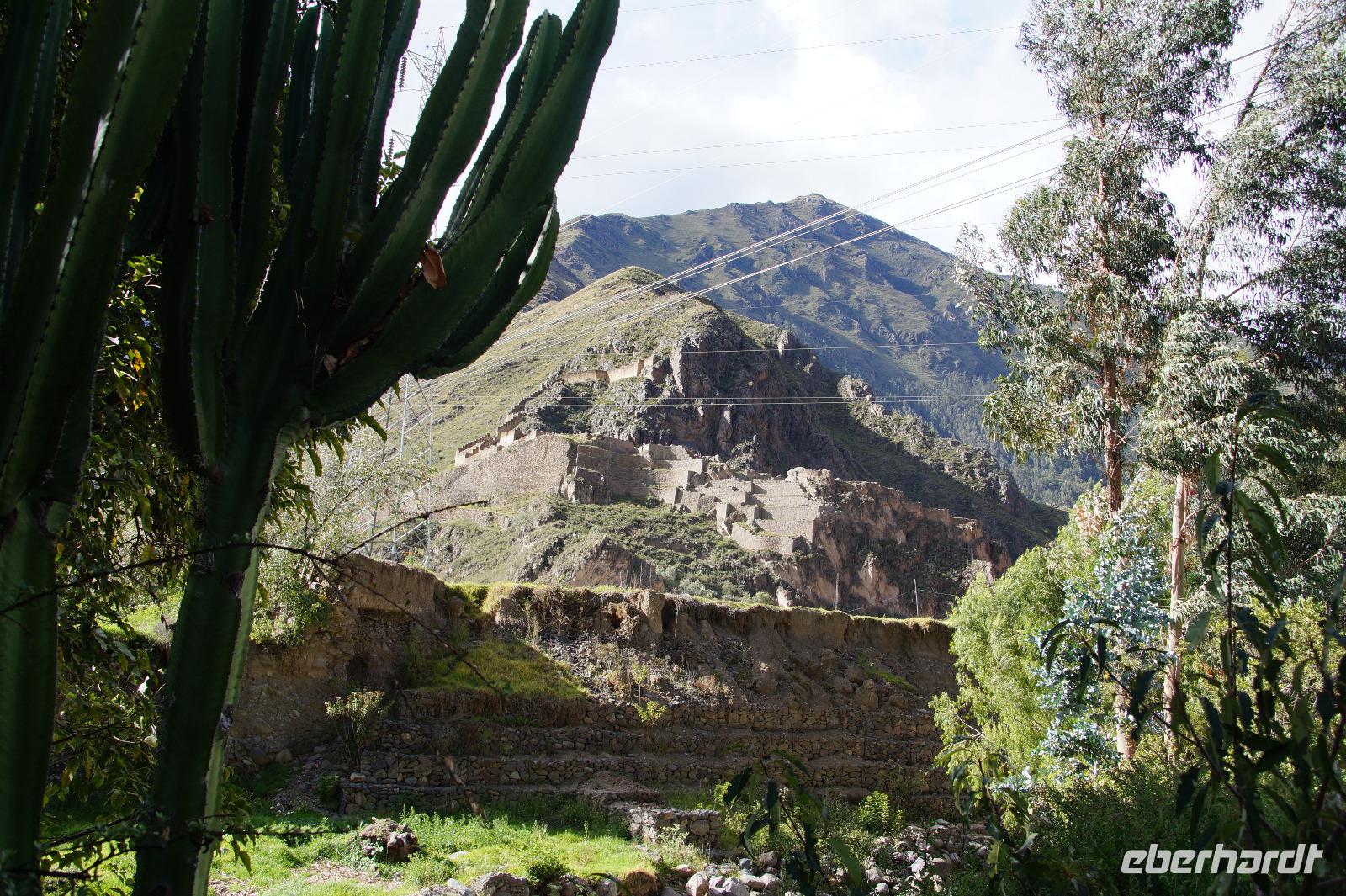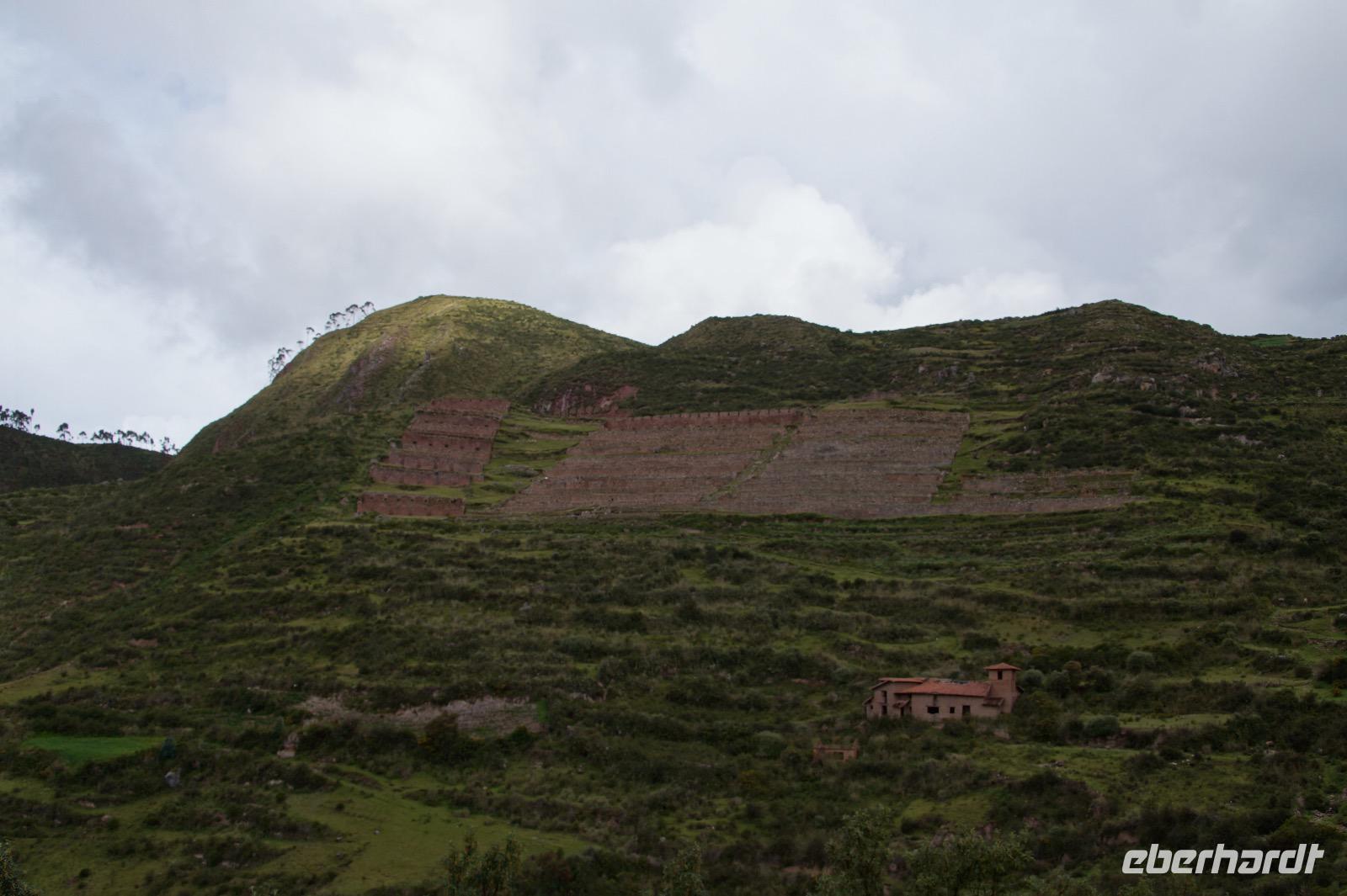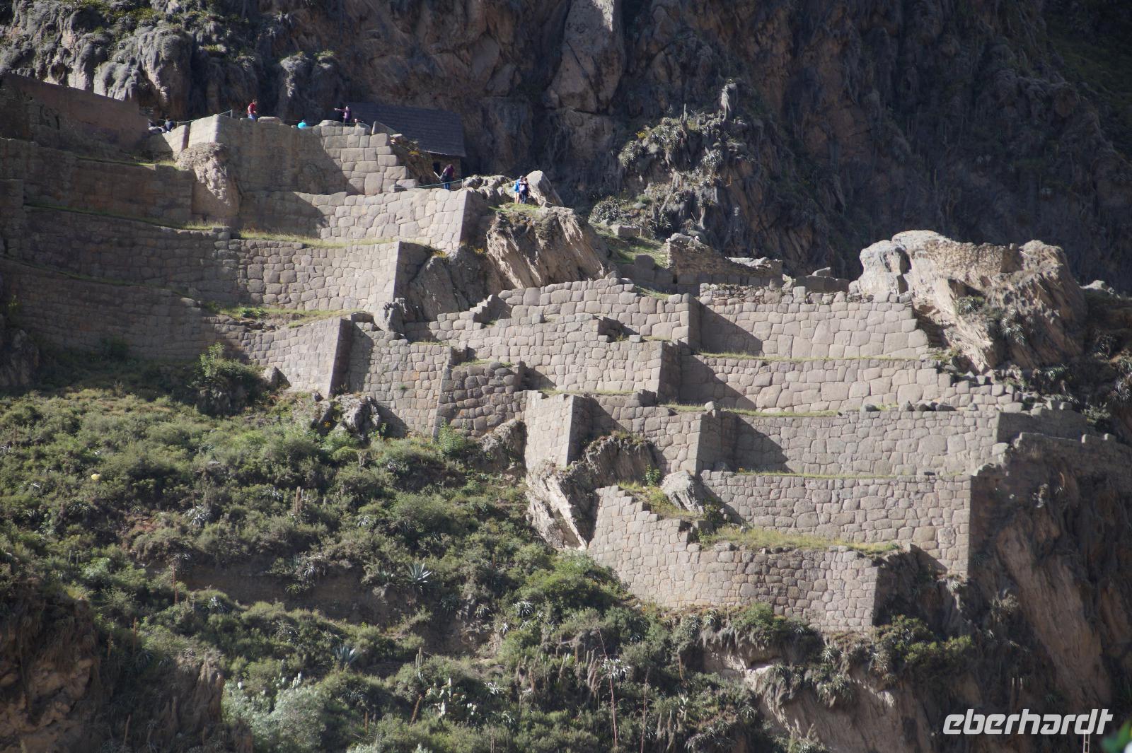 Corinna und ich haben noch nicht genug von Steinen und wandern dem Bus voraus die Sraße hoch (etwa 700 m), um wenigstens von außen die Inkafestung Ollantaytambo zu fotografieren. Wir müssen sogar noch ein Minütchen auf den Bus warten.