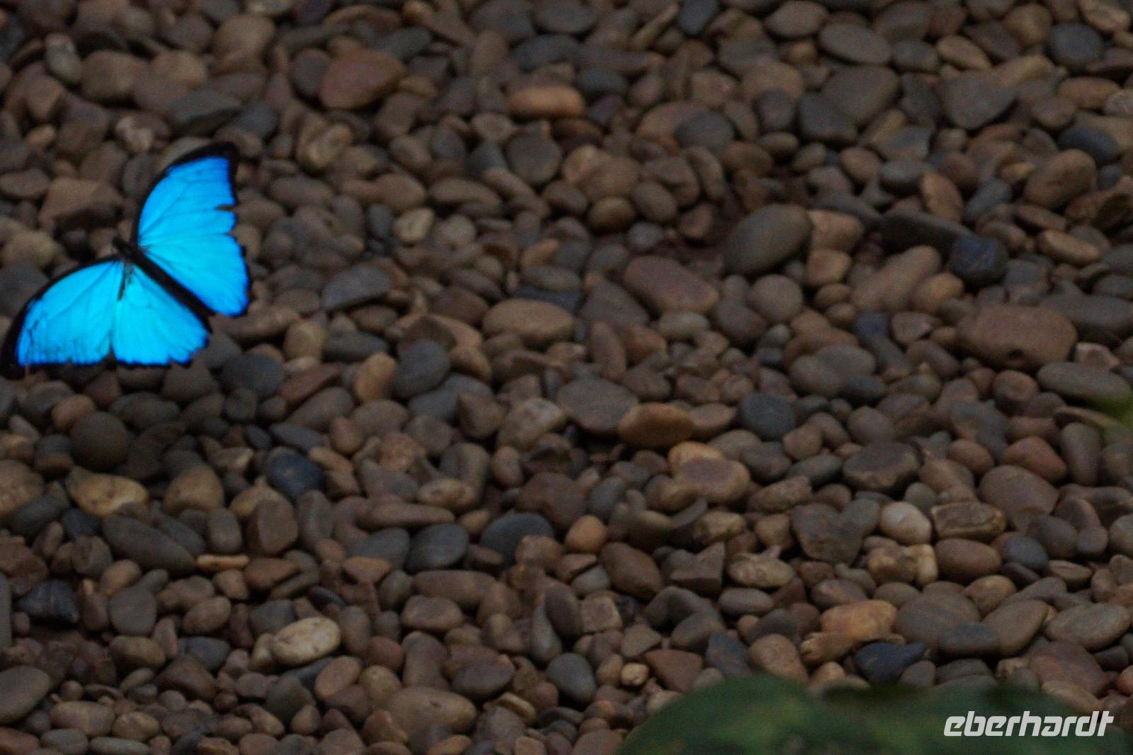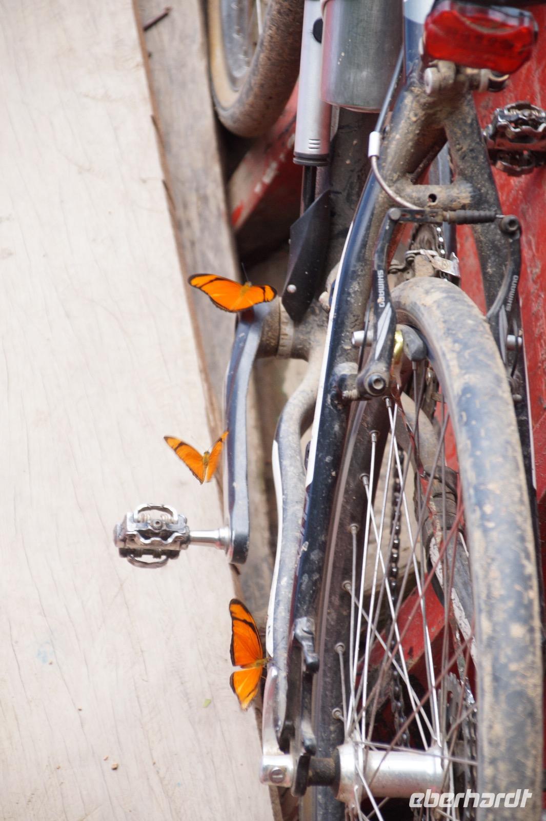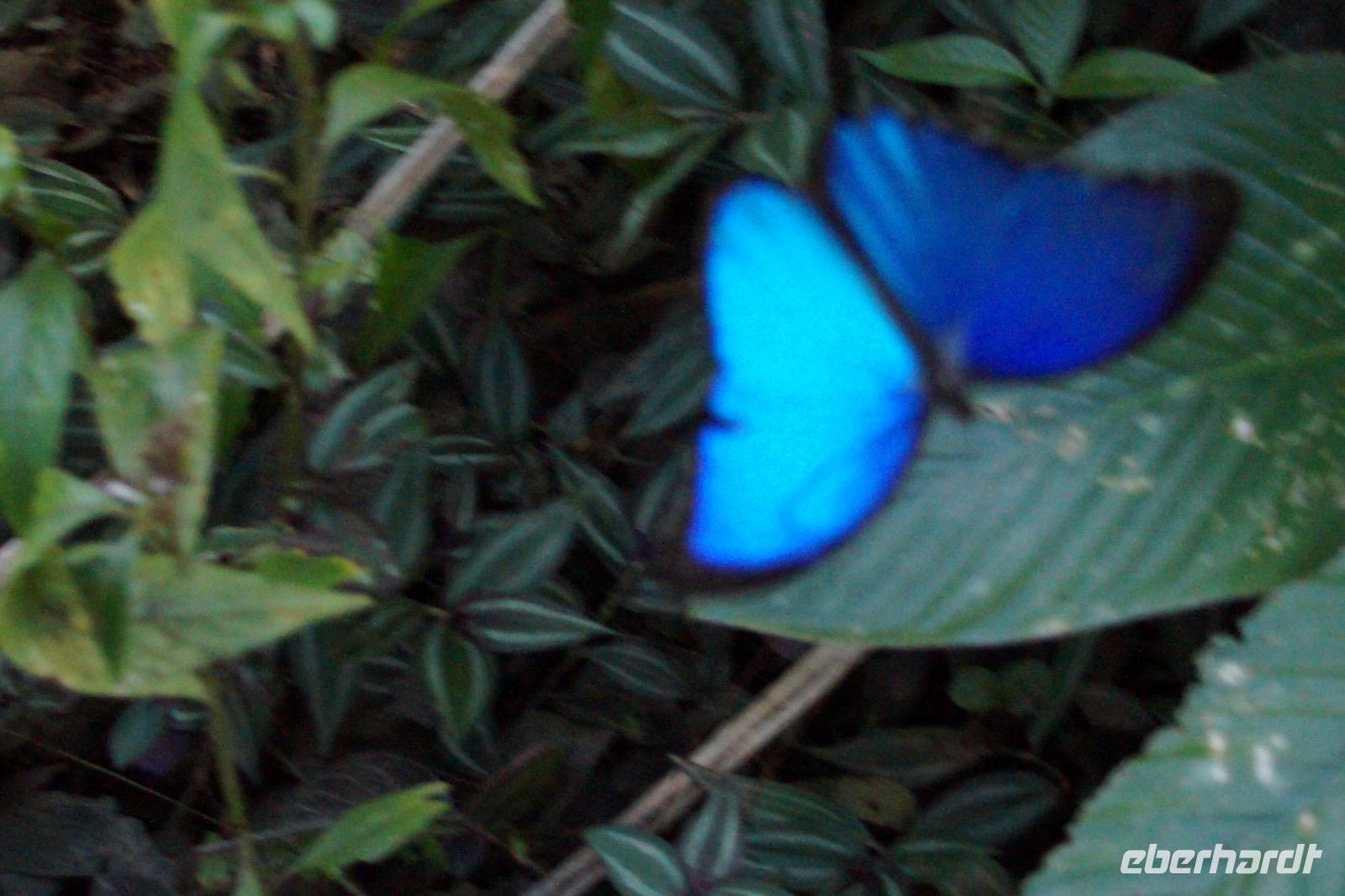 Thomas, der vor dem Frühstück noch einmal die Boote in der hoteleigenen Lagune fotografieren will, entdeckt einen weißen Kaiman. Beide erschrecken voreinander und der Kaiman flieht ins Wasser. Nach dem Frühstück entdecken wir ihn im Halbschatten am Ufer liegend. Den Vormittag müssen wir noch einmal schwitzen, dann geht es in Richtung Flughafen. An einer Schmetterlingsfarm machen wir Halt, bevor wir uns nach Cuzco einchecken.