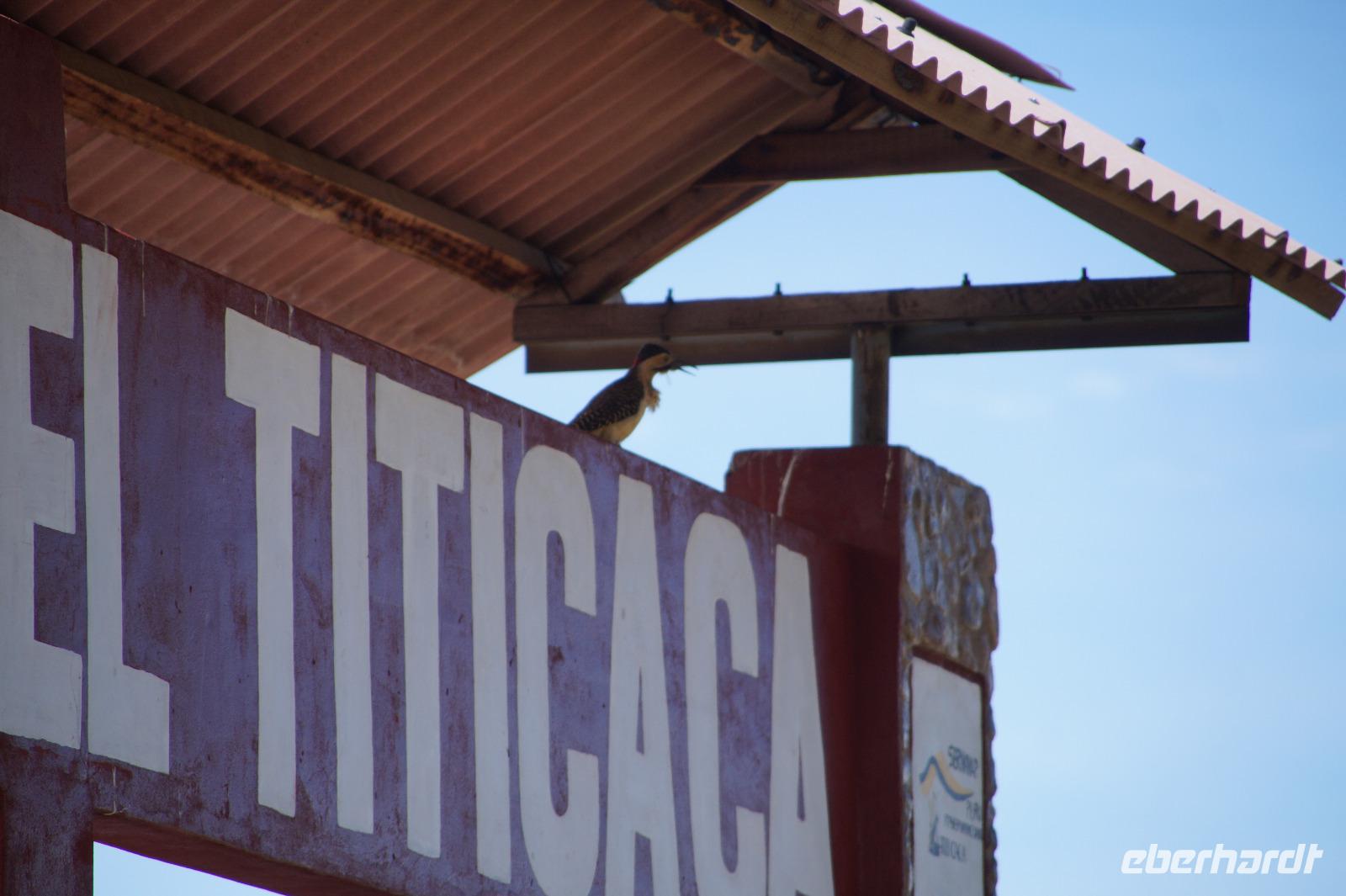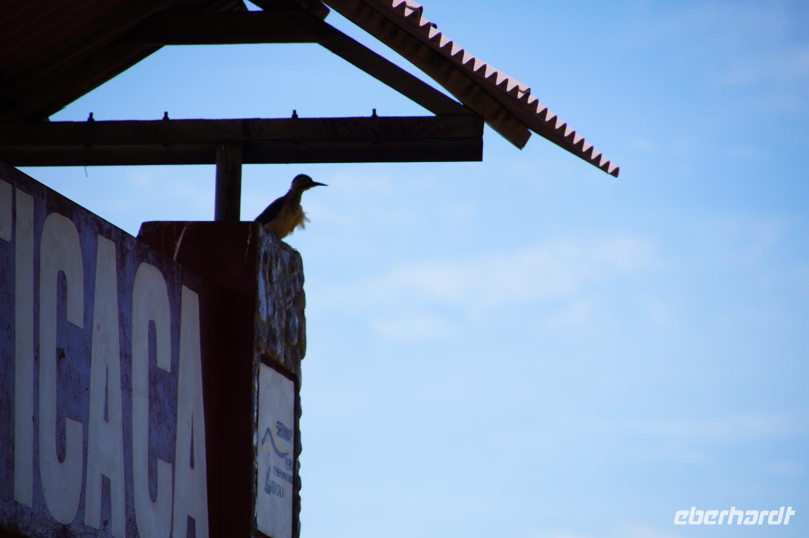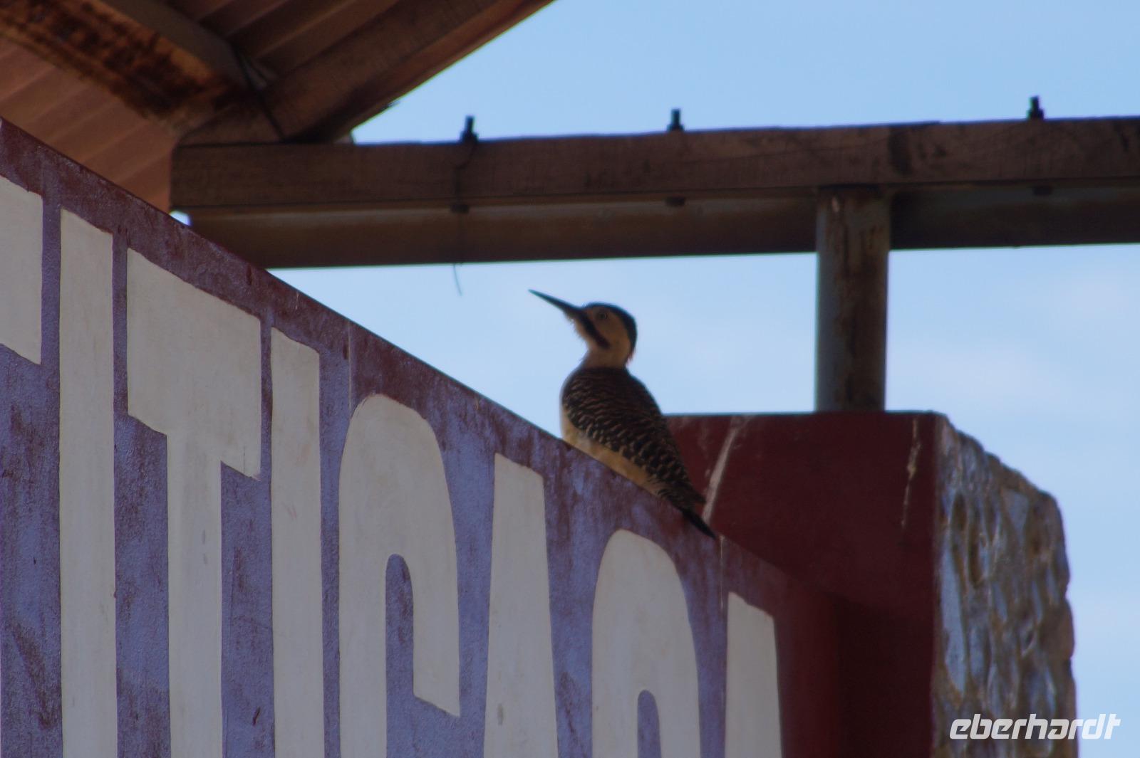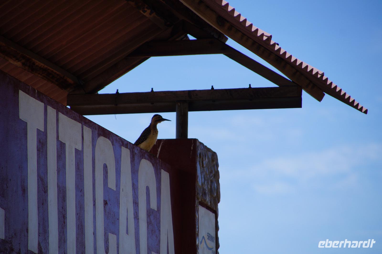 Nach dem Mittagessen, das uns in tönernen Gesichtskochtöpfen serviert wird, setzen wir uns in die Sonne oder erkunden die nähere Umgebung unseres Rastplatzes. Ich beobachte dabei mehrere Spechte - überhaupt sehe ich dieser Tage in Perú viele Spechte, mehr als in Deutschland in mehreren Jahren - von denen Nelly später erzählt, dass sie hier unbeliebt seien. Nicht nur, dass sie Bruthöhlen in Trockenlehmmauern bauen, nein, sie gelten als Todesboten.