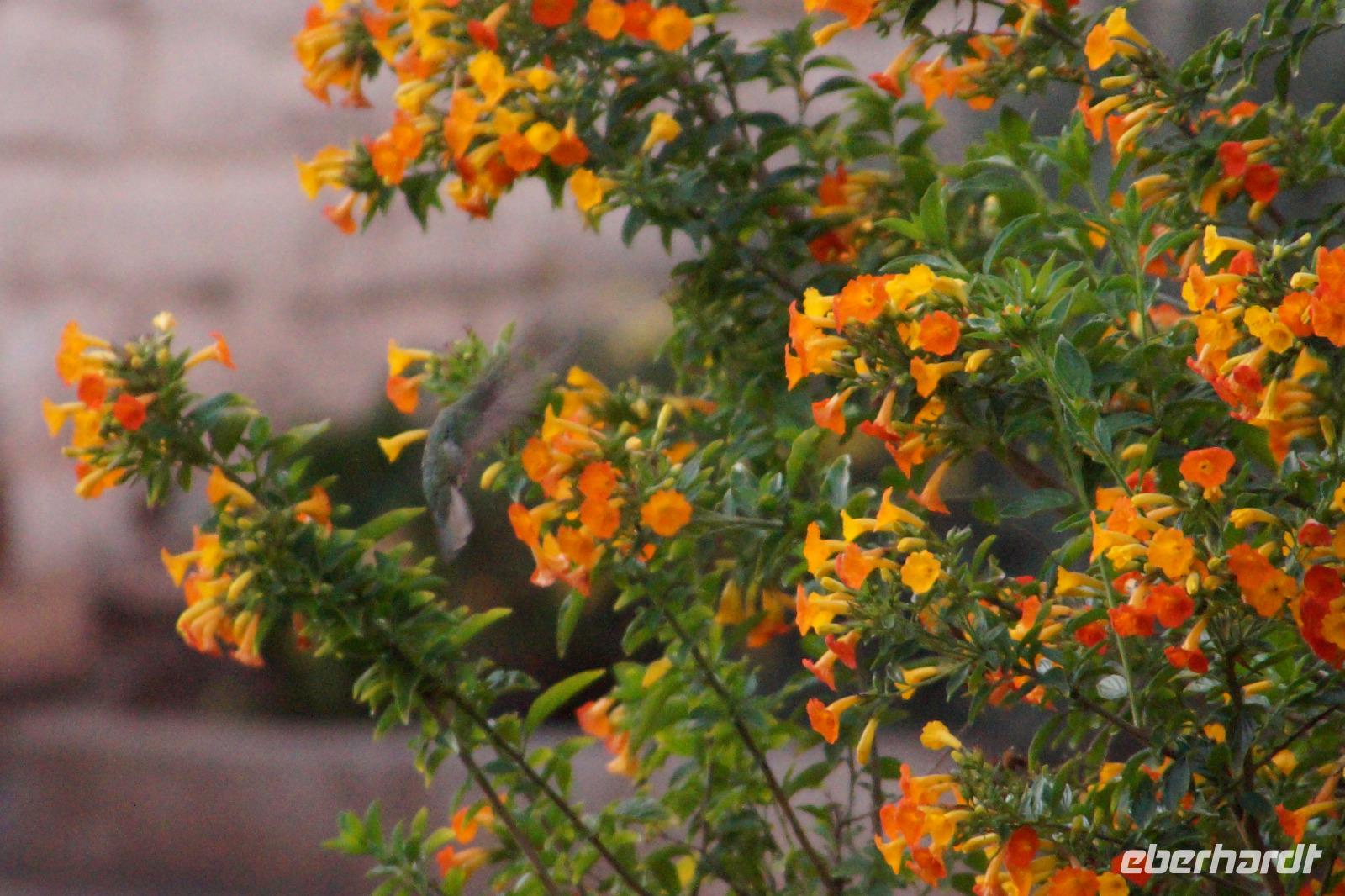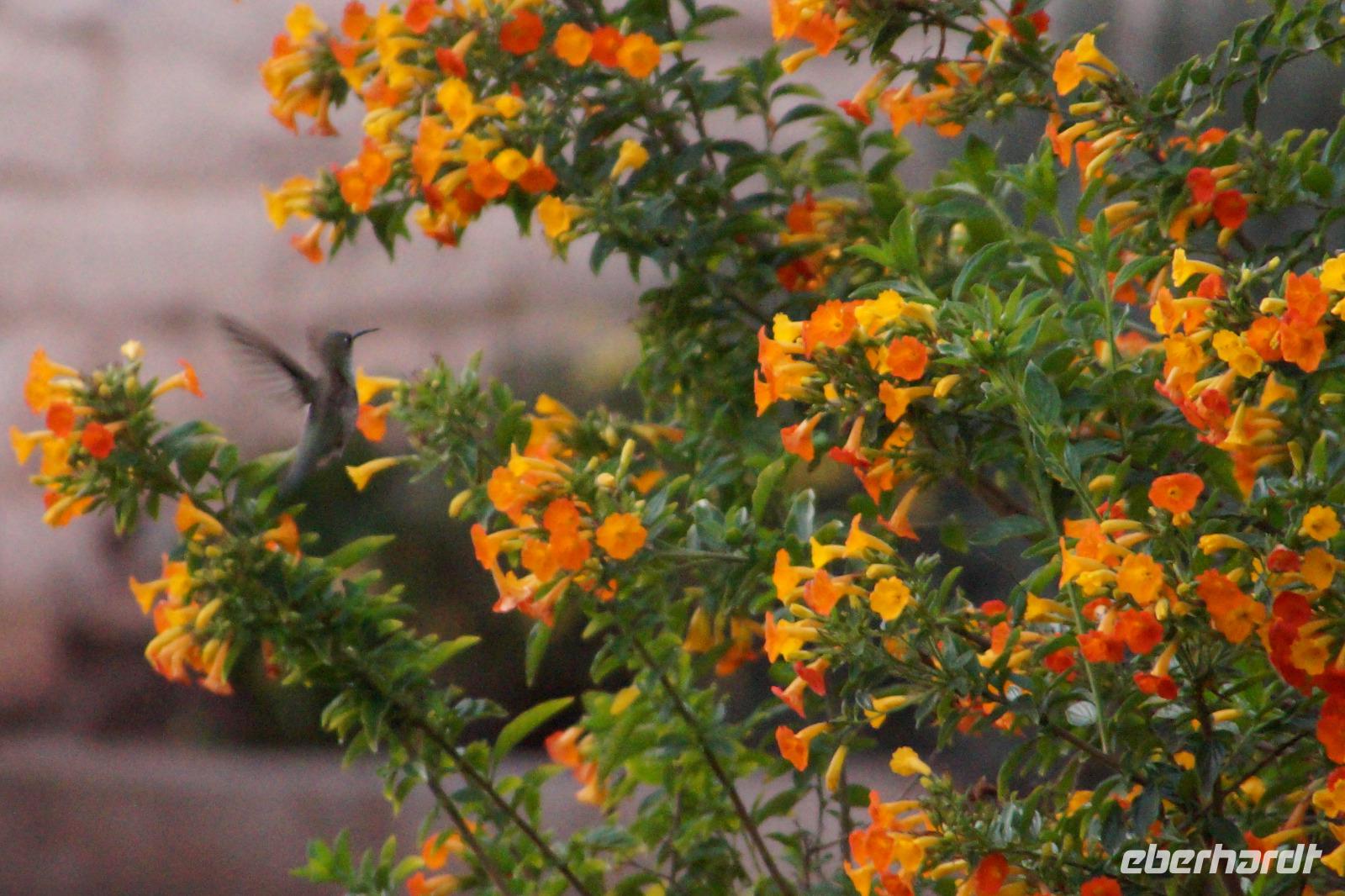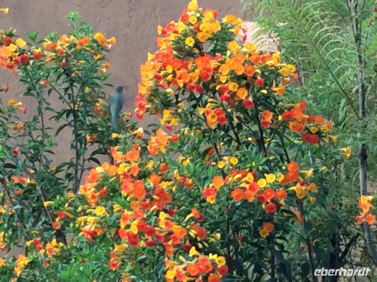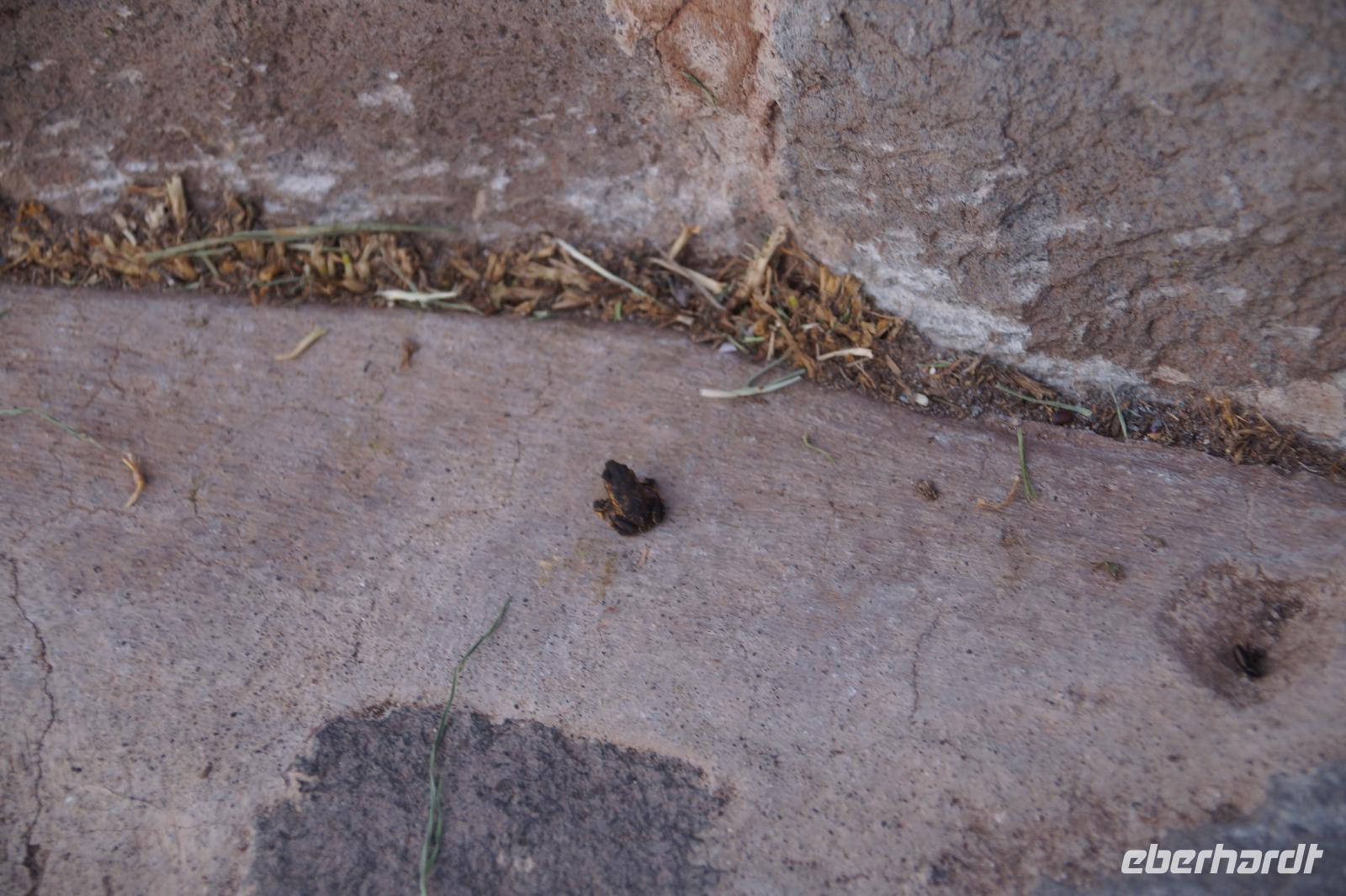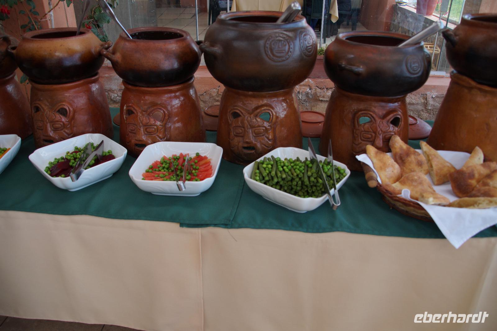 Nach dem Mittagessen, das uns in tönernen Gesichtskochtöpfen serviert wird, setzen wir uns in die Sonne oder erkunden die nähere Umgebung unseres Rastplatzes. Ich beobachte dabei mehrere Spechte - überhaupt sehe ich dieser Tage in Perú viele Spechte, mehr als in Deutschland in mehreren Jahren - von denen Nelly später erzählt, dass sie hier unbeliebt seien. Nicht nur, dass sie Bruthöhlen in Trockenlehmmauern bauen, nein, sie gelten als Todesboten.