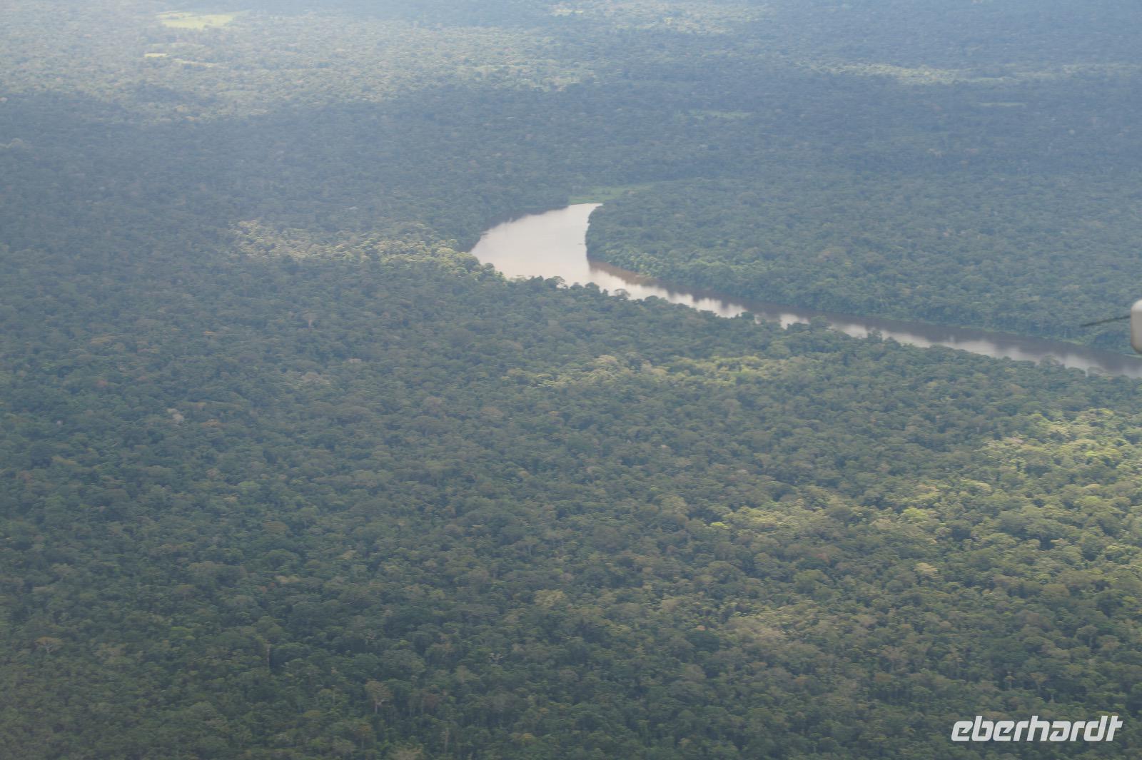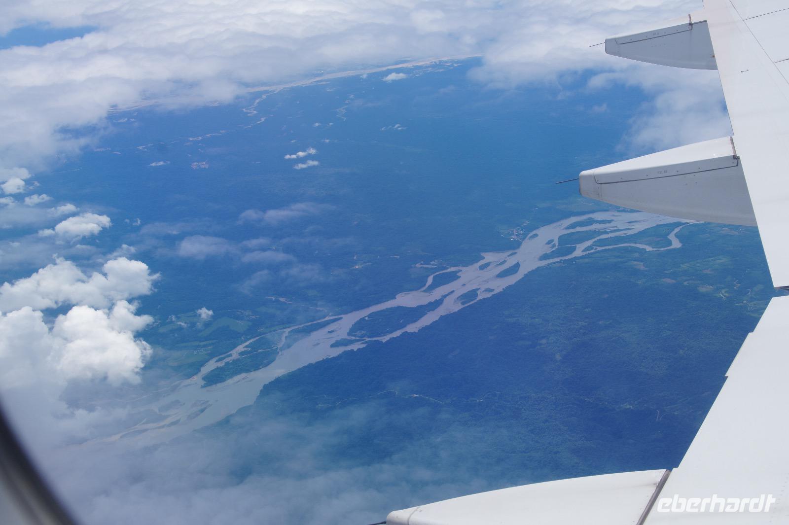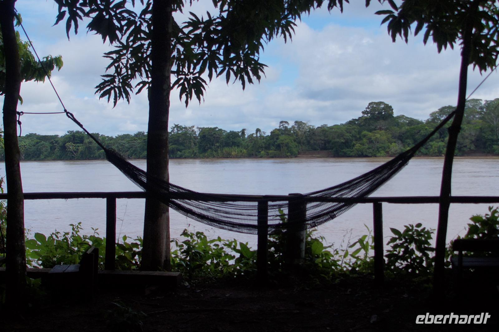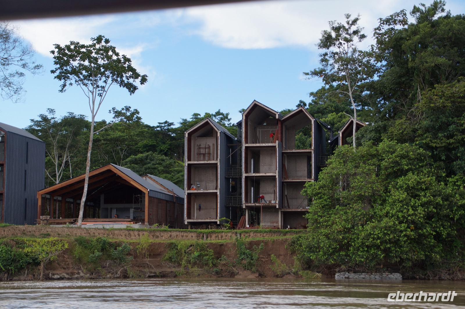 Kaum angekommen, sitzen wir schon wieder im Flieger. Franz hat uns abgeholt und zurück zum Flughafen gebracht. Waren wir etwa gestern so schlimm, dass er uns so schon wieder nach Hause schicken will? Nein, unser Flieger geht nach Puerto Maldonado, von wo aus wir per Boot über den Río Madre de Dios, ein Amazonaszufluss, der bereits hier, viele hundert km vor seiner Mündung in den Amazonas, breiter ist als der Rhein bei Düsseldorf, zu unserer Unterkunft in der Hacienda Concepción gebracht werden. Diese liegt in einer früheren Kakaoplantage im Regenwald und ist unser Domizil für die nächsten drei Nächte. Inkaterra, der Betreiber, setzt hier auf Umwelterziehung und Nachhaltigkeit, so wird auch jeden Tag und in der Nacht für mehrere Stunden der Strom abgestellt. Im Eco Center beginnen alle unsere Exkursionen.