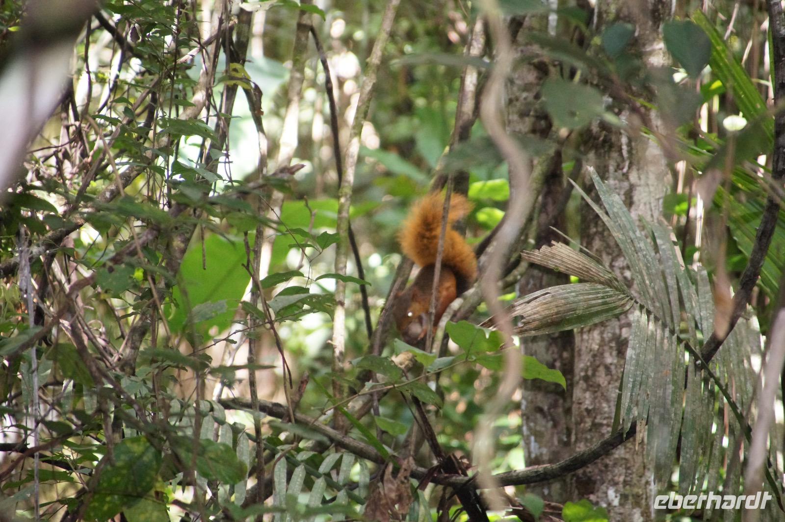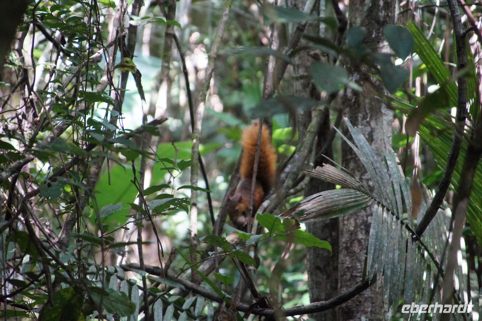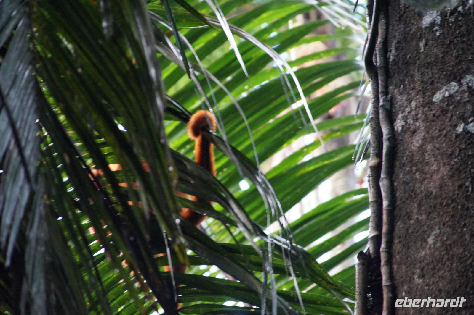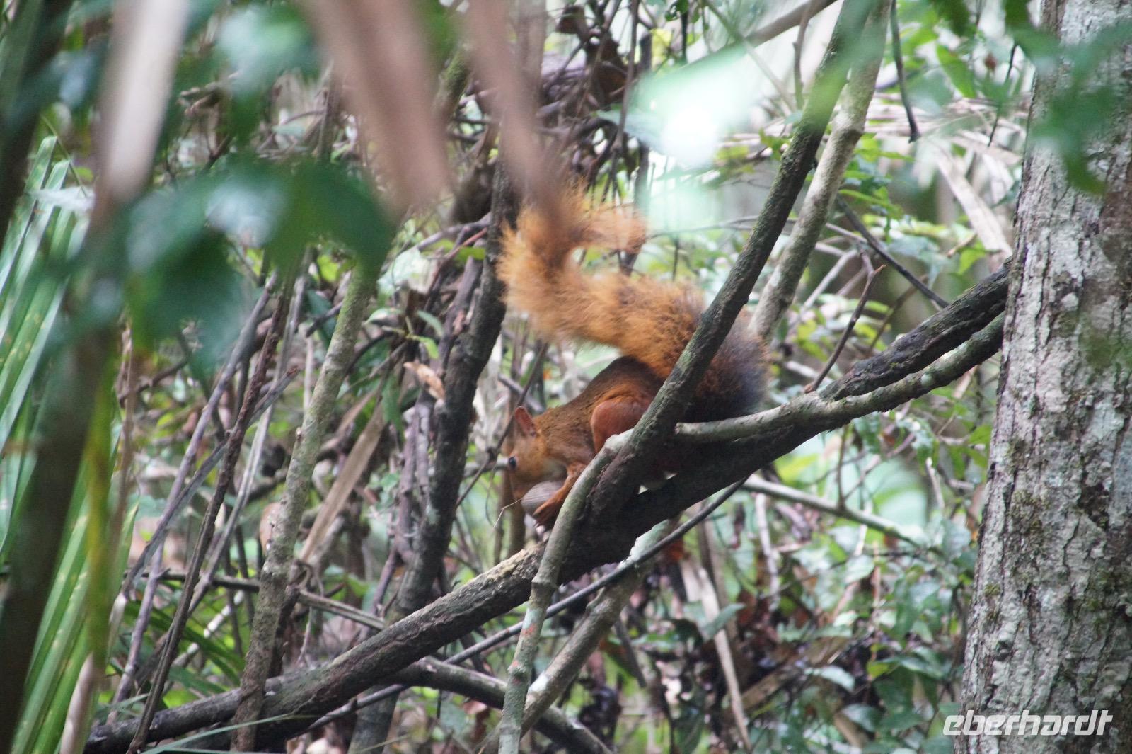 Auf der Rückfahrt zu Anleger sehen wir noch eine Schildkröte, dann geht es den Weg zurück den wir hergekommen sind. Wir sehen eine Termitenstraße und ein Eichhörnchen, einige auch vorbeifliegende Papageien.