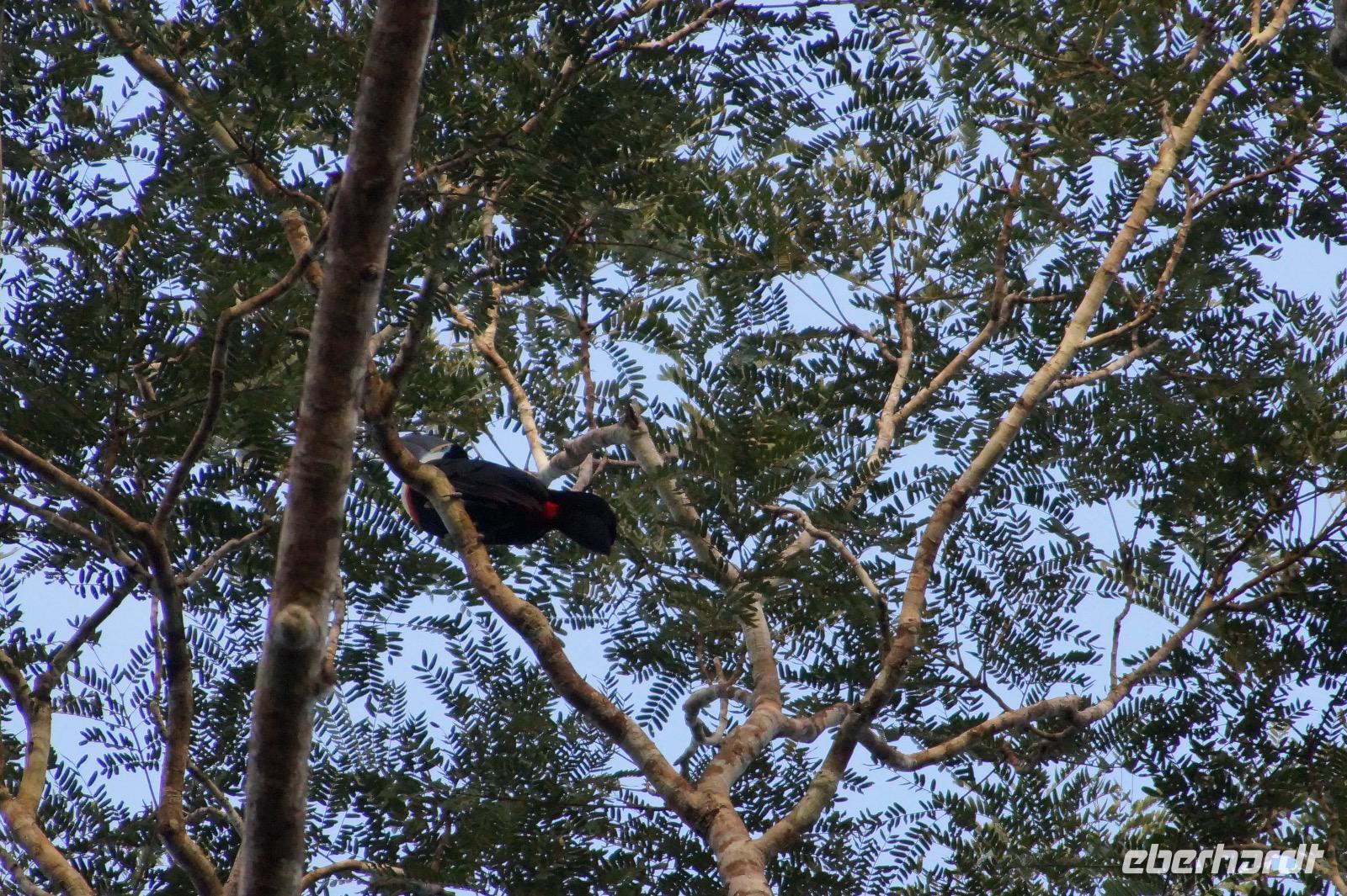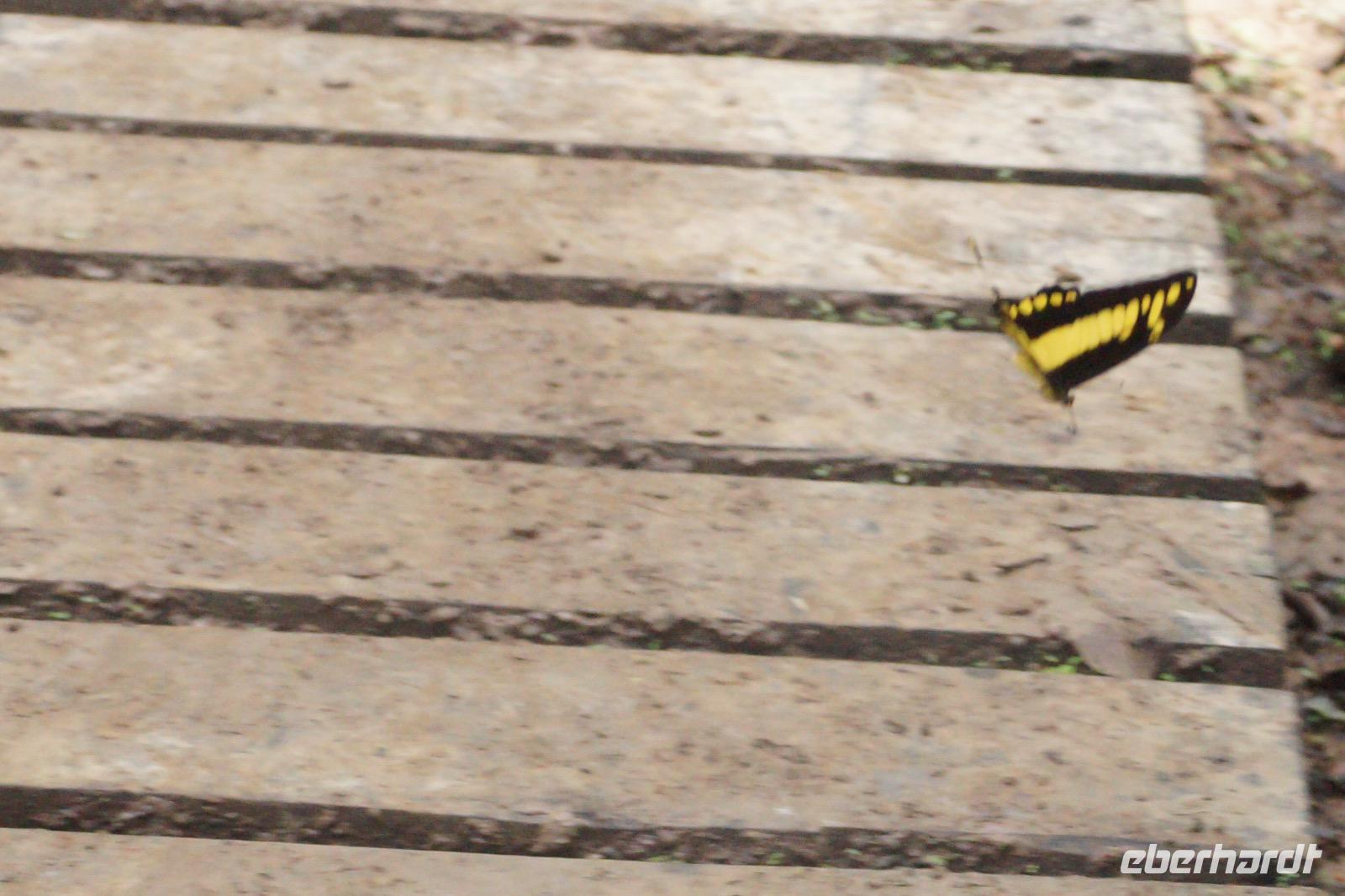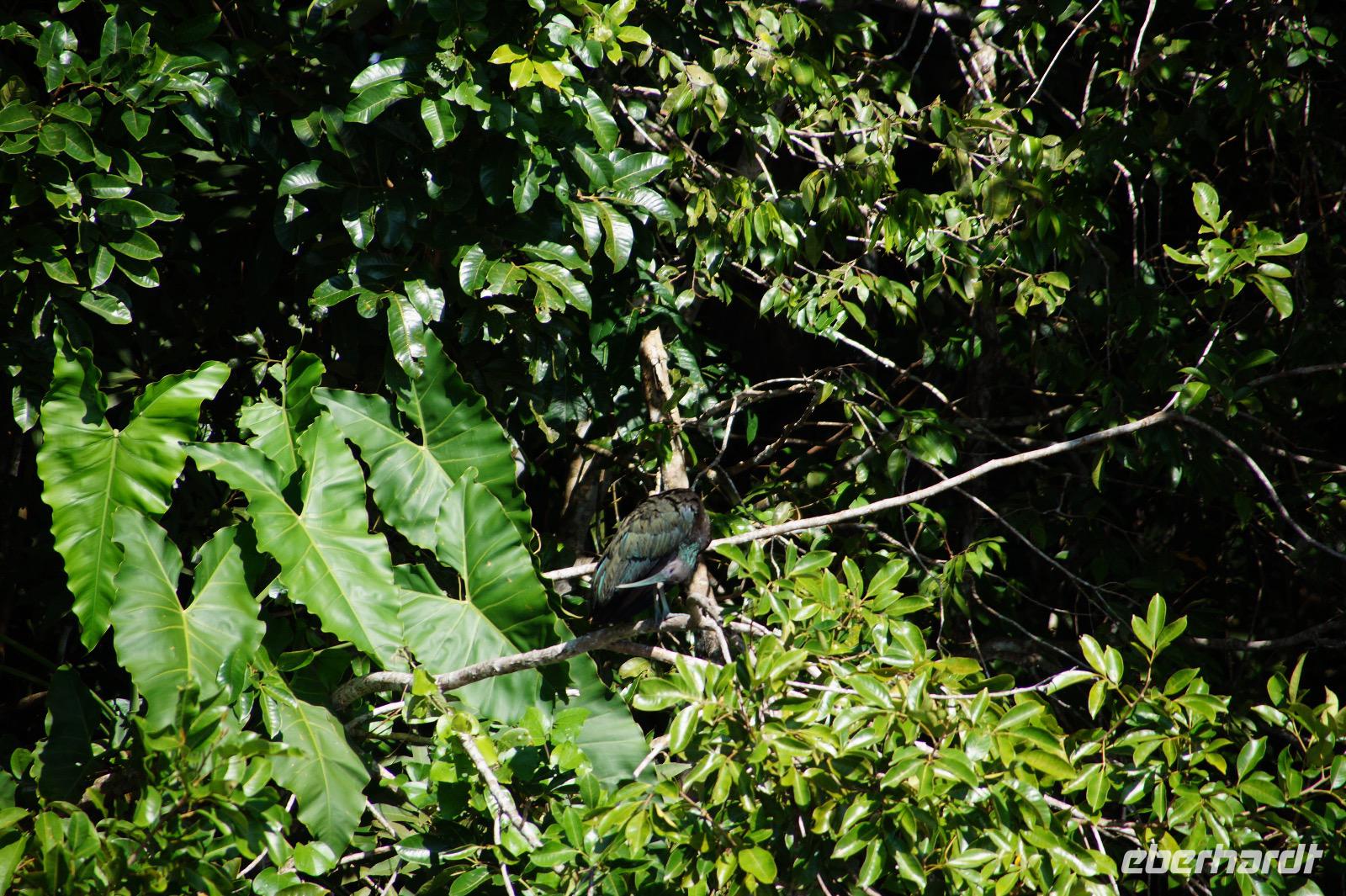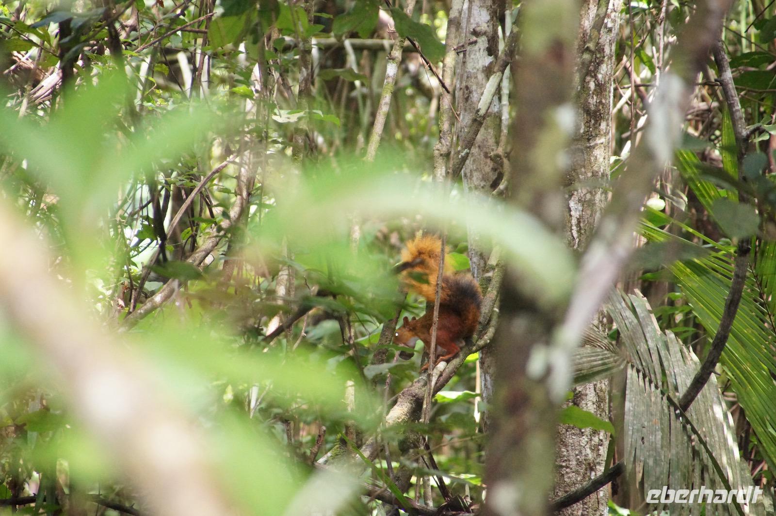 Auf der Rückfahrt zu Anleger sehen wir noch eine Schildkröte, dann geht es den Weg zurück den wir hergekommen sind. Wir sehen eine Termitenstraße und ein Eichhörnchen, einige auch vorbeifliegende Papageien.
