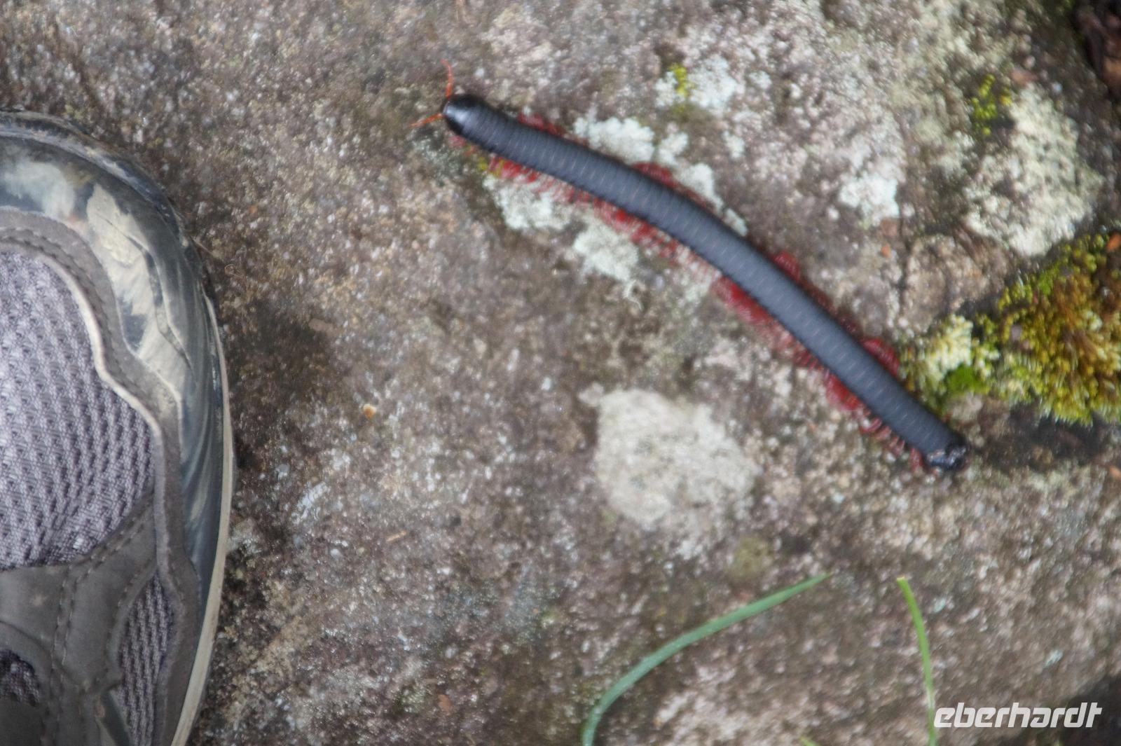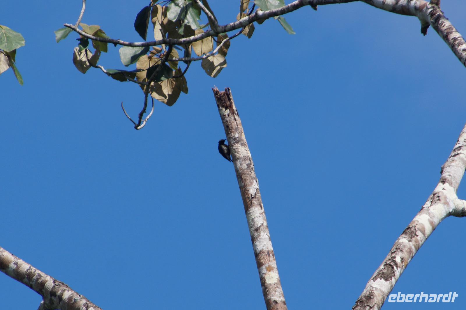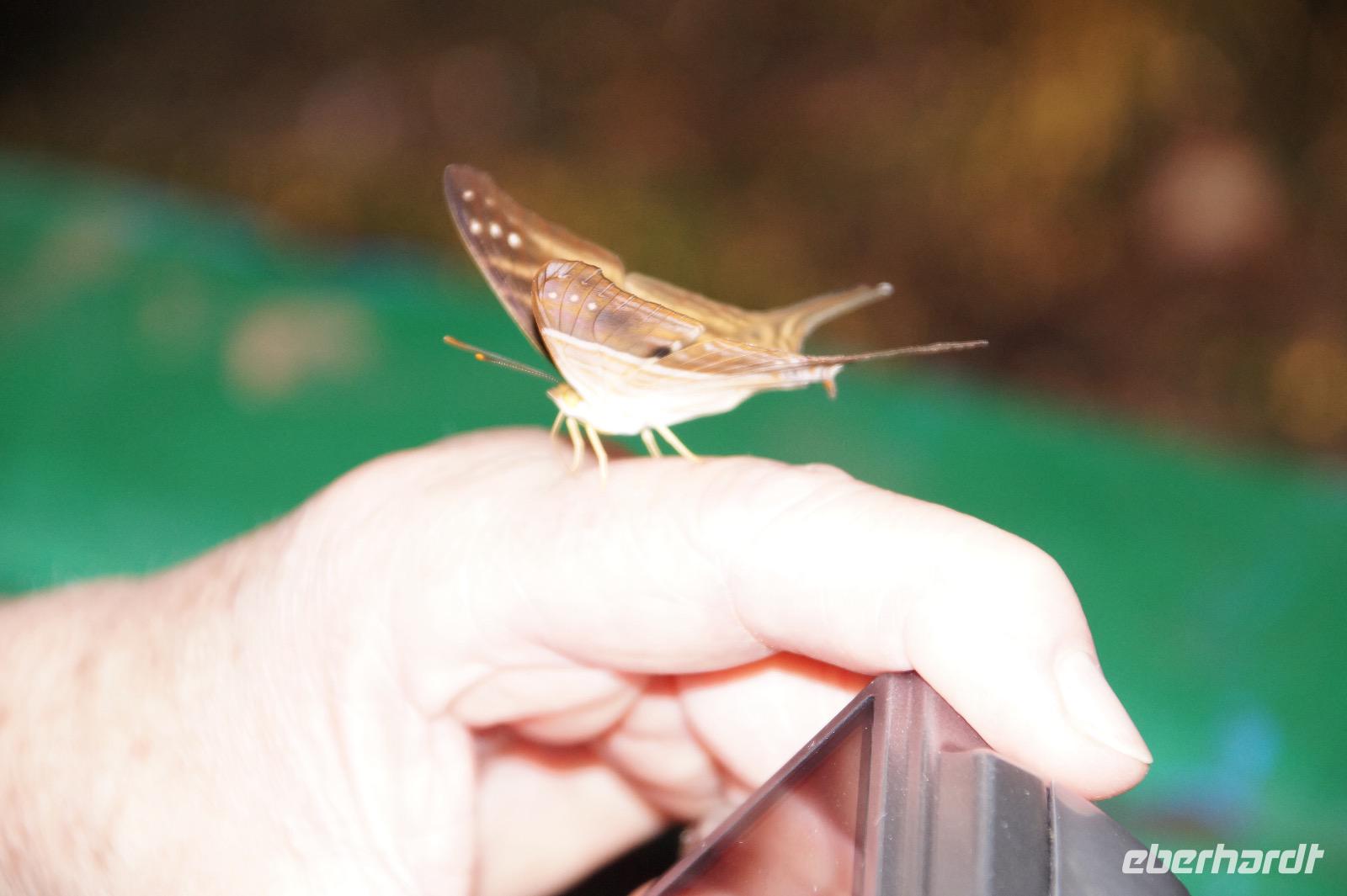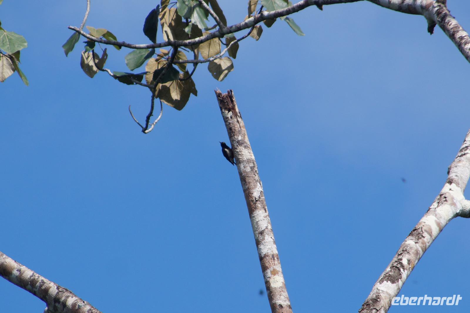 Auf der Rückfahrt zu Anleger sehen wir noch eine Schildkröte, dann geht es den Weg zurück den wir hergekommen sind. Wir sehen eine Termitenstraße und ein Eichhörnchen, einige auch vorbeifliegende Papageien.