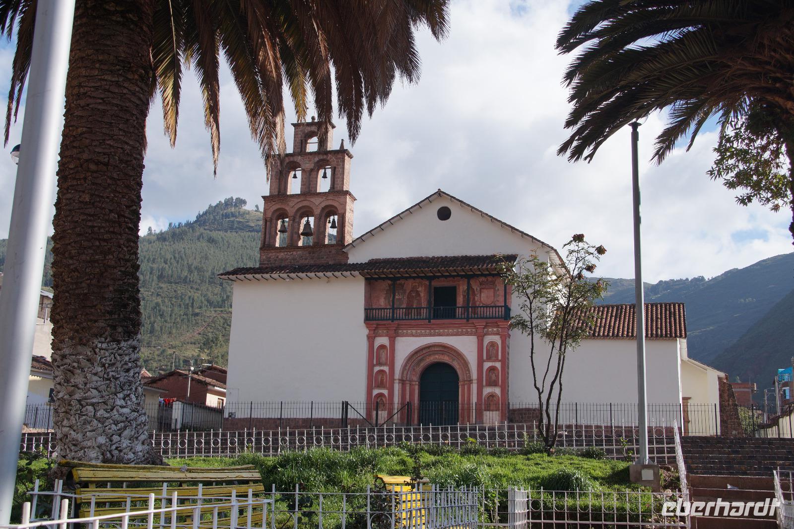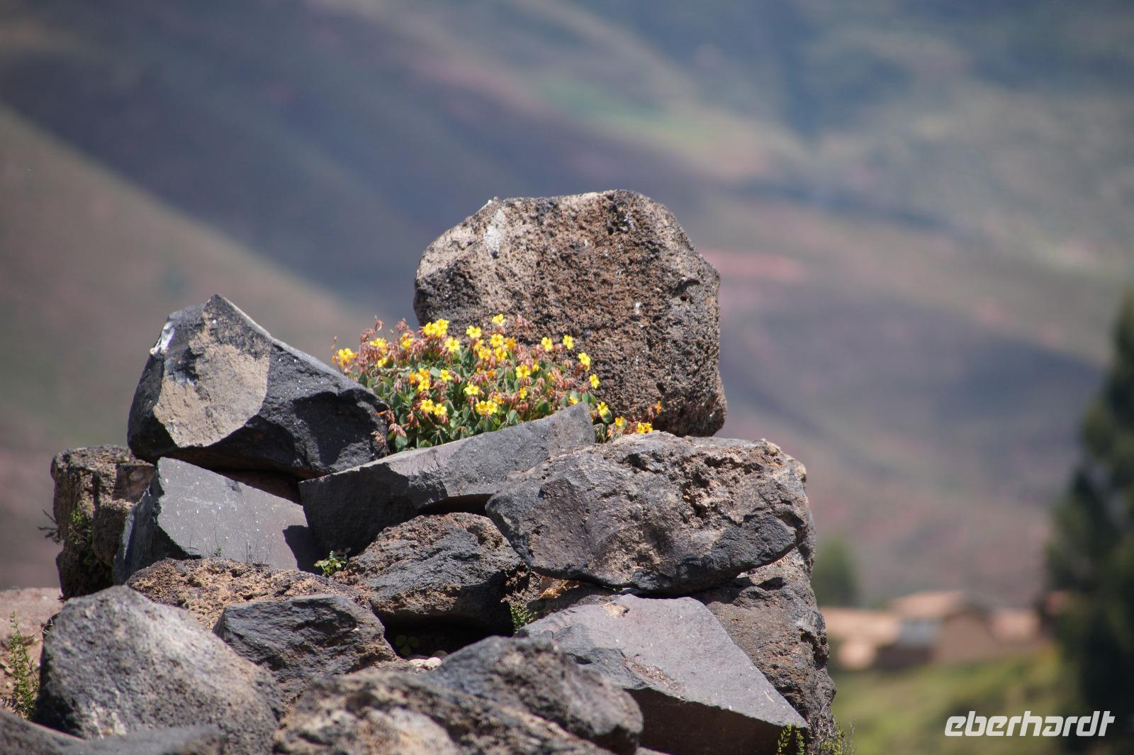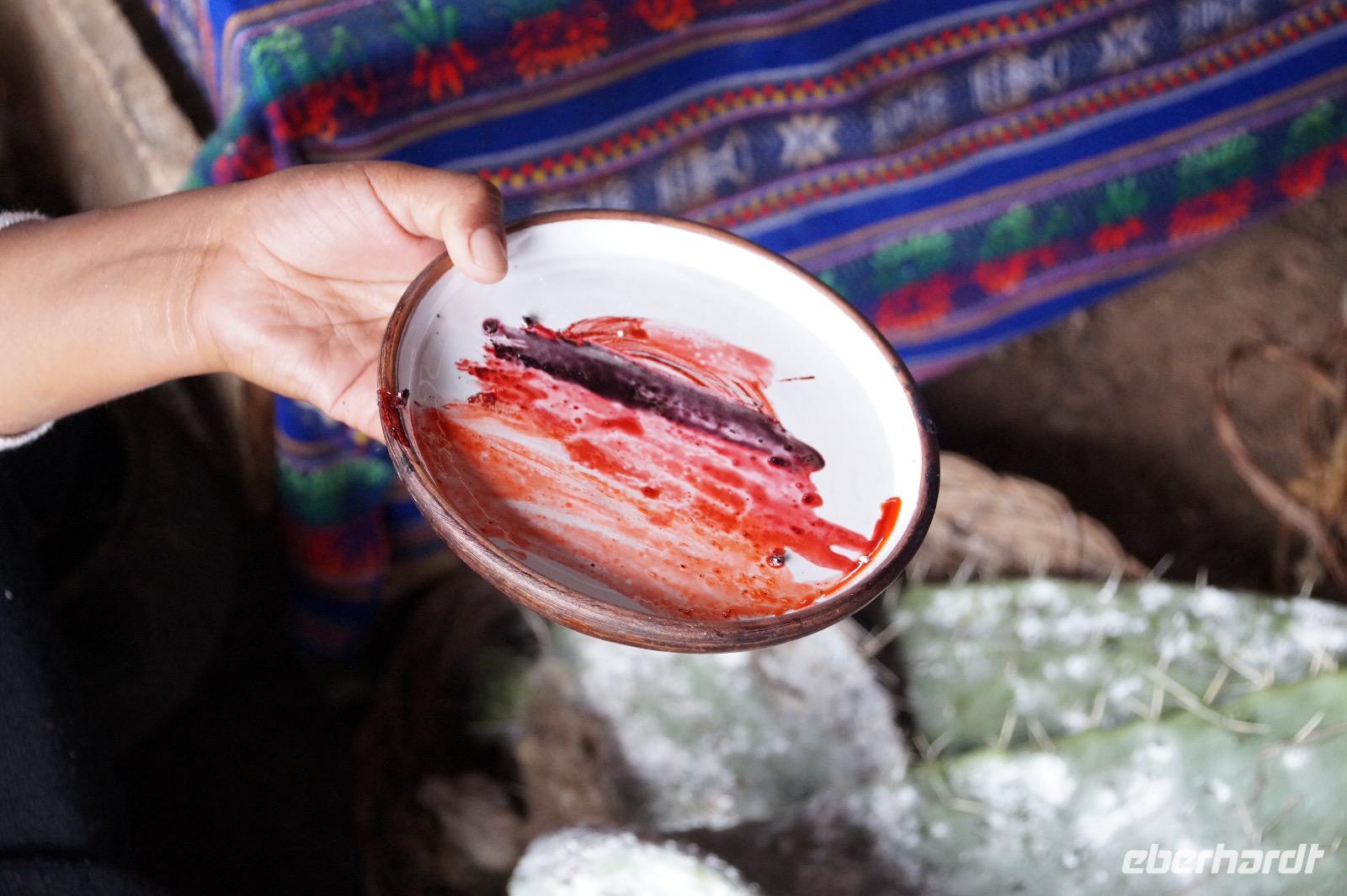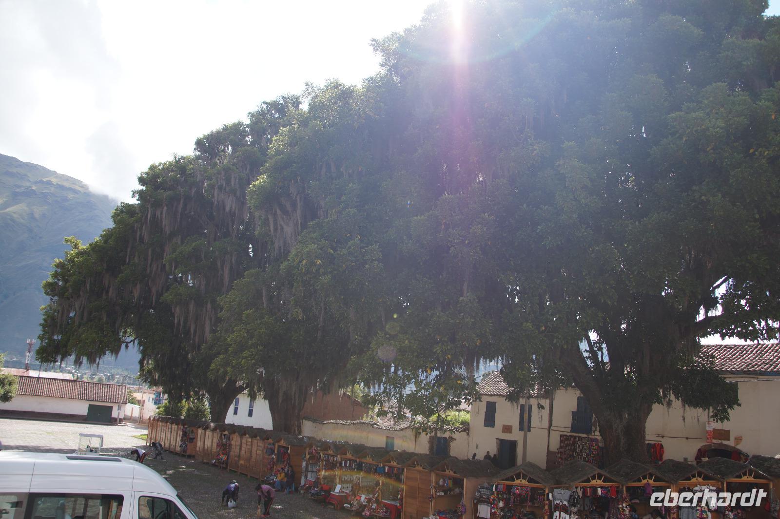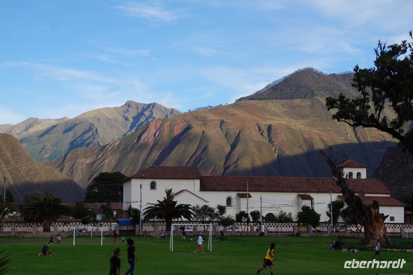 Sie zeigen uns, wie man Naturshampoo aus einer Wurzel herstellt und am Beispiel von Schafswolle, wie gut dieses funktioniert, zeigen das Spindeln per Hand, wie leicht ungesponnene Wolle reißt und wie man die Wolle färbt (verschiedene Orange- bis Lilatöne allein aus der Cochinillelaus, je nach weiterer Zutat) und schließlich webt. Anschließend fahren wir weiter in den Ort hinein, um die Kirche von Chinchero zu besuchen, die auf einem alten Inkatempel und Herrscherpalast steht.