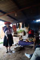 Mit dem Bus überqueren wir wieder den Vilcanota, der hier Urubamba heißt und fahren hoch nach Chinchero, wo wir zunächst eine traditionelle Weberei besuchen. Die vier Damen tragen alle dieselbe Tracht, wobei sich die Art den Hut zu tragen unterscheidet. Ich frage Mijaíl, unsere peruanische Reiseleiterin mit denn russischen Männernamen, ob das unterscheide, ob sie verheiratet oder ledig seien, Mija leitet die Frage direkt weiter an eine hübsche Einheimische: „¿Eres soltera? - Bist du ledig?“ Diese blickt mich kurz an und schlägt die Augen nieder, sie sei verheiratet, aber ihre Kollegin sei ledig, das sähe man an dem Hut. Was sie wohl gedacht haben mag?