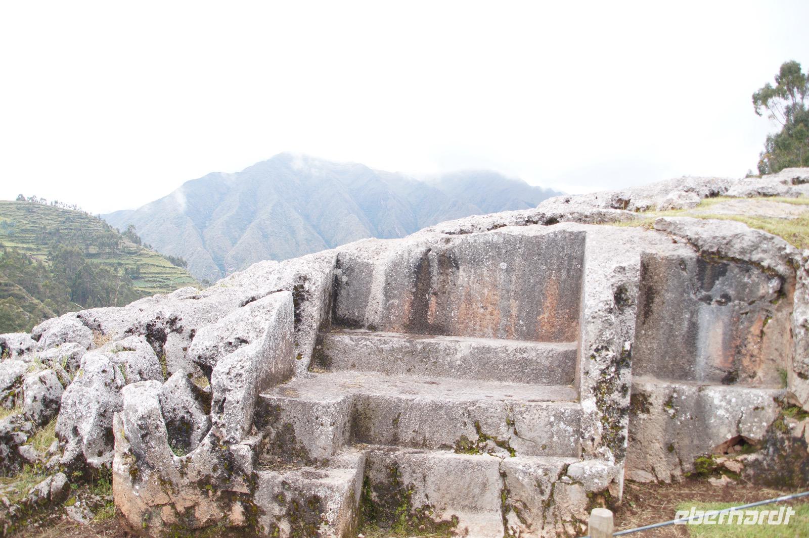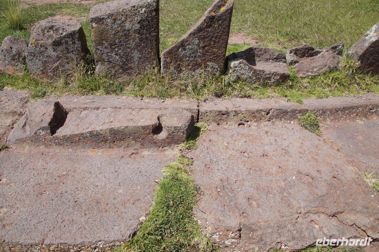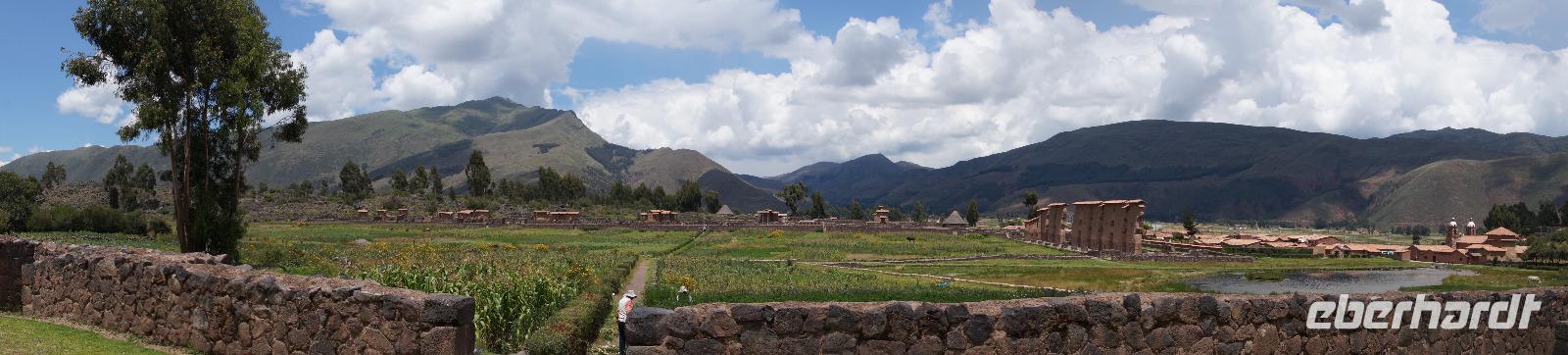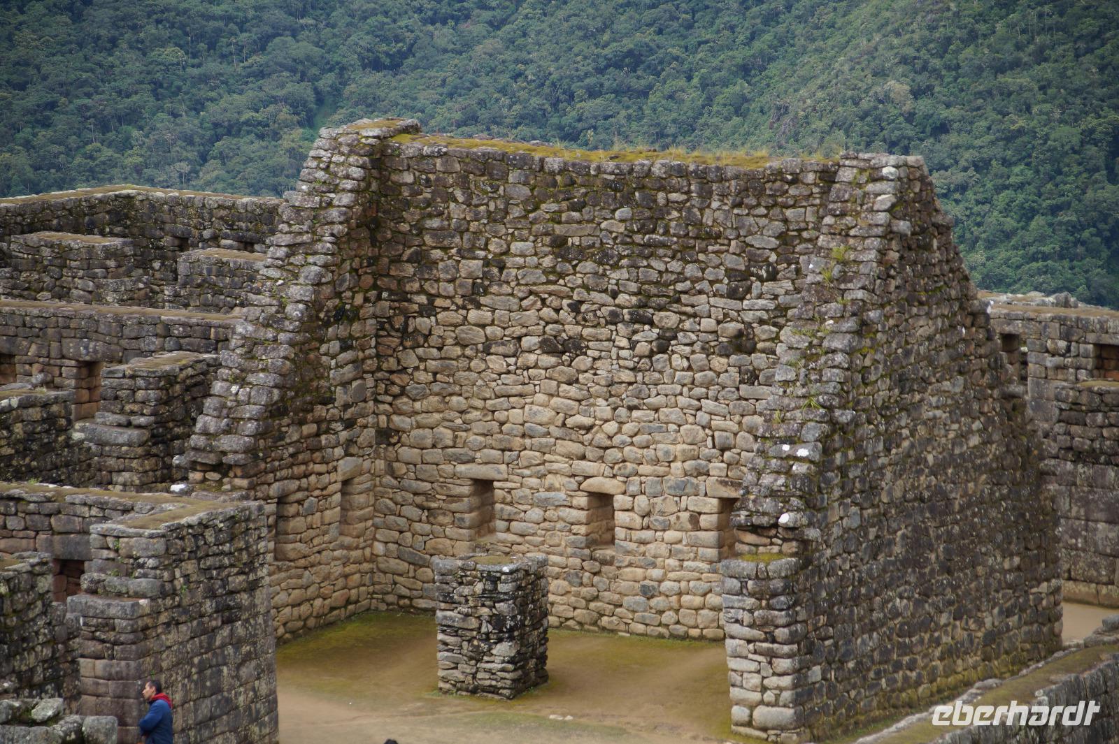 Anschließend geht es zum Heiligen Platz, wo sich der Haupttempel der Anlage (für Wirakocha) und der Tempel der drei Fenster befinden, zudem das sogenannte Haus des Priesters. Die drei Gebäude wurden nie fertig gestellt, dafür haben aber die Steinblöcke, aus denen sie errichtet wurden, ein gewaltiges Ausmaß.