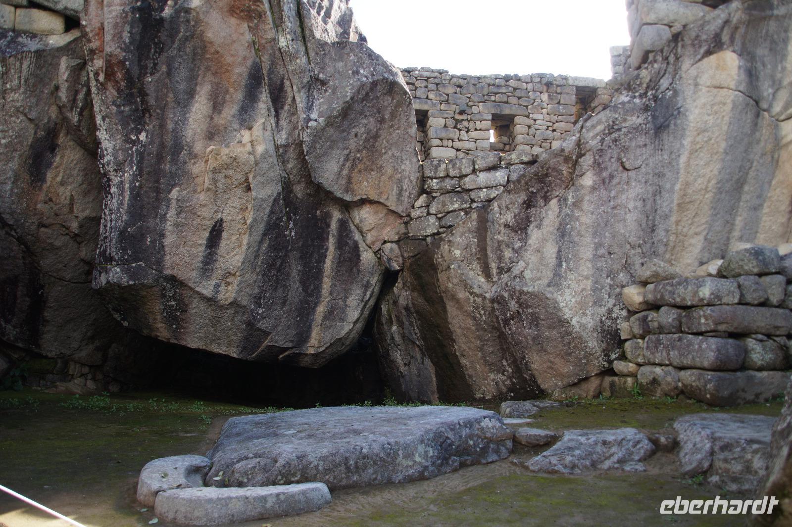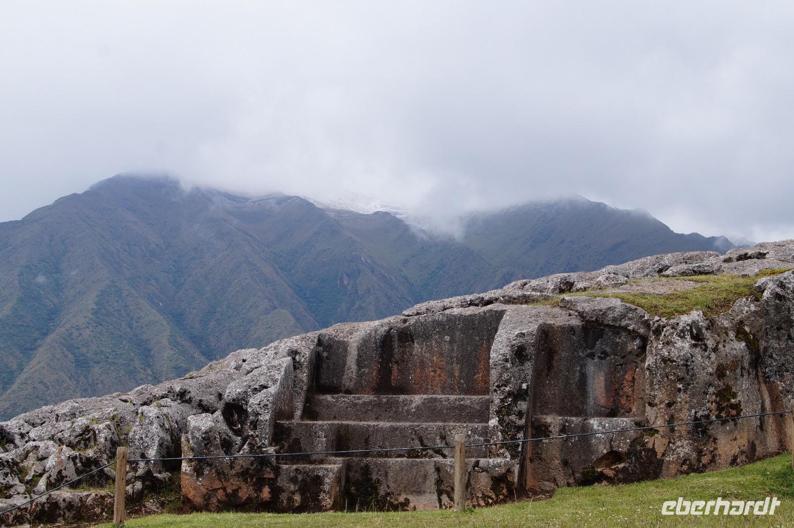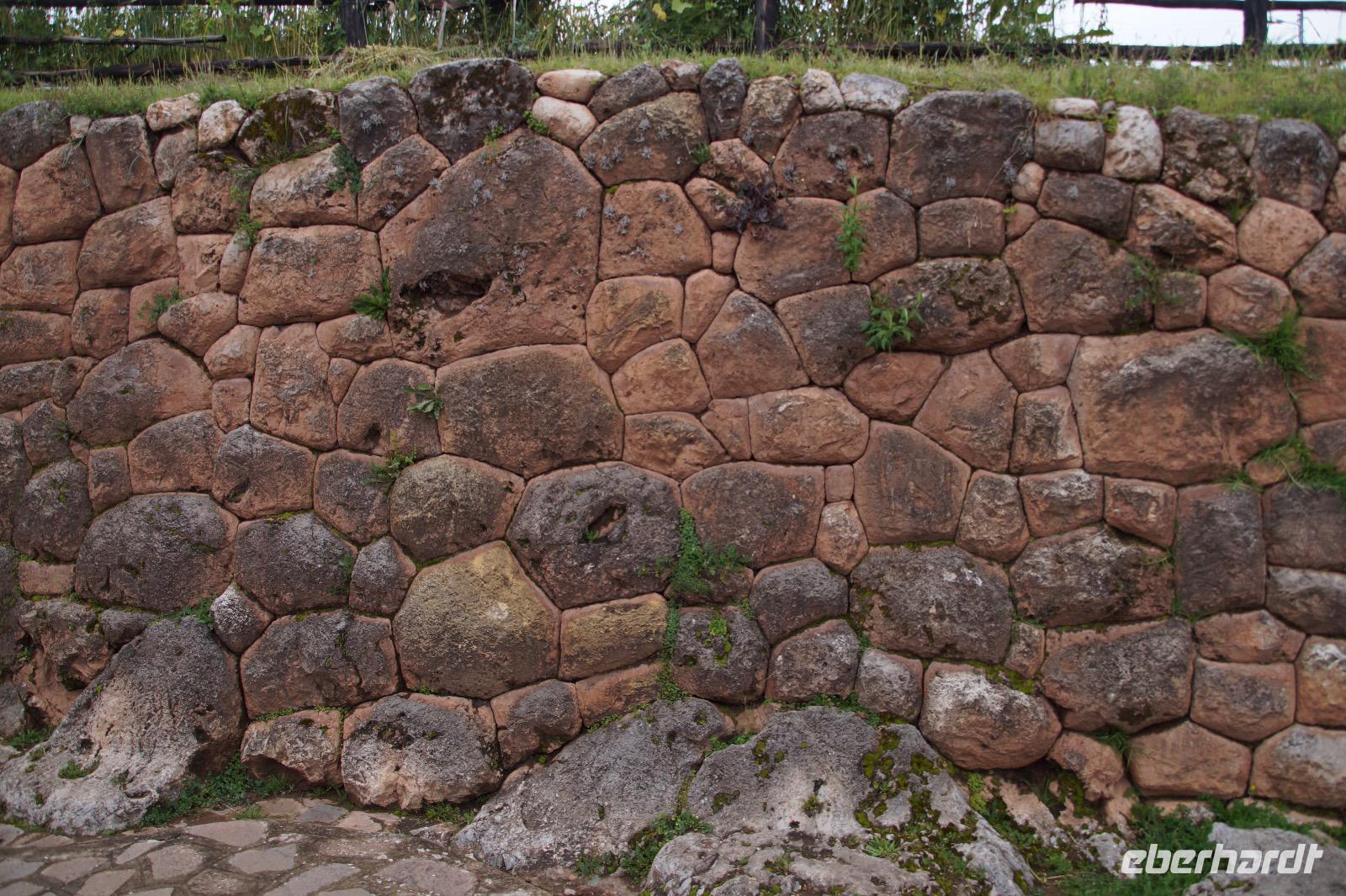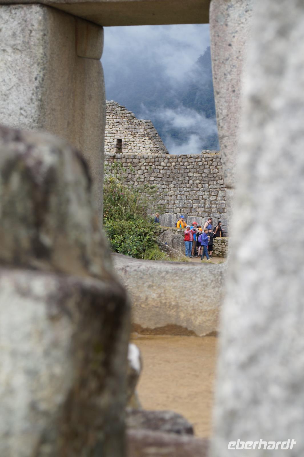 Anschließend geht es zum Heiligen Platz, wo sich der Haupttempel der Anlage (für Wirakocha) und der Tempel der drei Fenster befinden, zudem das sogenannte Haus des Priesters. Die drei Gebäude wurden nie fertig gestellt, dafür haben aber die Steinblöcke, aus denen sie errichtet wurden, ein gewaltiges Ausmaß.