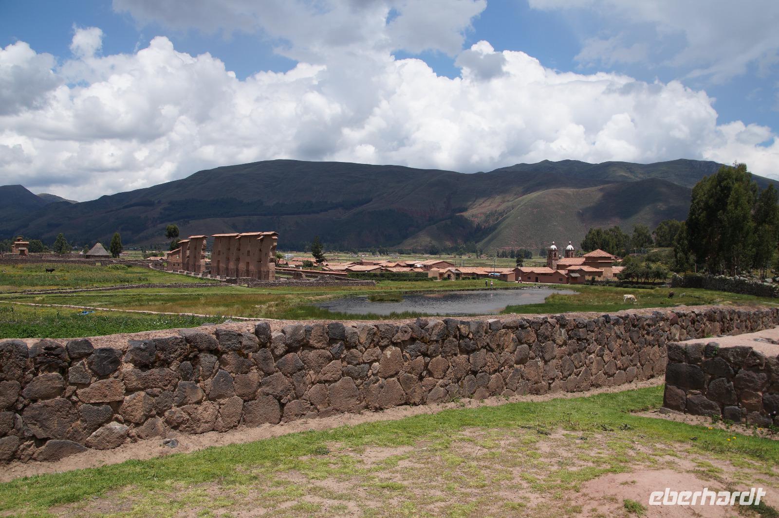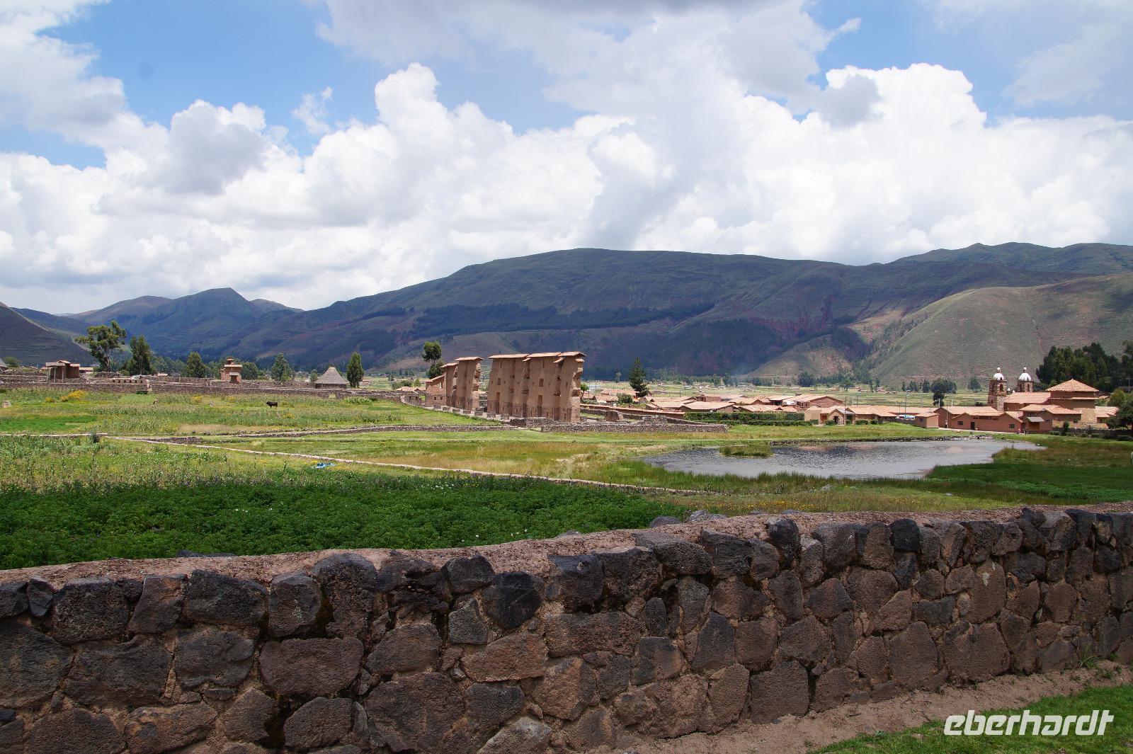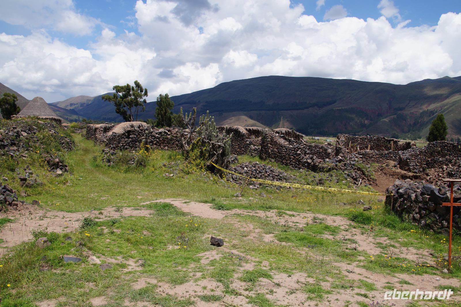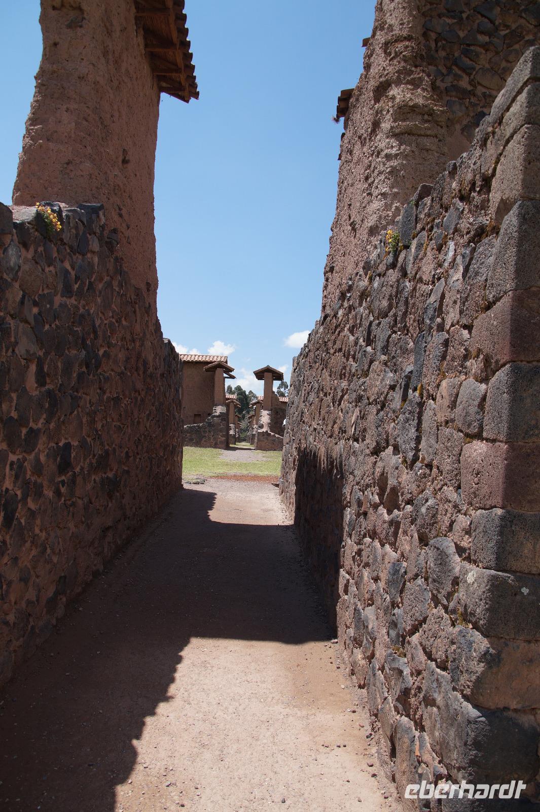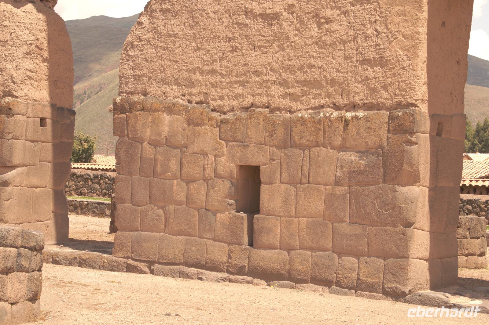 Adelspaläste, die an einer Ost-West-Achse symmetrisch aufgereit sind runde Lagerhäuser schließen sich an. In in Raqchi soll sich die Inkaelite getroffen haben, wenn es darum ging, aus den führenden Familien einen neuen Inka zu bestimmen.
