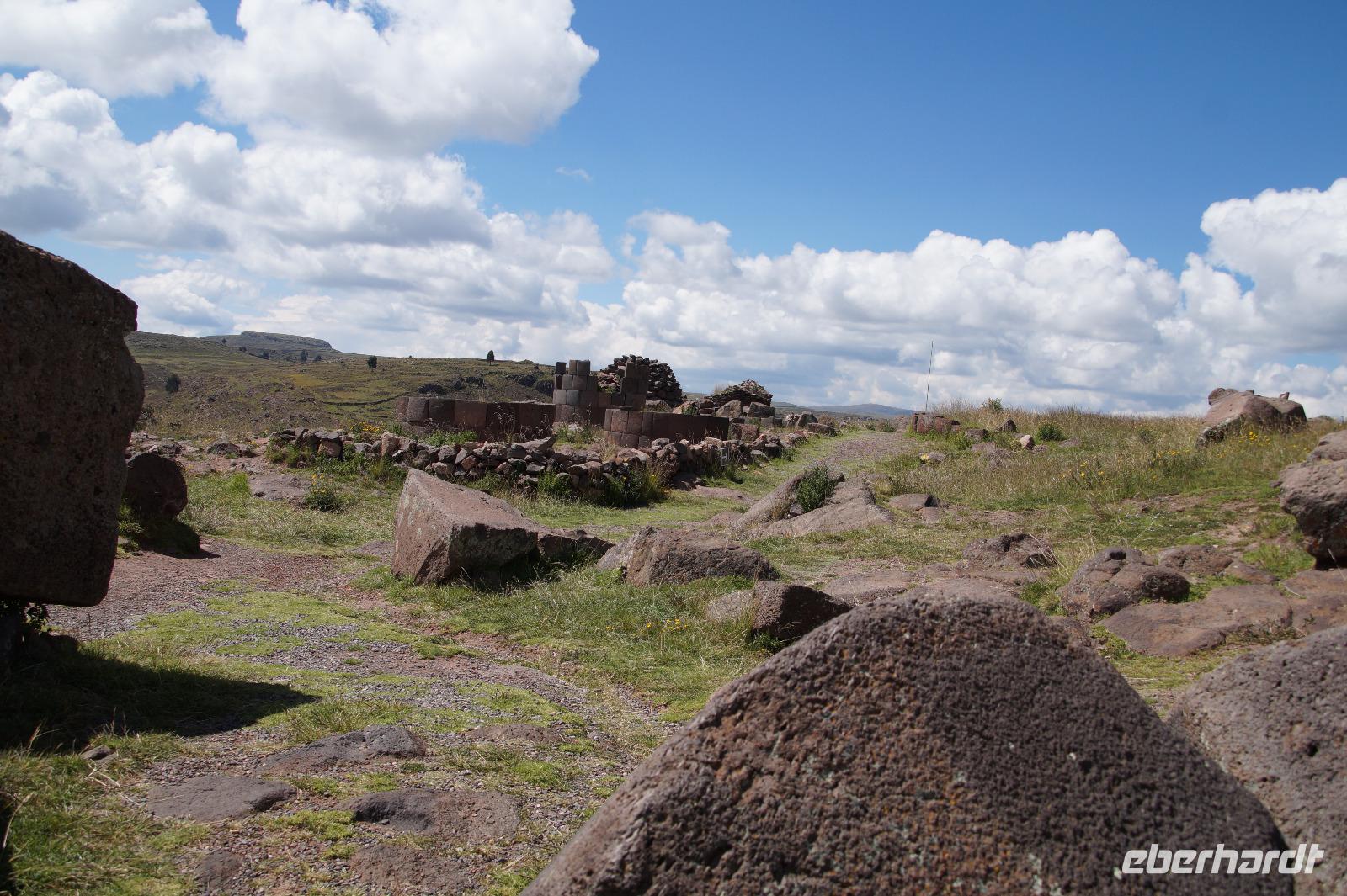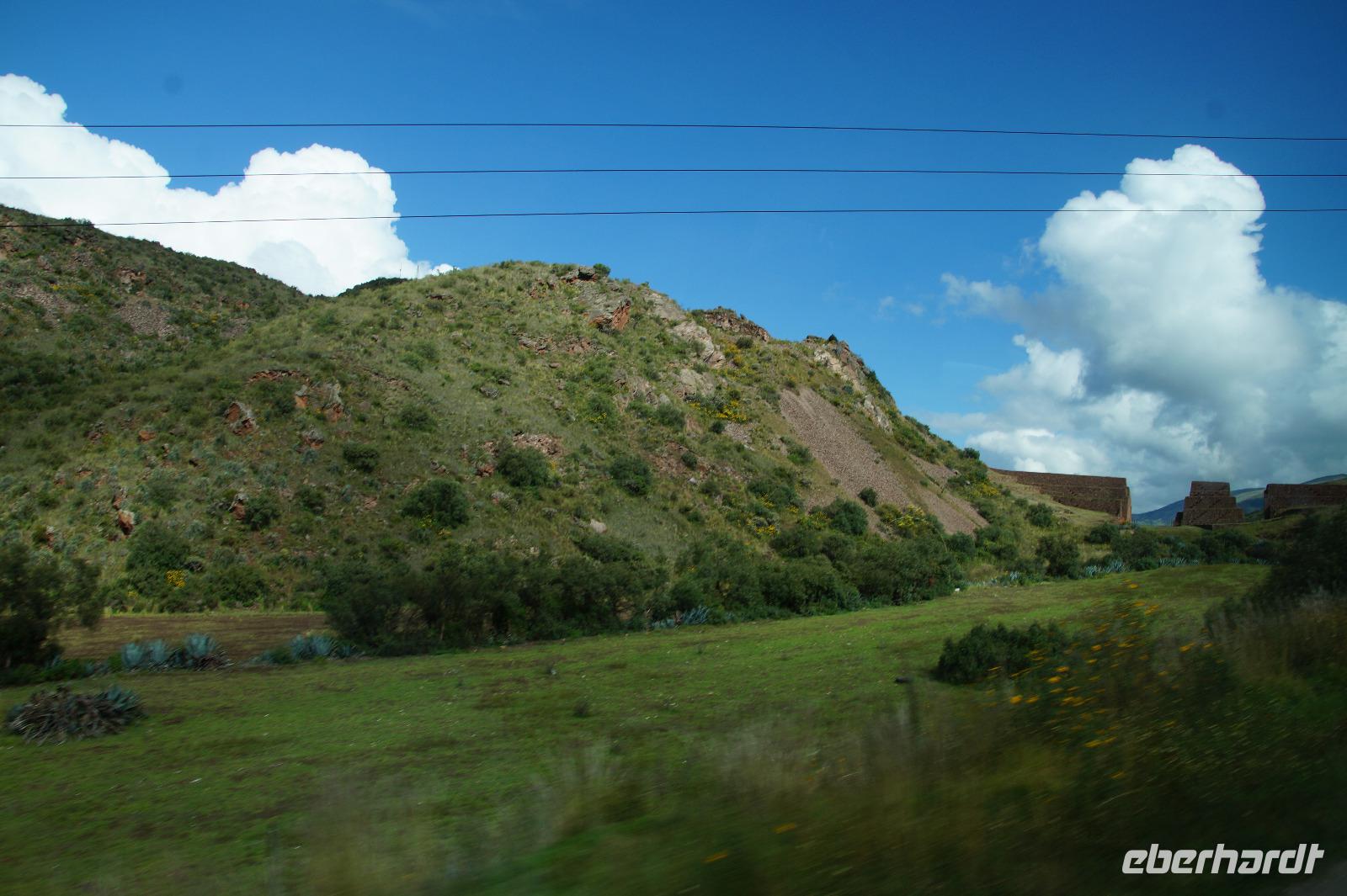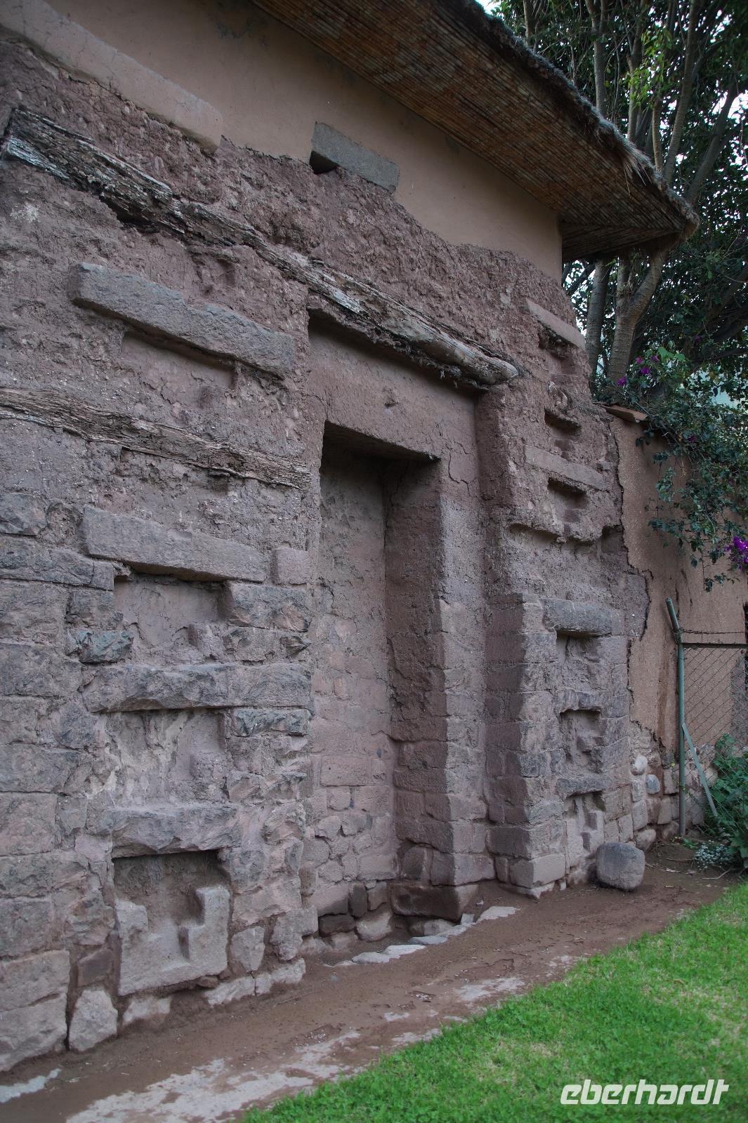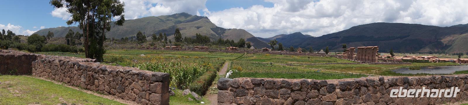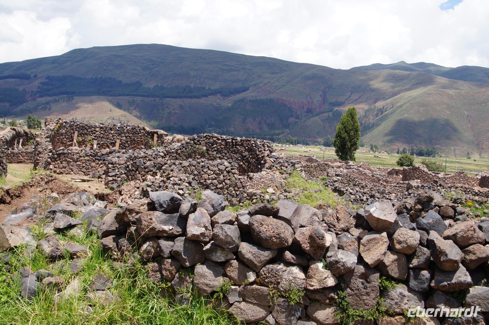 Adelspaläste, die an einer Ost-West-Achse symmetrisch aufgereit sind runde Lagerhäuser schließen sich an. In in Raqchi soll sich die Inkaelite getroffen haben, wenn es darum ging, aus den führenden Familien einen neuen Inka zu bestimmen.