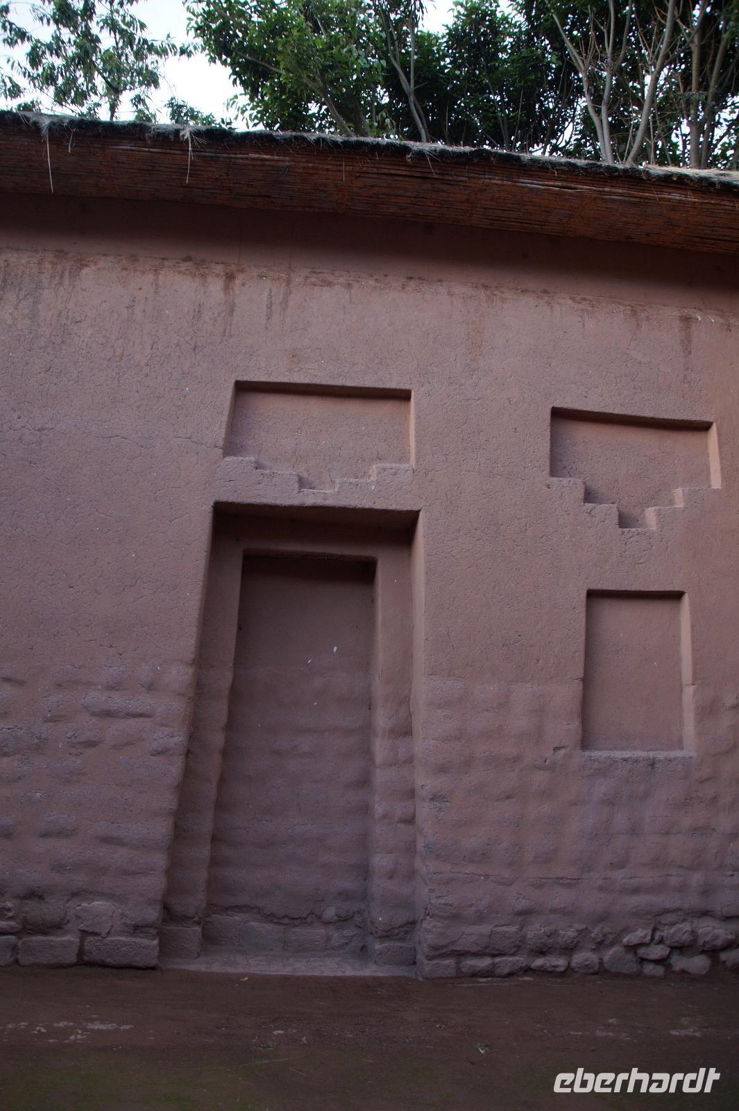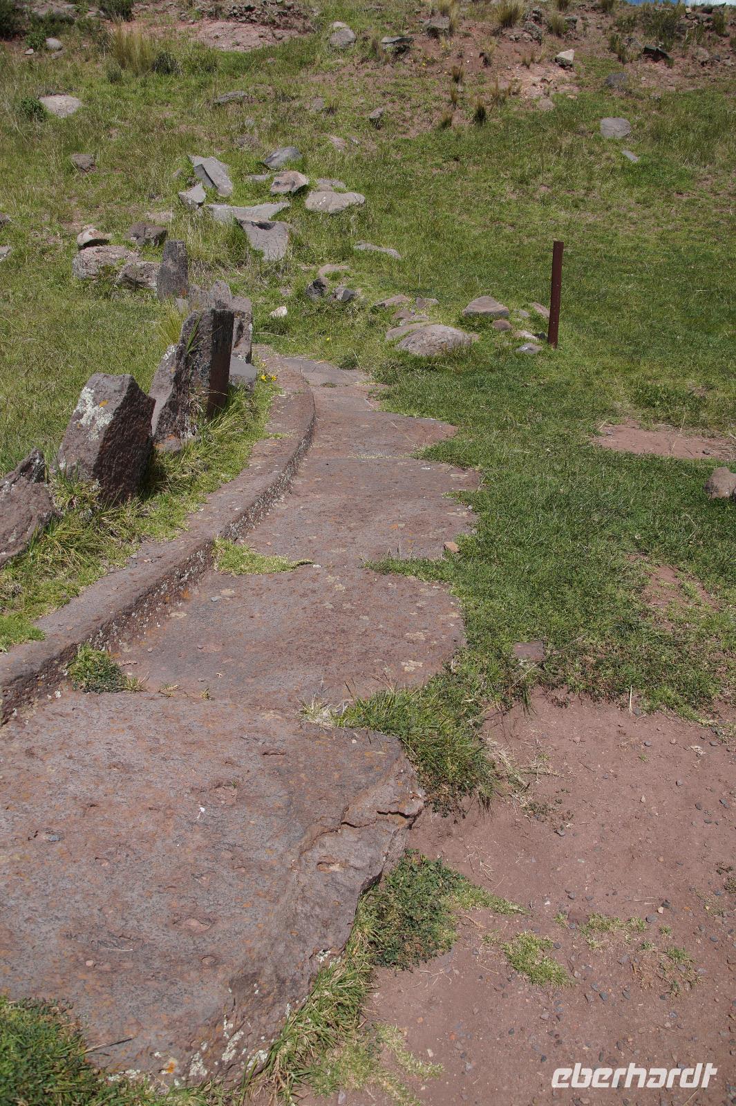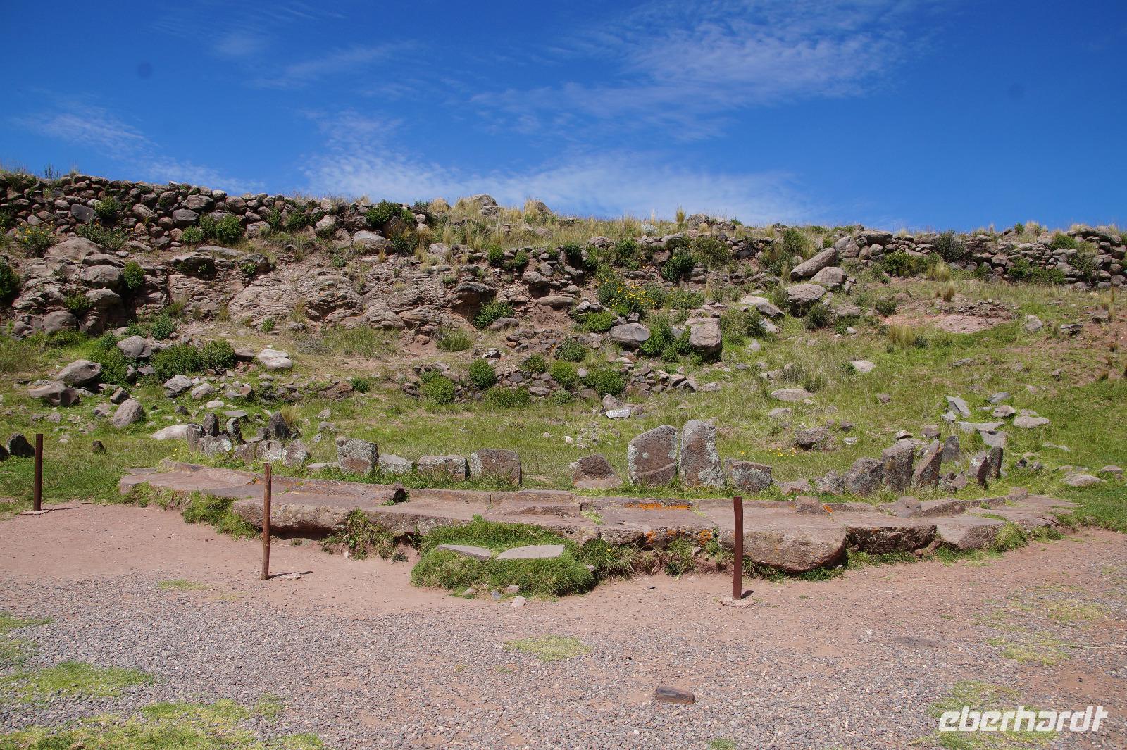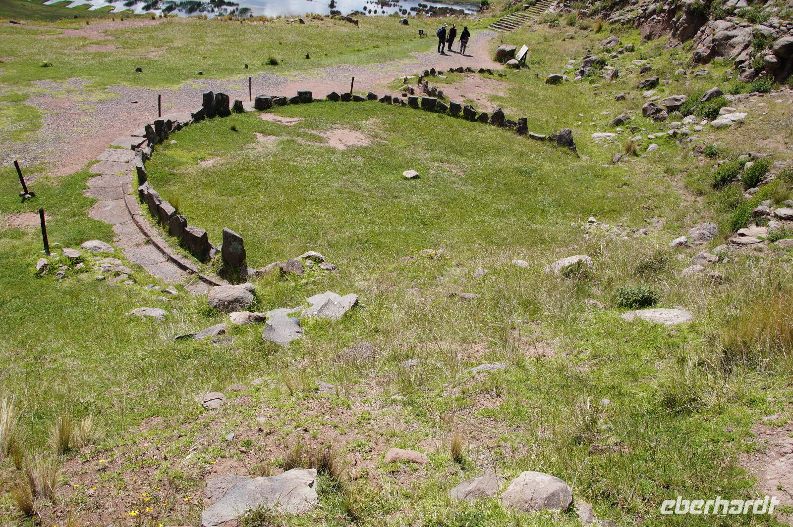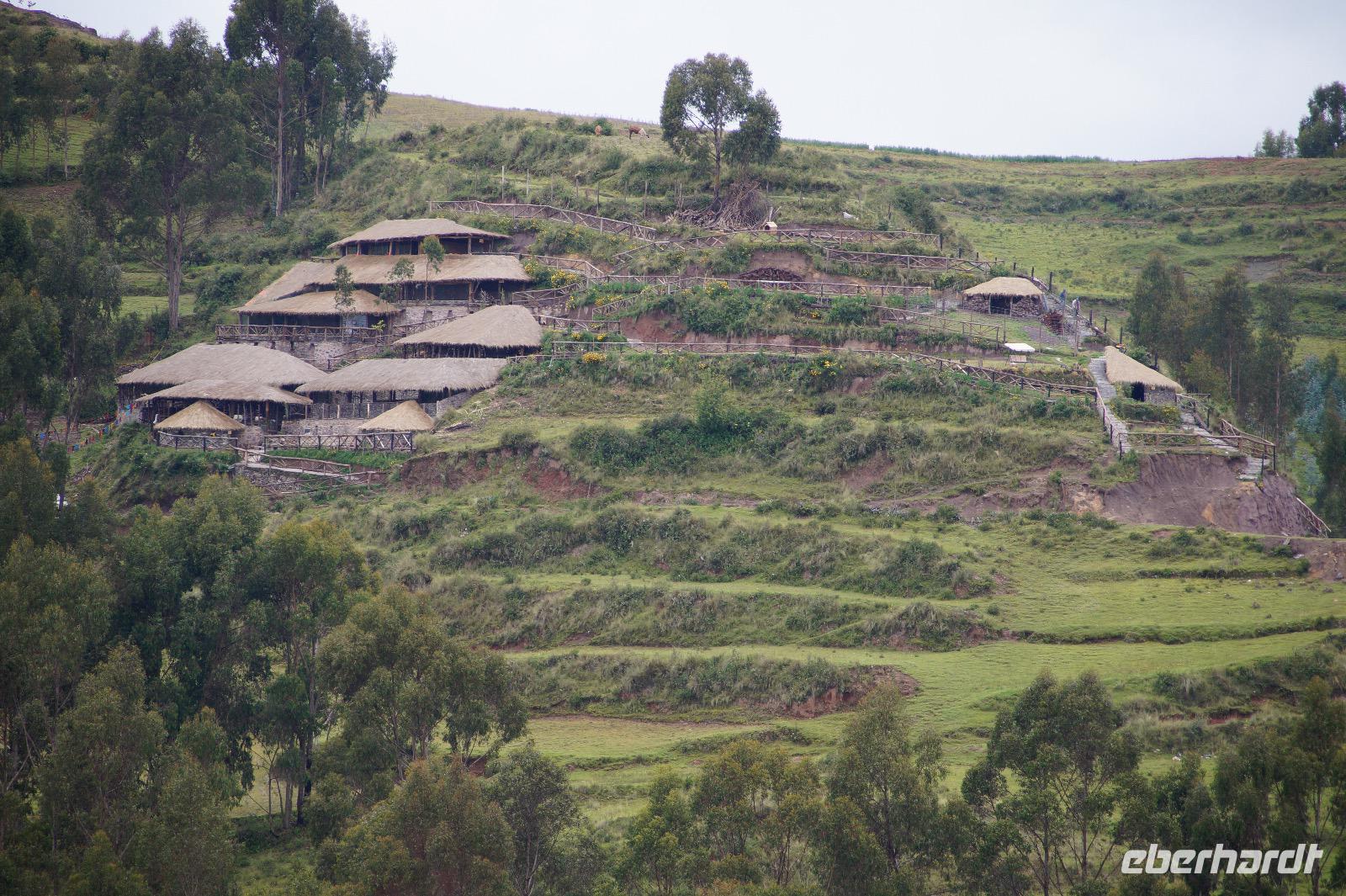 Adelspaläste, die an einer Ost-West-Achse symmetrisch aufgereit sind runde Lagerhäuser schließen sich an. In in Raqchi soll sich die Inkaelite getroffen haben, wenn es darum ging, aus den führenden Familien einen neuen Inka zu bestimmen.