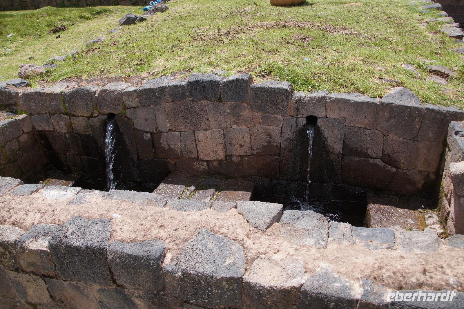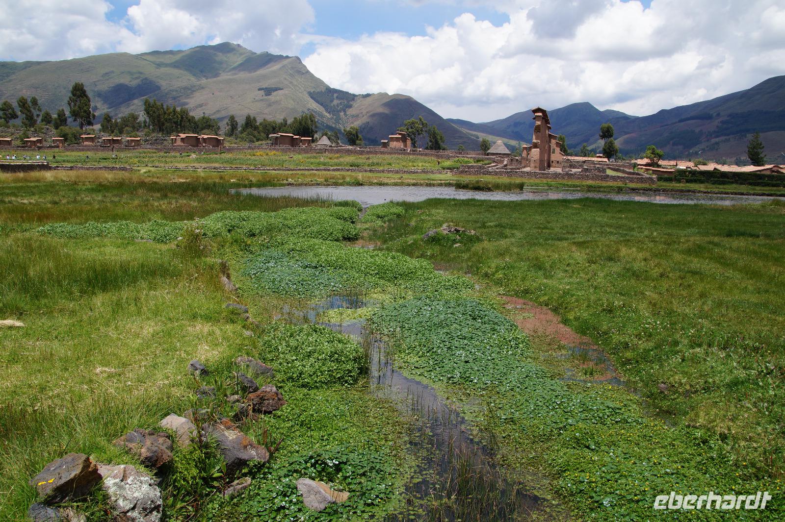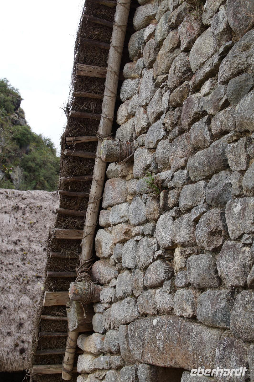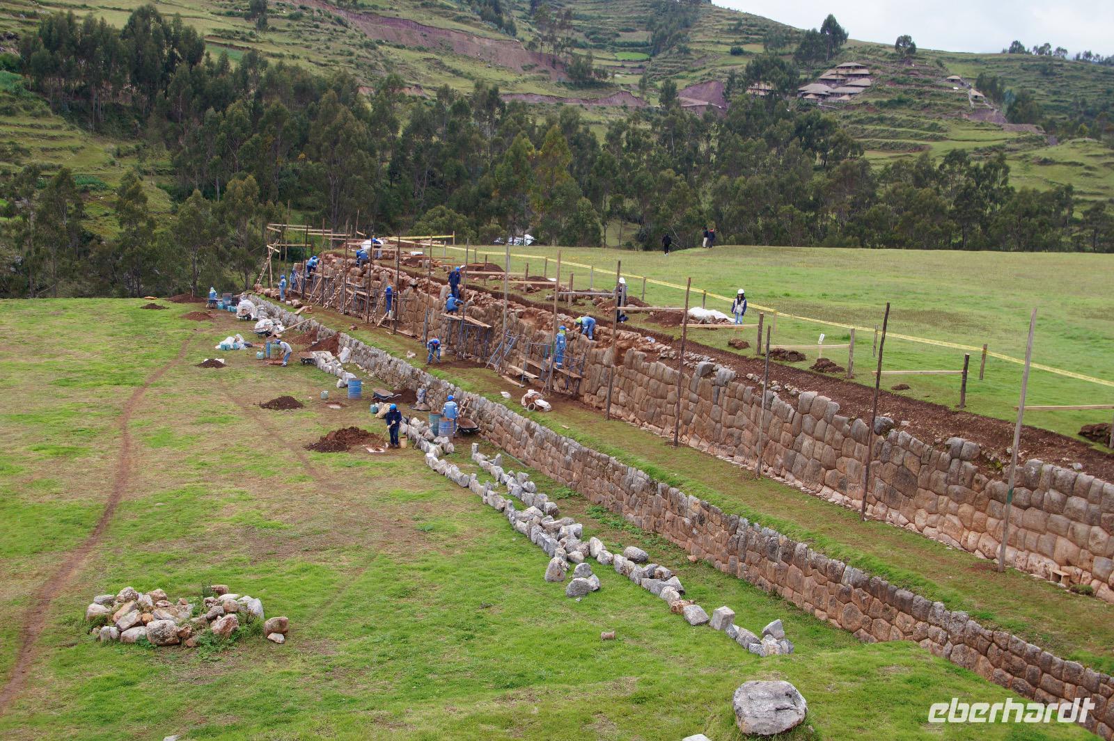 Adelspaläste, die an einer Ost-West-Achse symmetrisch aufgereit sind runde Lagerhäuser schließen sich an. In in Raqchi soll sich die Inkaelite getroffen haben, wenn es darum ging, aus den führenden Familien einen neuen Inka zu bestimmen.