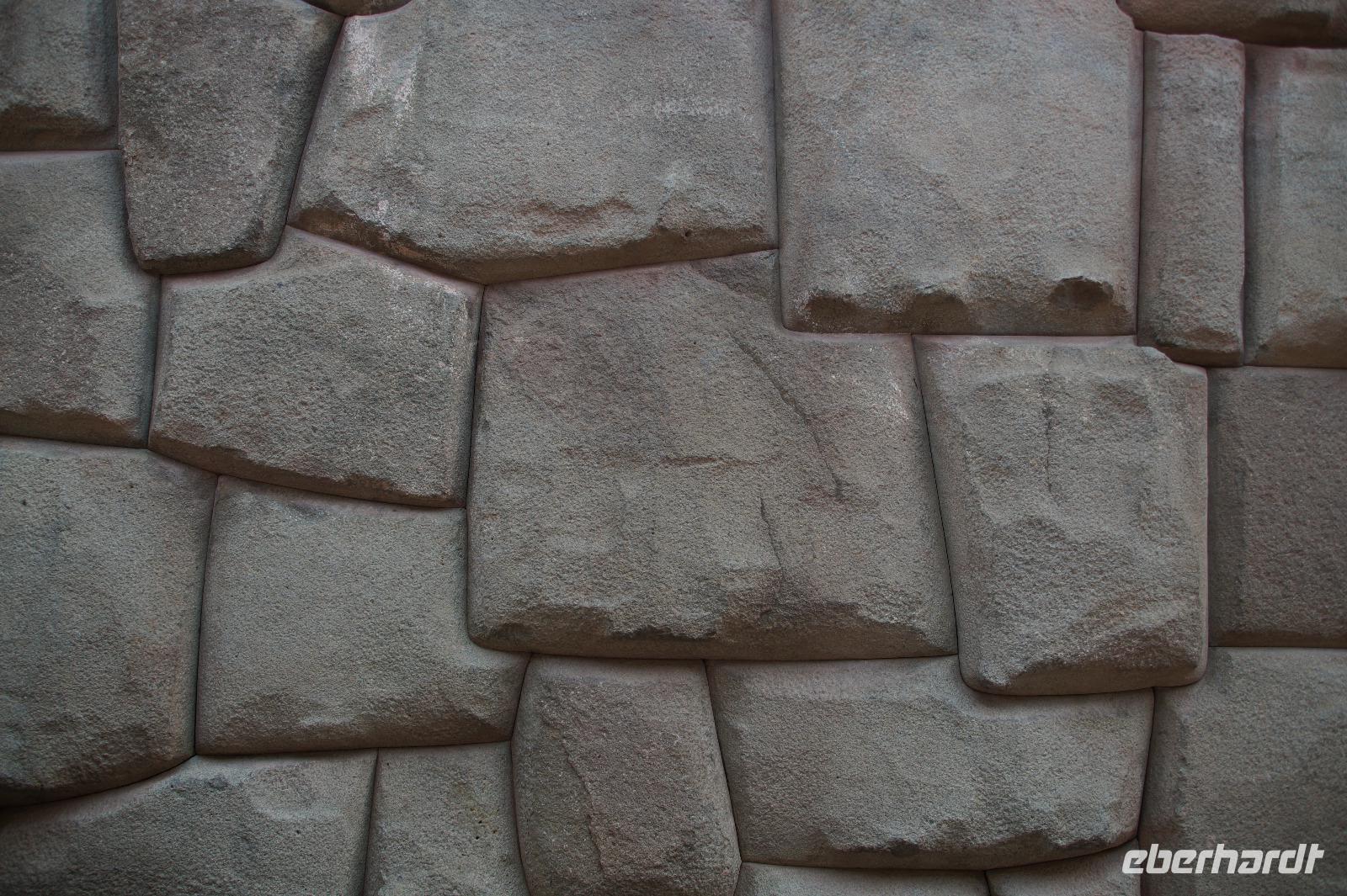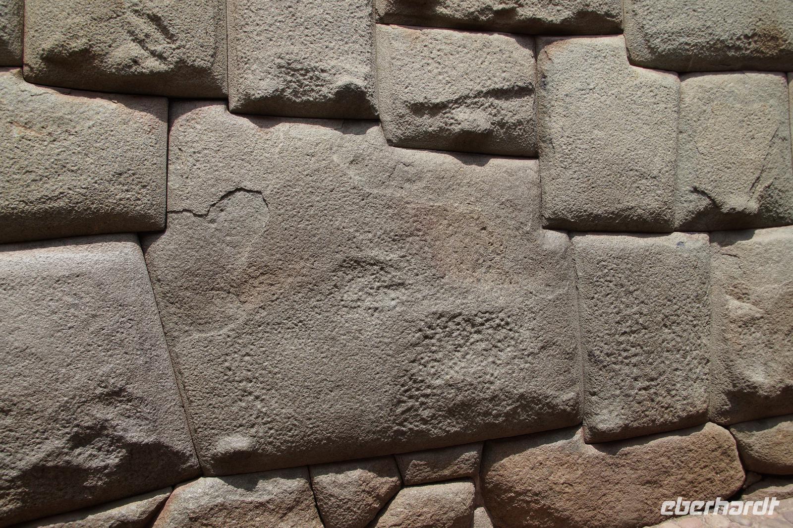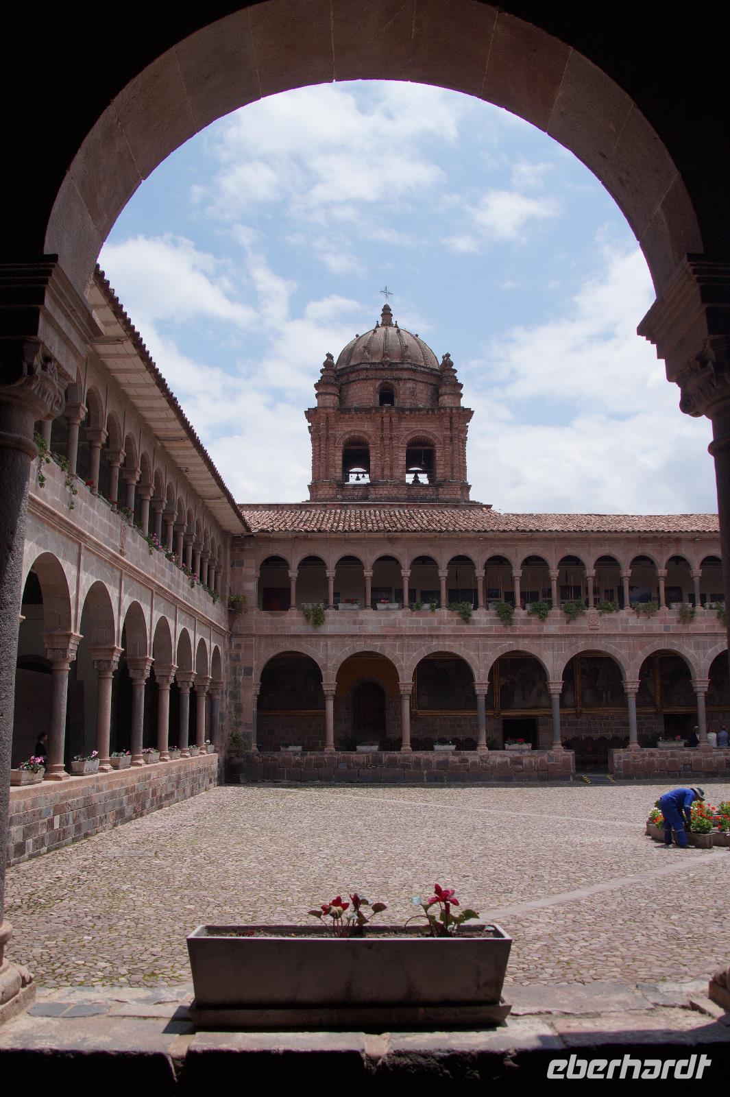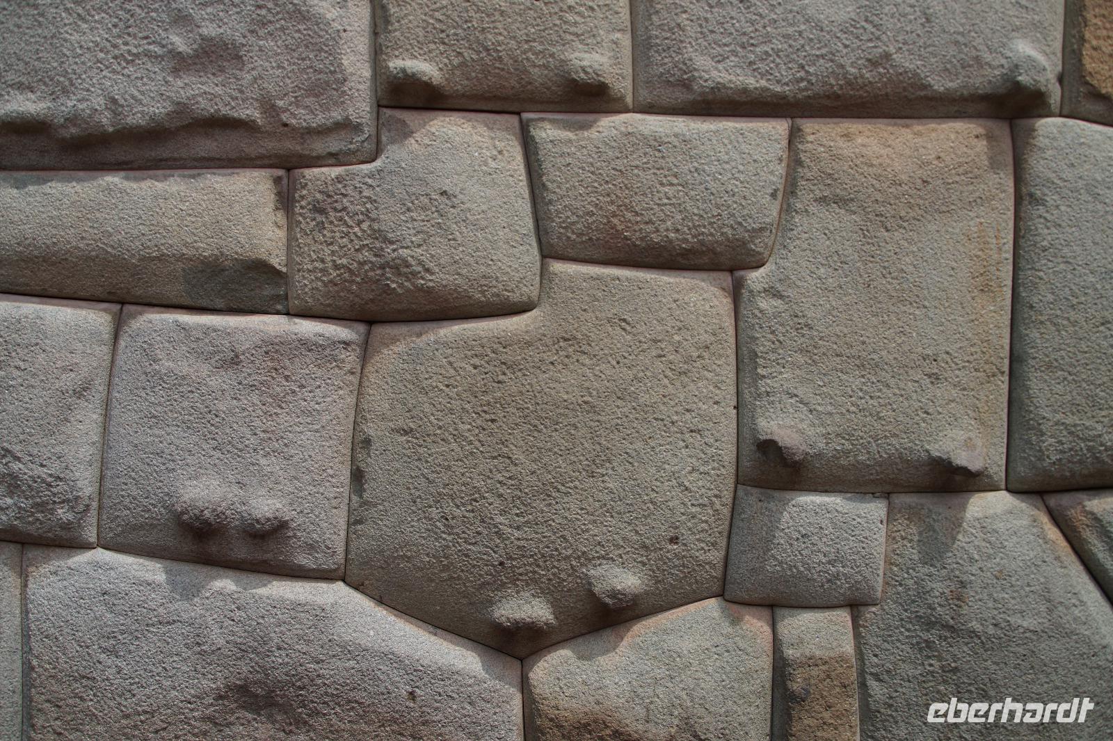 Wir kommen vorbei an dem Haus des Chronisten Garcilaso de la Vega el Inca, der Sohn eines Konquistadoren und einer Ñusta, einer Inka-Prinzessin. Unser nächstes Ziel ist der Gold- oder Sonnenhof. Coricancha oder Inticancha. Inticancha war der originale Name, aber heute ist der Gebäudekomplex, der vom Dominikanerkloster Cuzcos überbaut ist, unter (Convento de Santo Domingo de) Coricancha bekannter. Der Coricancha-Komplex soll vor der Ankunft der Spanier stark vergoldet gewesen sein, mit lebensgroßen Repliken von Tieren und Pflanzen in massivem Gold. Dieses Gold soll für die Befreiung Atahualpas aus der Hand der Spanier aufgewendet worden sein, die Spanier ließen es in Barren umschmelzen, so dass neben dem Gold vor allem auch kunstgeschichtliche Werte verloren gingen. Aber der Coricancha-Komplex, der aus verschiedenen Tempeln besteht, einem Sonnentempel, einem für den Regenbogen, für die Milchstraße (wobei die Inka in den dunklen Flecken der Milchstraße Tier wiedererkennen wollten), ein Wasserheiligtum und den Mond, ist immer noch, trotz seiner Überbauung durch den Dominikanerkonvent, beeindruckend, vor allem durch die Perfektion seiner Steine. Ein Stein etwa ist Teil eines Türrahmens und dreier Wände und perfekt eingepasst. Dabei ist alles unscheinbar und nichts schreit nach der Aufmerksamkeit der Besucher, man muss sich den Tempel regelrecht erschauen, die Perfektion entdecken. Es sind die kleinen Details, welche die Inkaarchitektur so faszinierend, welche auch den Coricancha-Komplex innerhalb der Inkaarchitektur so herausragend machen.