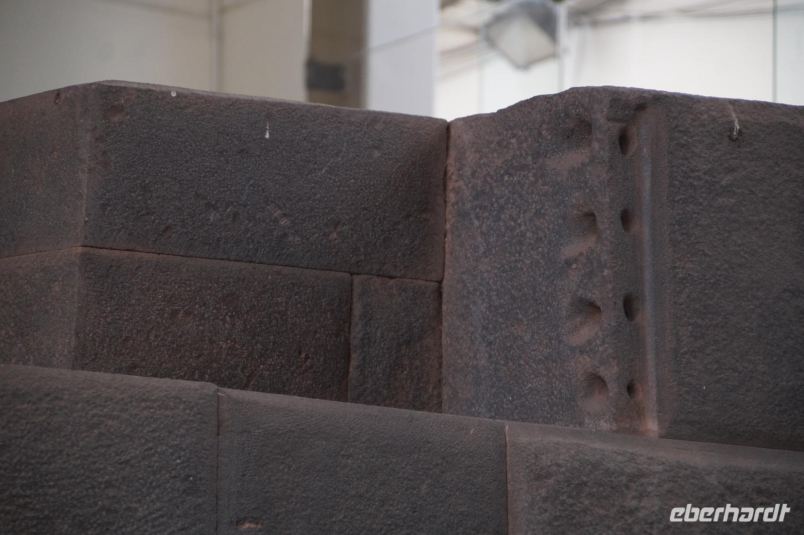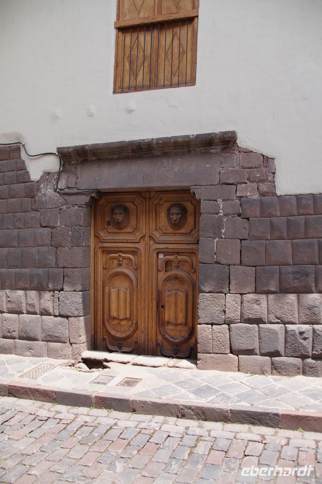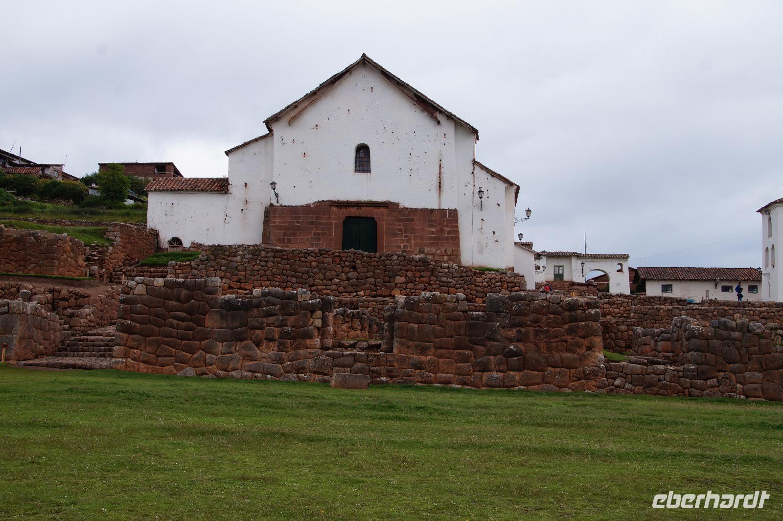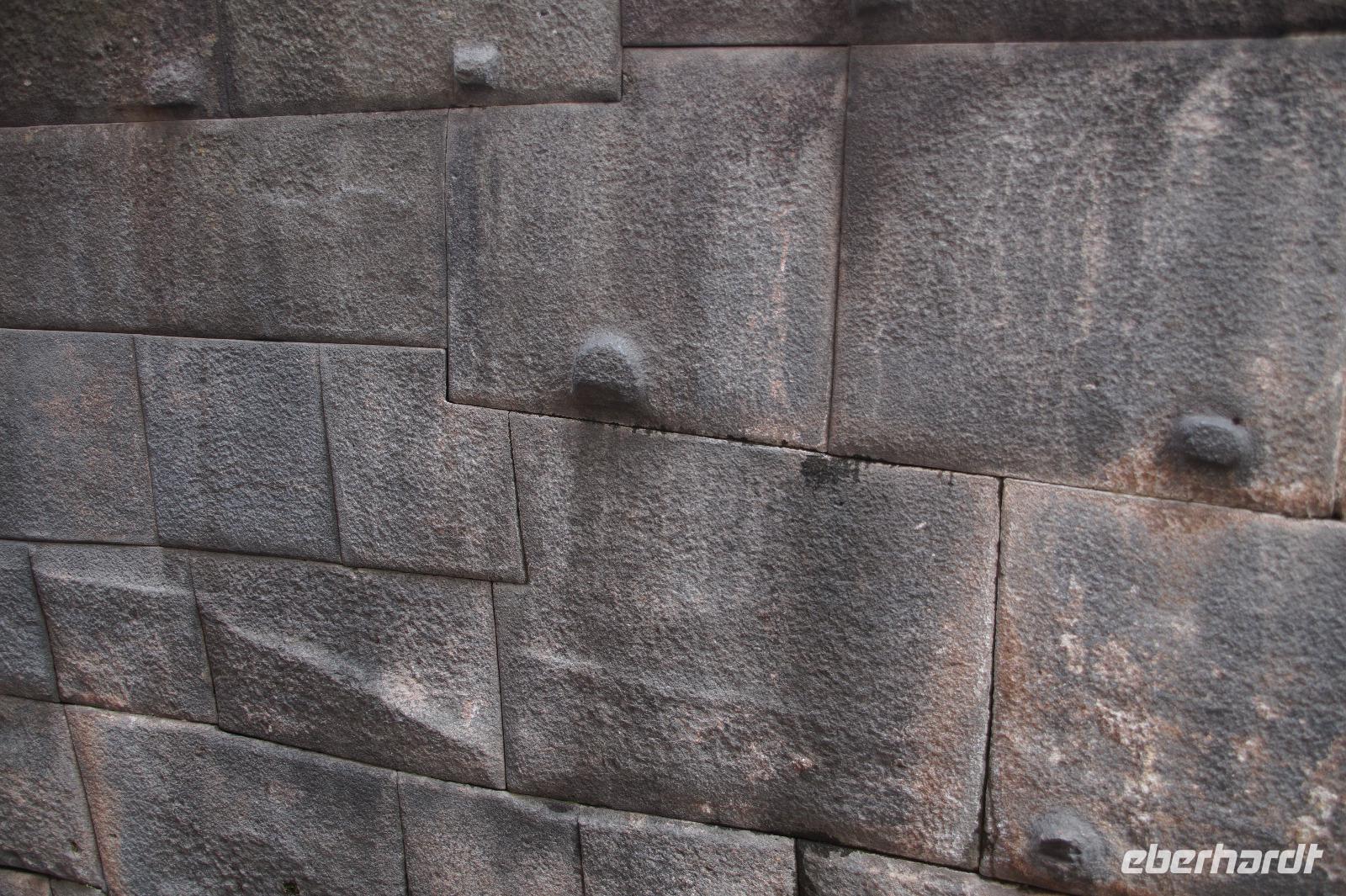 Wir kommen vorbei an dem Haus des Chronisten Garcilaso de la Vega el Inca, der Sohn eines Konquistadoren und einer Ñusta, einer Inka-Prinzessin. Unser nächstes Ziel ist der Gold- oder Sonnenhof. Coricancha oder Inticancha. Inticancha war der originale Name, aber heute ist der Gebäudekomplex, der vom Dominikanerkloster Cuzcos überbaut ist, unter (Convento de Santo Domingo de) Coricancha bekannter. Der Coricancha-Komplex soll vor der Ankunft der Spanier stark vergoldet gewesen sein, mit lebensgroßen Repliken von Tieren und Pflanzen in massivem Gold. Dieses Gold soll für die Befreiung Atahualpas aus der Hand der Spanier aufgewendet worden sein, die Spanier ließen es in Barren umschmelzen, so dass neben dem Gold vor allem auch kunstgeschichtliche Werte verloren gingen. Aber der Coricancha-Komplex, der aus verschiedenen Tempeln besteht, einem Sonnentempel, einem für den Regenbogen, für die Milchstraße (wobei die Inka in den dunklen Flecken der Milchstraße Tier wiedererkennen wollten), ein Wasserheiligtum und den Mond, ist immer noch, trotz seiner Überbauung durch den Dominikanerkonvent, beeindruckend, vor allem durch die Perfektion seiner Steine. Ein Stein etwa ist Teil eines Türrahmens und dreier Wände und perfekt eingepasst. Dabei ist alles unscheinbar und nichts schreit nach der Aufmerksamkeit der Besucher, man muss sich den Tempel regelrecht erschauen, die Perfektion entdecken. Es sind die kleinen Details, welche die Inkaarchitektur so faszinierend, welche auch den Coricancha-Komplex innerhalb der Inkaarchitektur so herausragend machen.
