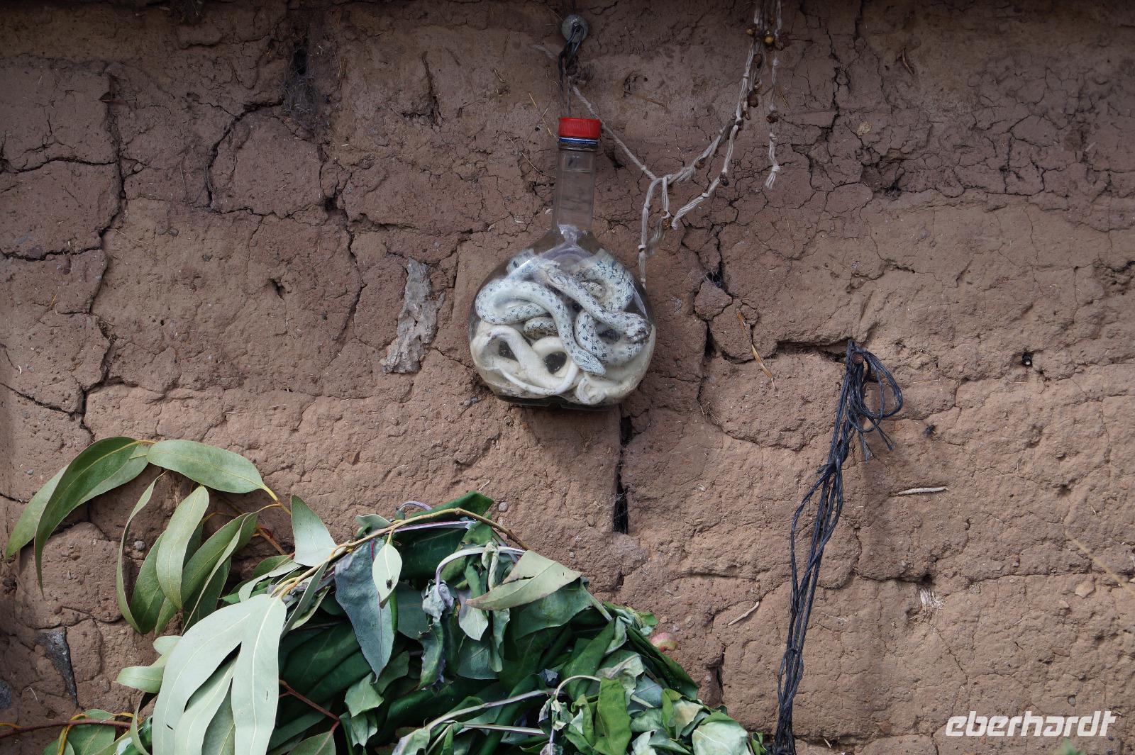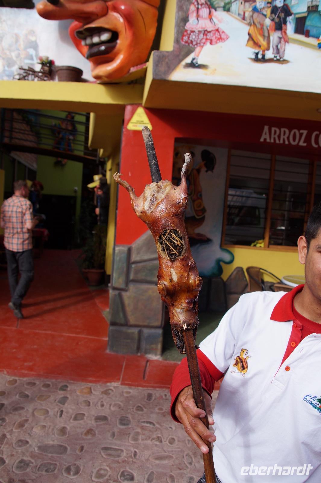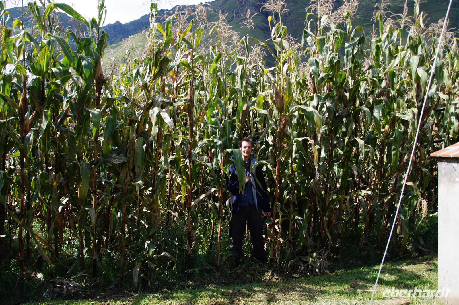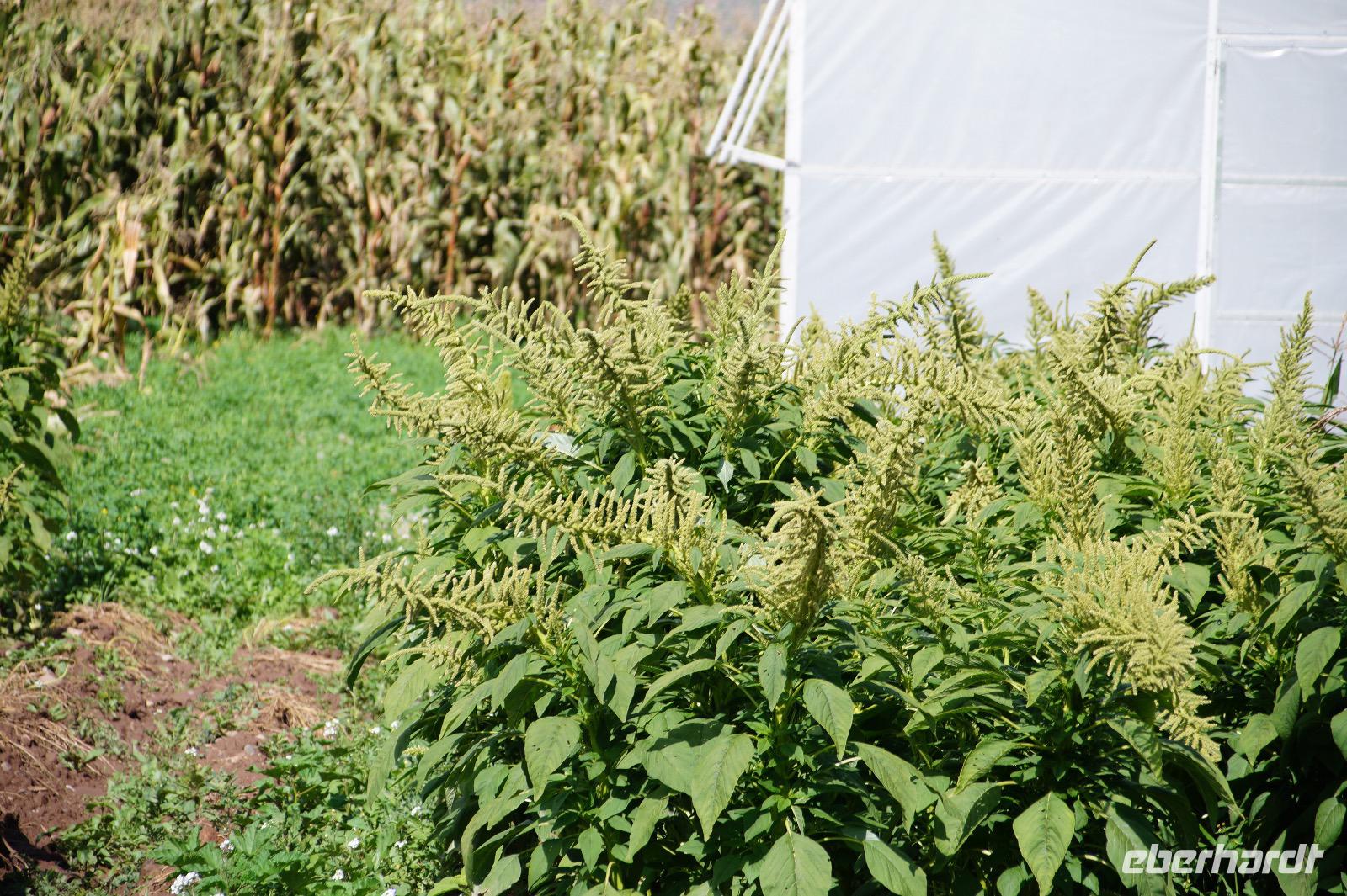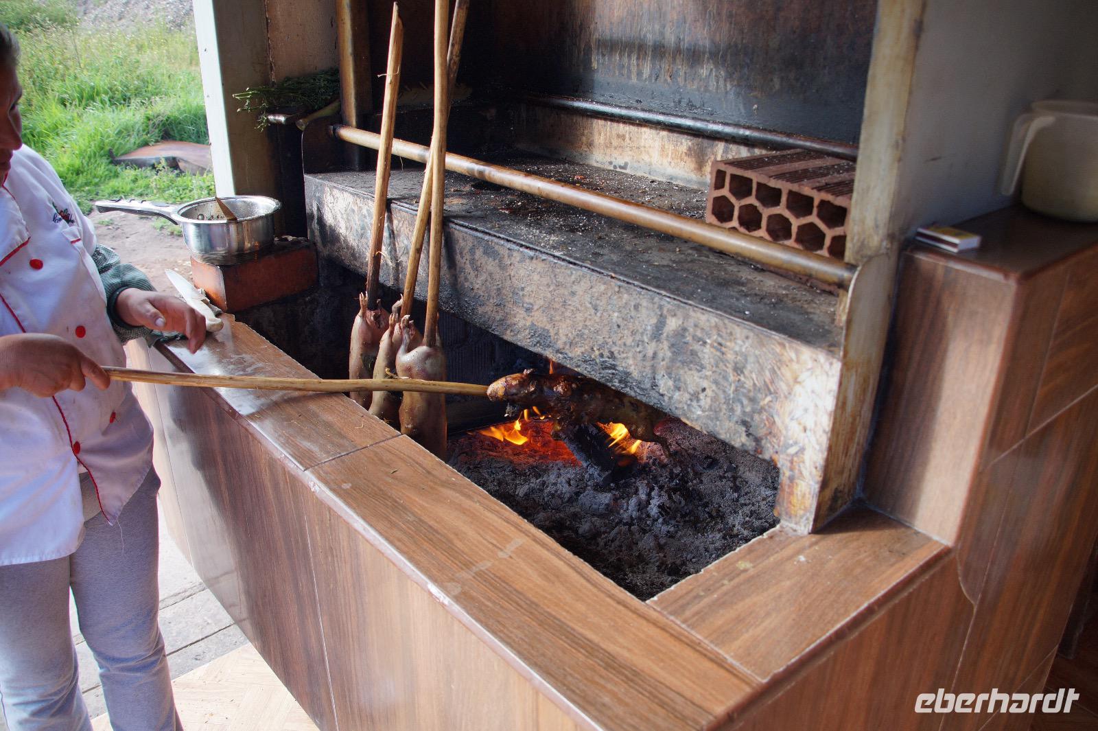 Nach dem Essen erfahren wir dann noch etwas über Meerschweinchenhaltung, Maisanbau und -düngung und dergleichen mehr. So soll z.B. ein Gemisch von Quinoaasche und zerriebenen Kolumbuspfeffer (Traube und Blätter) ein gutes Düngemittel für Mais sein und würde gemeinsam mit dem Samenkorn in den Erdboden eingebracht.In einem kleinen haciendaeigenen Museum sehen wir dann noch Votivgaben, wie hölzerne oder steinerne Maiskolben, welche man rituell niedergelegte, um von Pachamama z.B. Ernteglück zu erbitten.