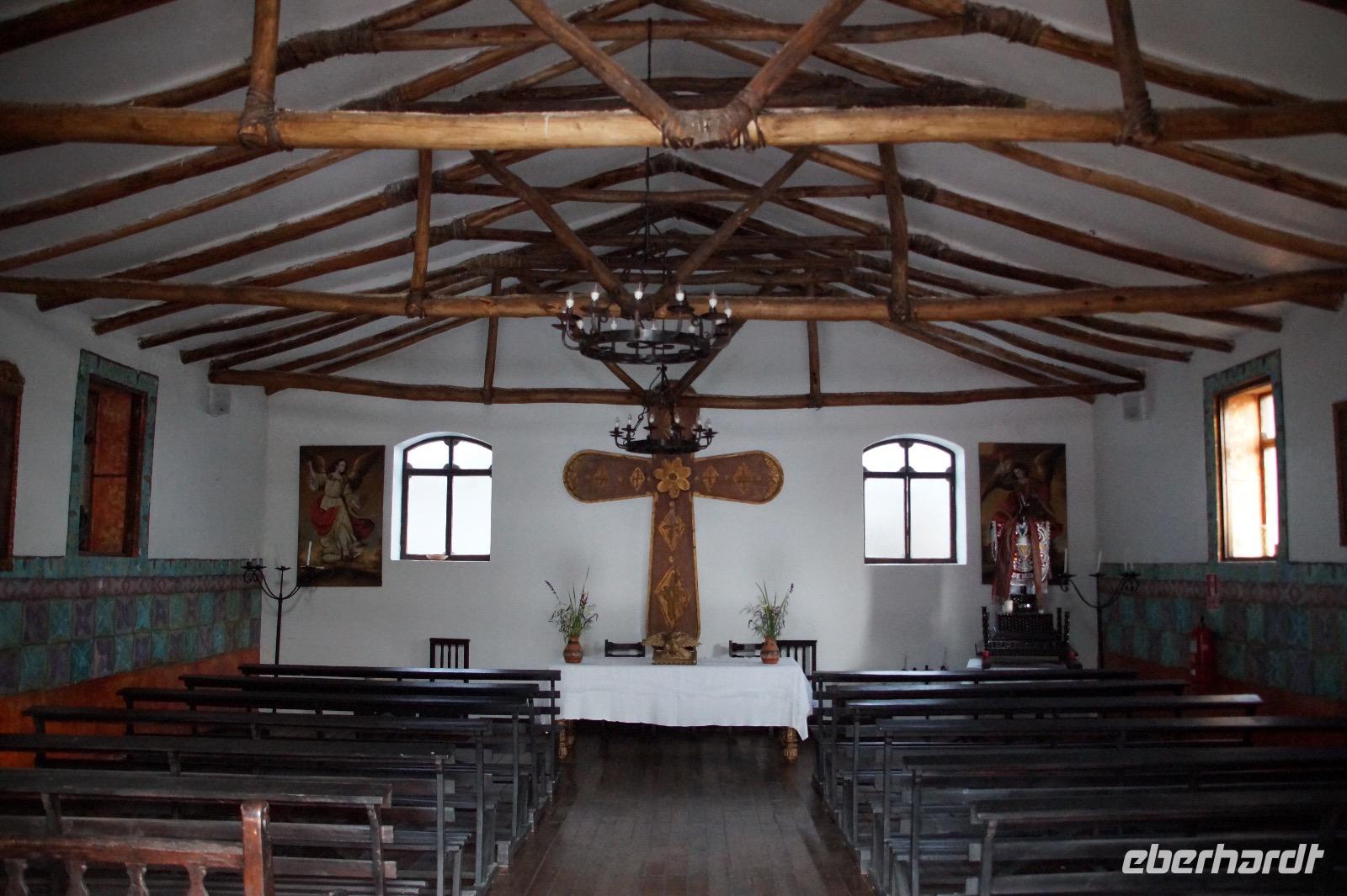 Die Kirche ist auf einem ehemaligen Inkatempel errichtet, besonders interessant sind am Eingang die Gemälde, welche den dornigen Weg in den Himmel - eine Renaissanceburg - und den rosenbestreuten Weg in die Hölle zeigen. Auffällig ist auch die Dachkonstruktion sowie die Altäre, die im Andenbarock ausgeführt sind: Barock mit indigenen Elementen. Auch hier sehen wir wieder die Spiegel, mit welcher die Missionare die indigene Bevölkerung in die Kirche locken wollten. Heute wird Andahuaylillas von den Jesuiten betrieben, die den Tourismus gezielt nutzen, um Einnahmen für soziale Arbeit zu generieren, etwa für die Arbeit mit minderjährigen Müttern.